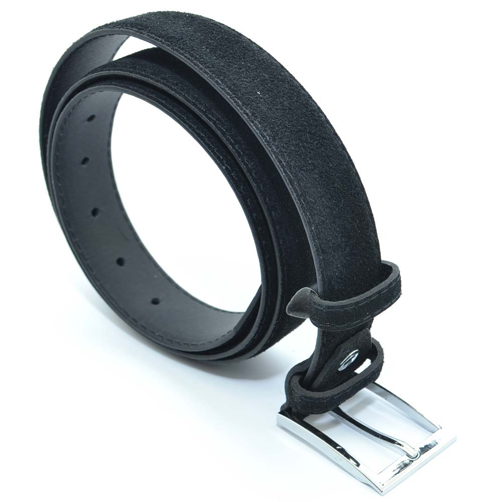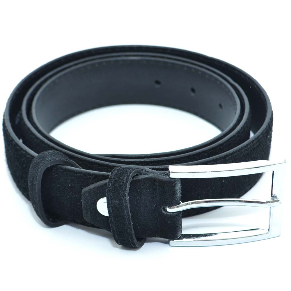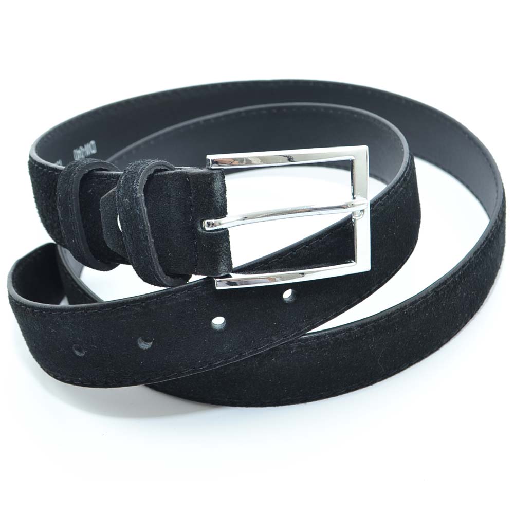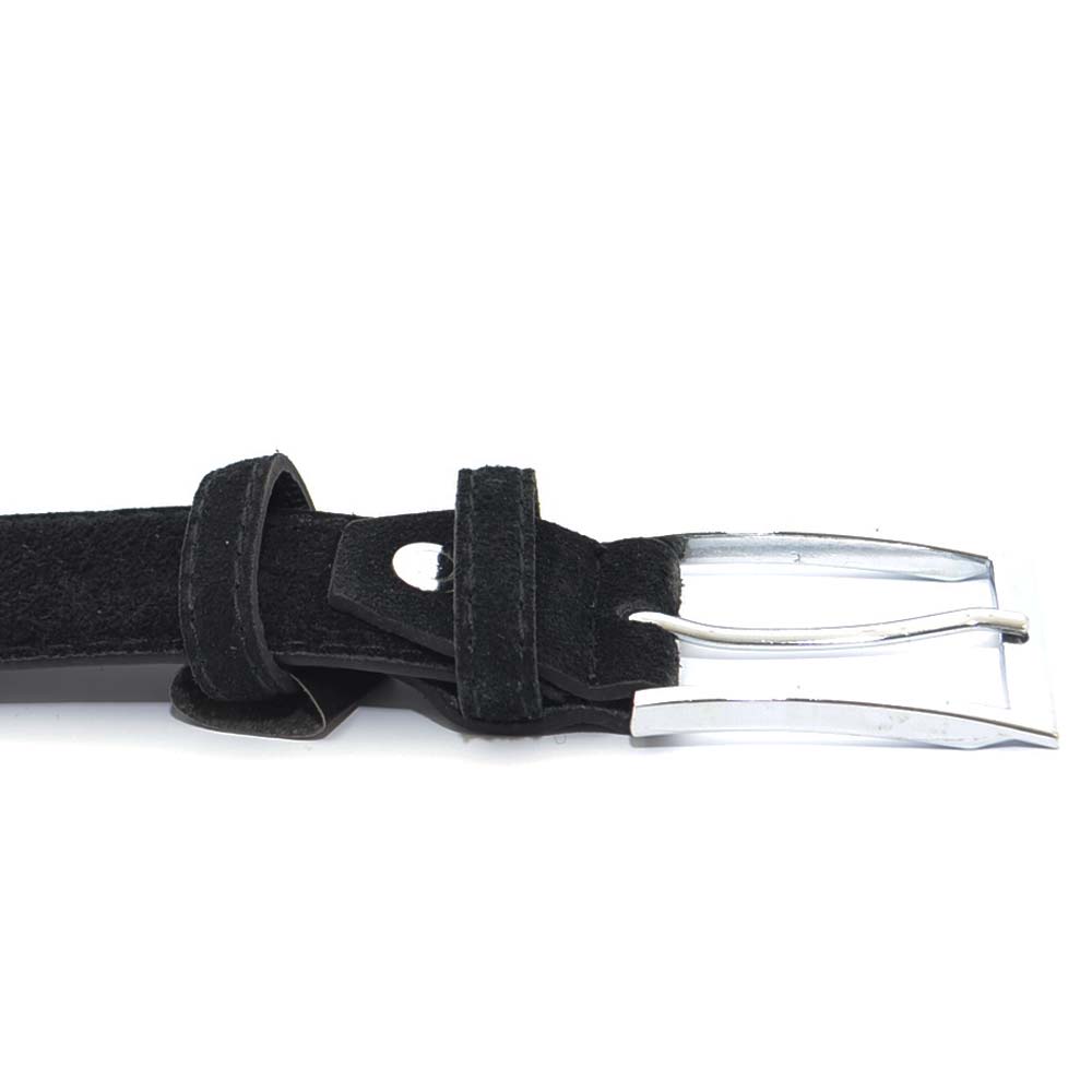 Cintura uomo nera nubuk in pelle scamosciata regolabile fibbia in acciaio made in italy business man