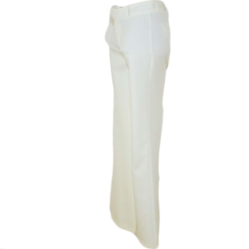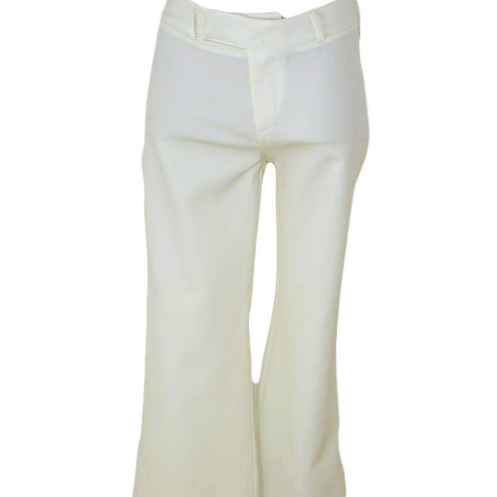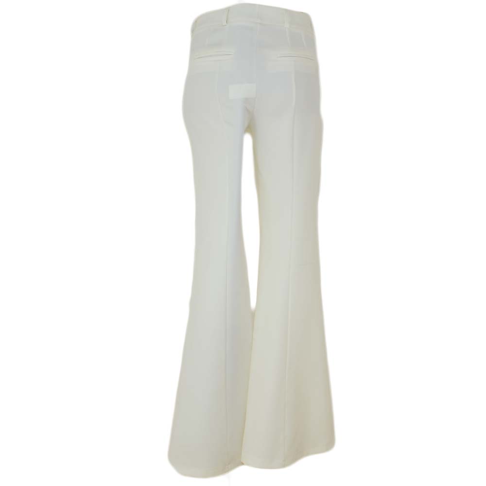 Pantaloni flare donna a zampa bianchi vita media tasca americana di cotone sexy slim aderenti tinta unita