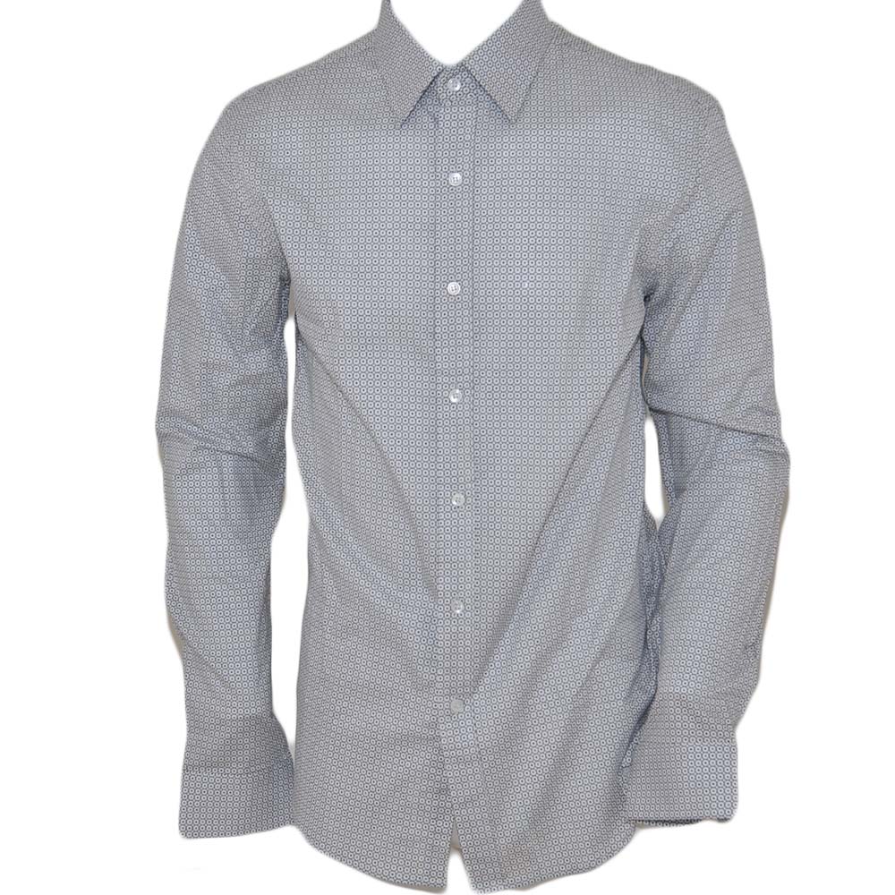 Camicia uomo cotone blu collo rigido manica lunga motivo astratto made in italy slim linea  basic.