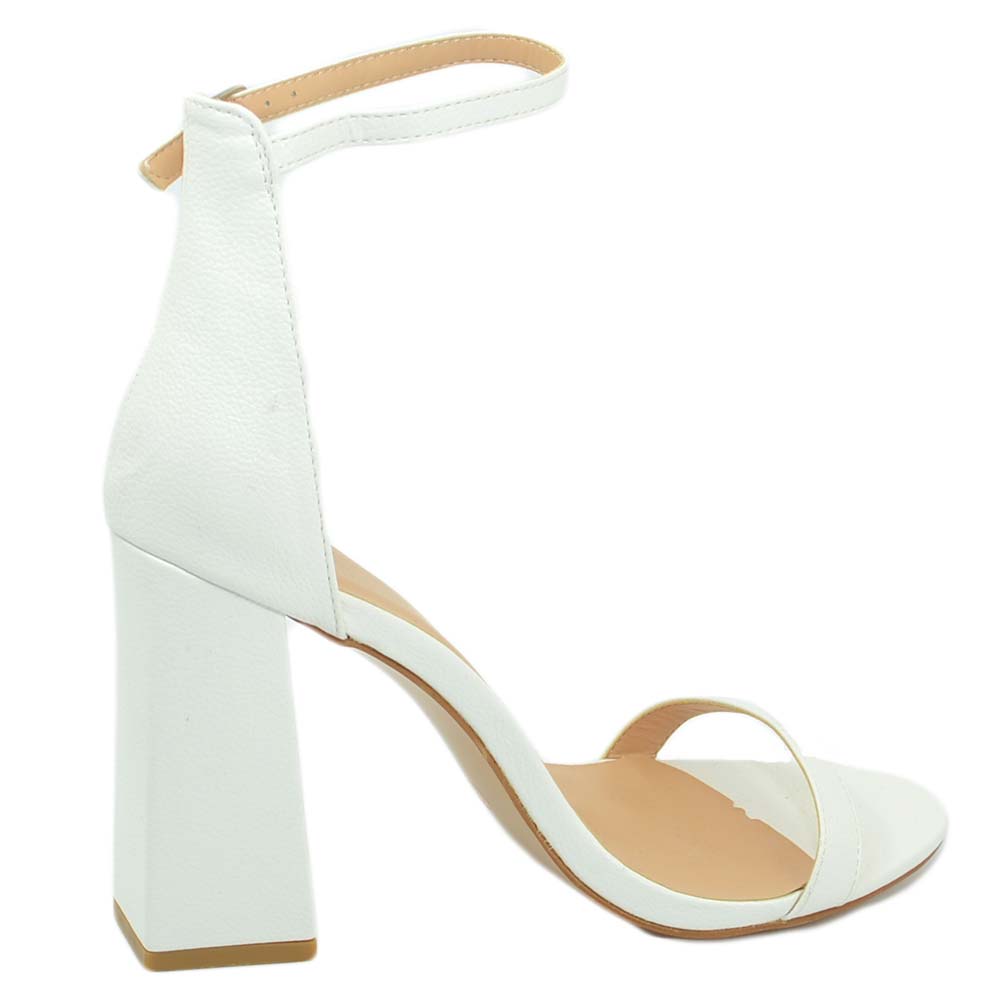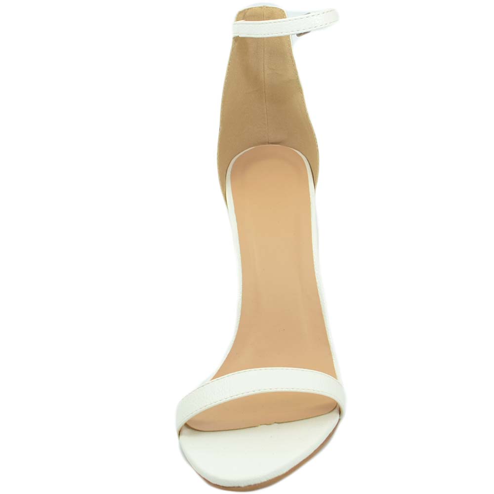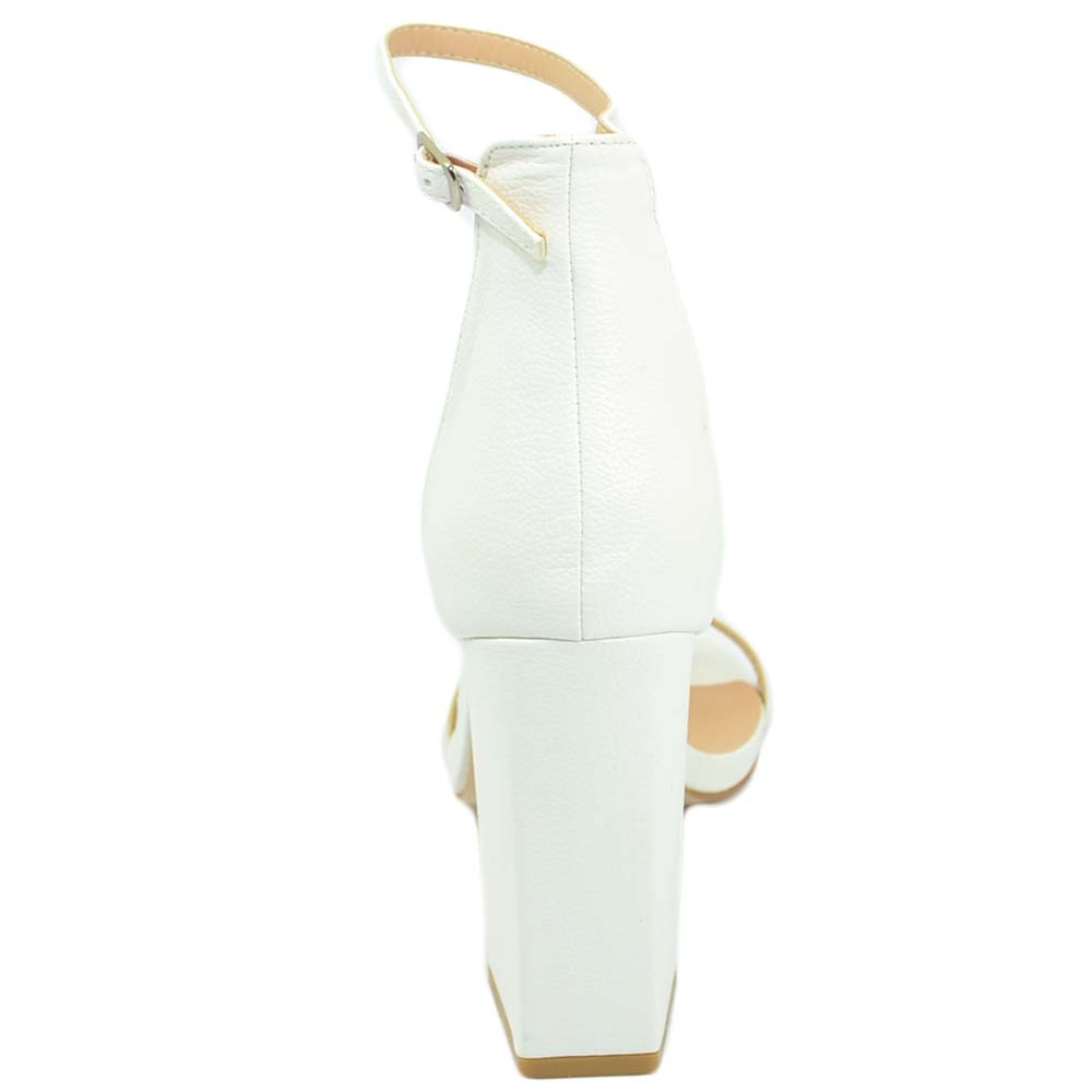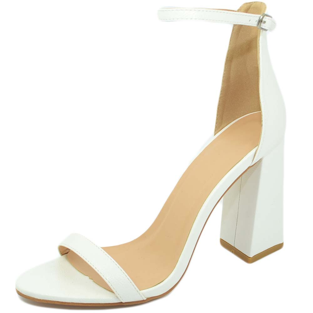 Sandalo donna bianco in ecopelle tacco largo asimmetrico alto 10 cm cinturino alla caviglia linea basic moda tendenza