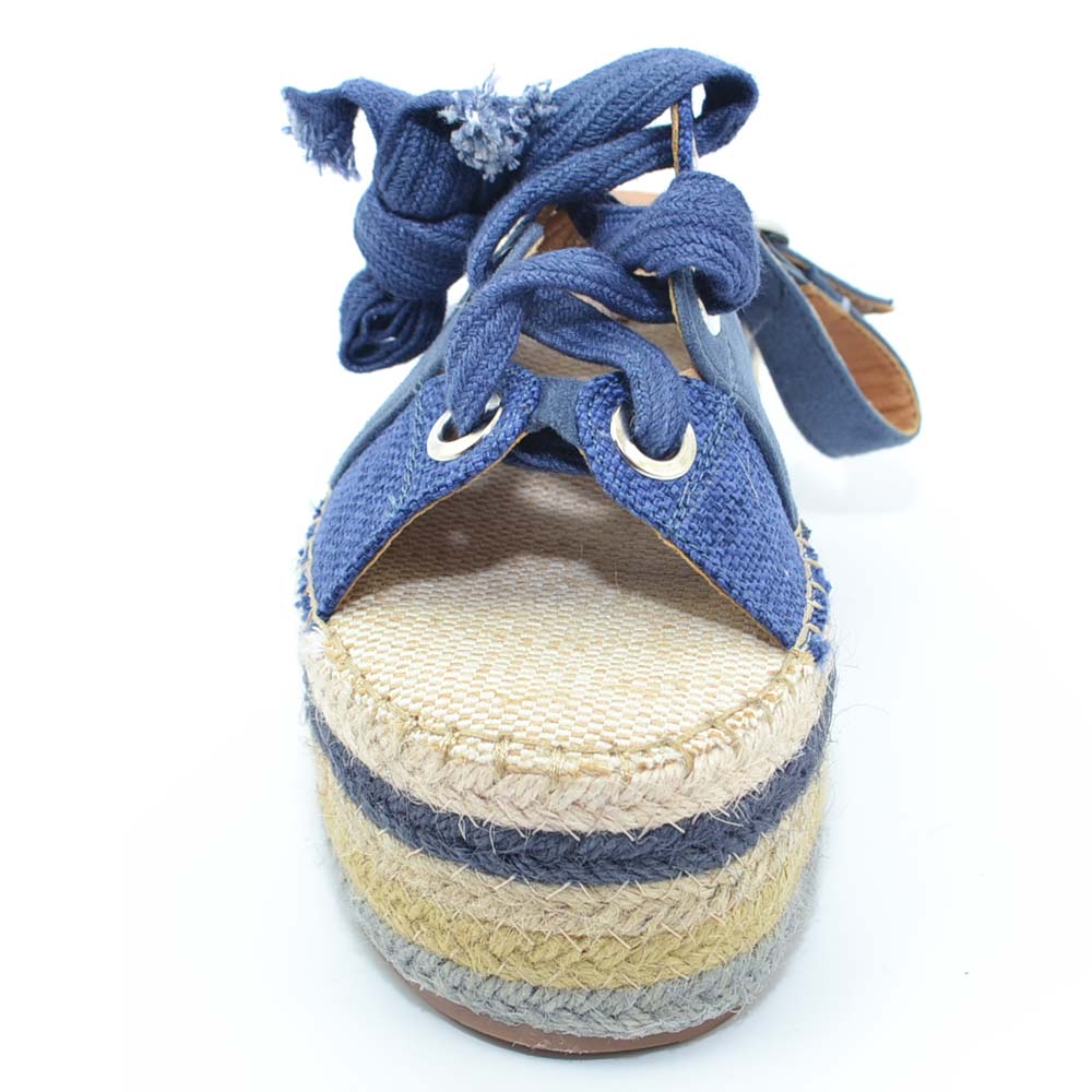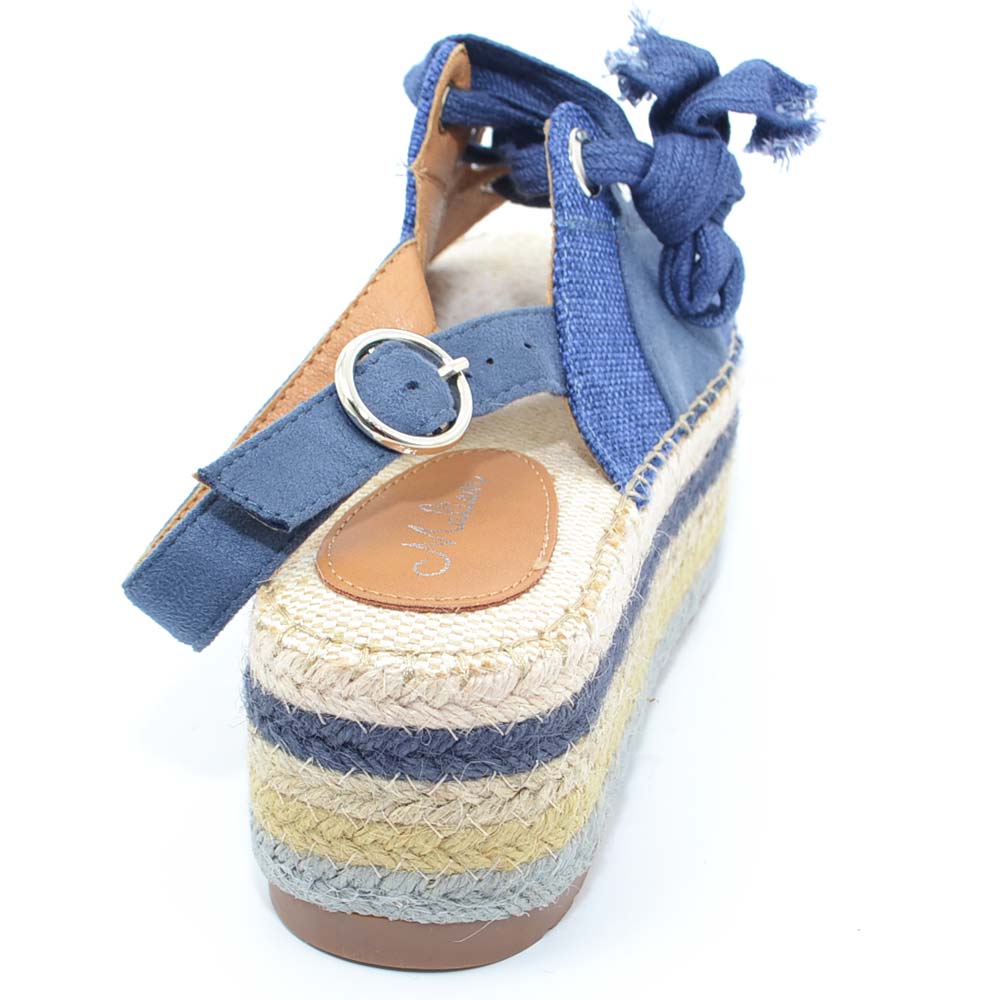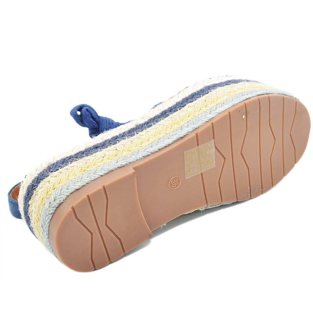 Zeppa donna blu comoda fondo in spago tricolore cinturino alla caviglia chiusura regolabile tallone scoperto,open toe