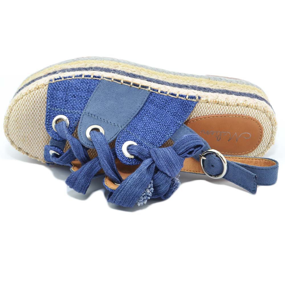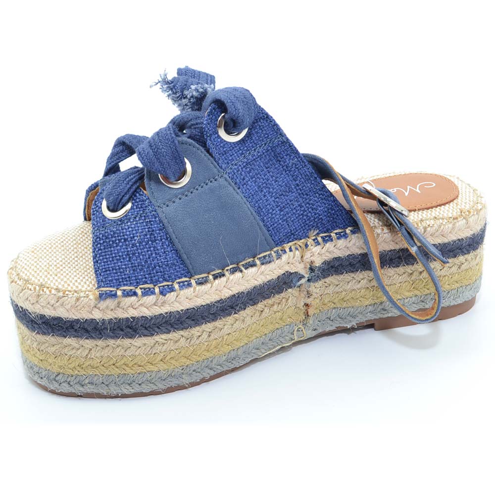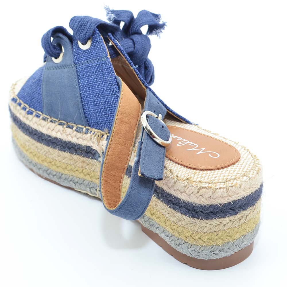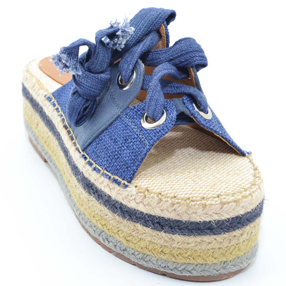 Zeppa donna blu comoda fondo in spago tricolore cinturino alla caviglia chiusura regolabile tallone scoperto,open toe
