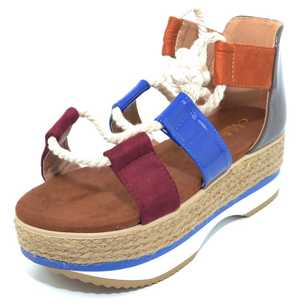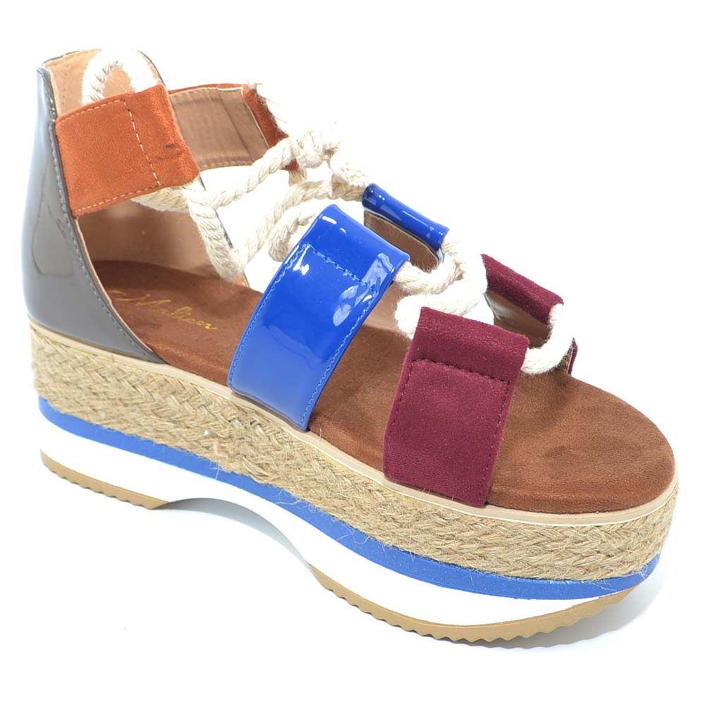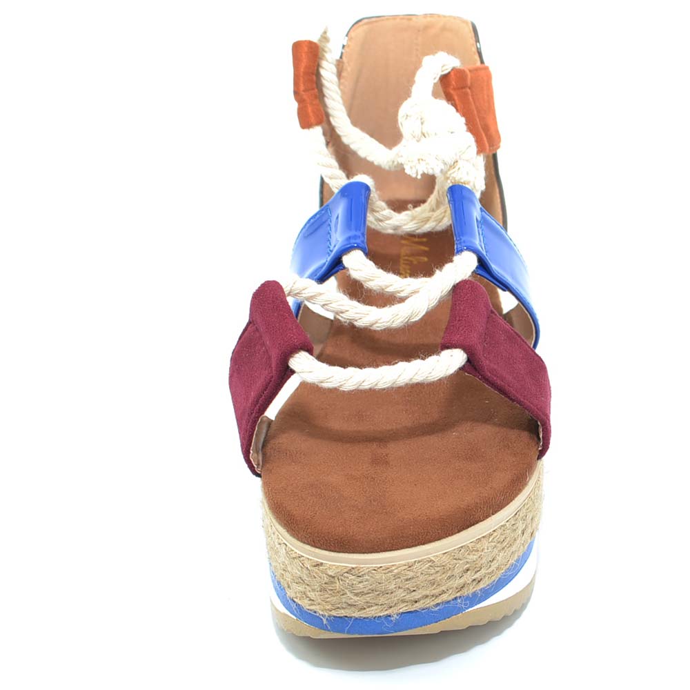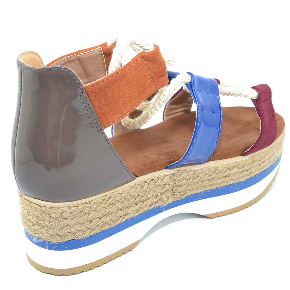 Sandalo basso colorato donna espadrillas con para in gomma alta camouflage con cordino incrociato moda Capri