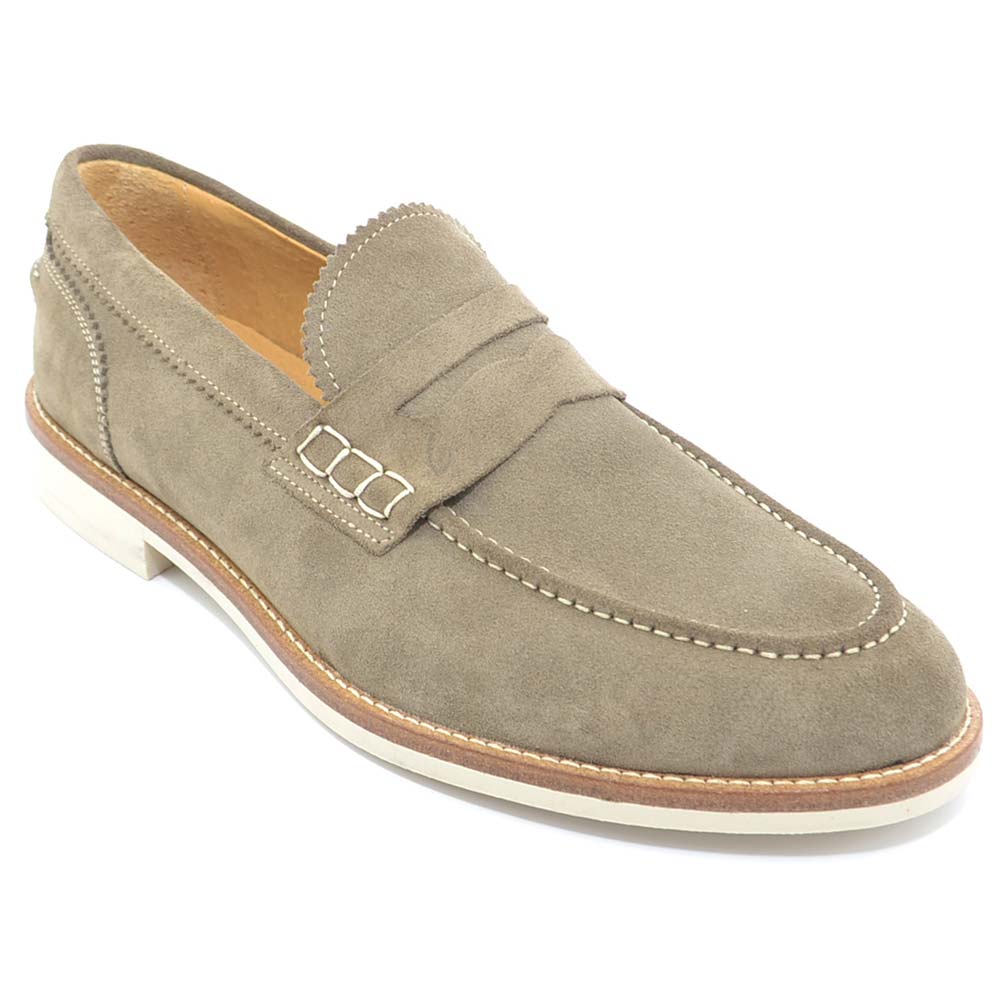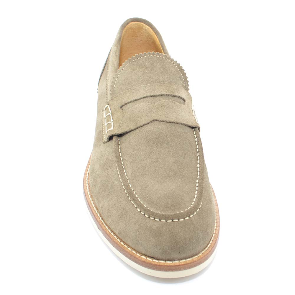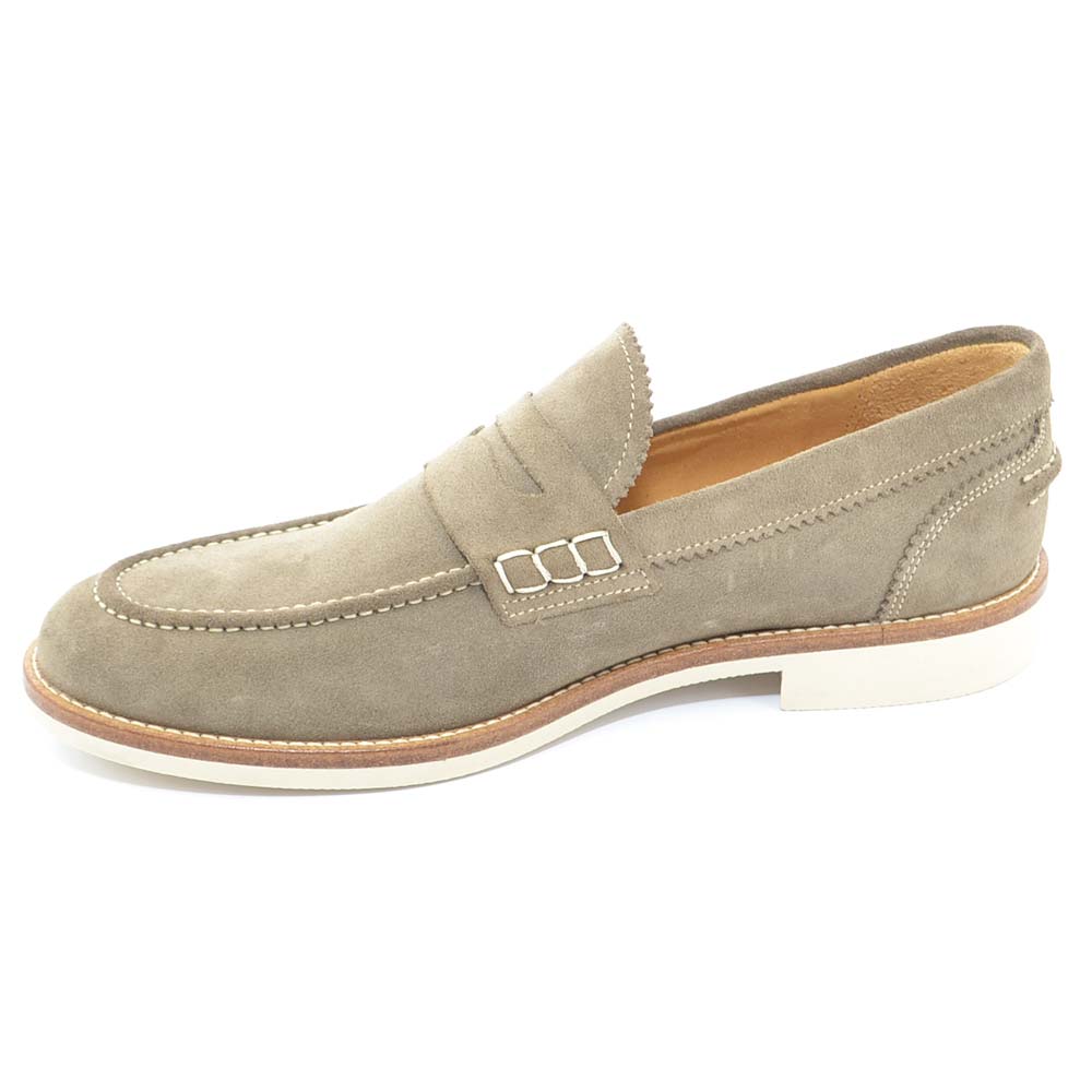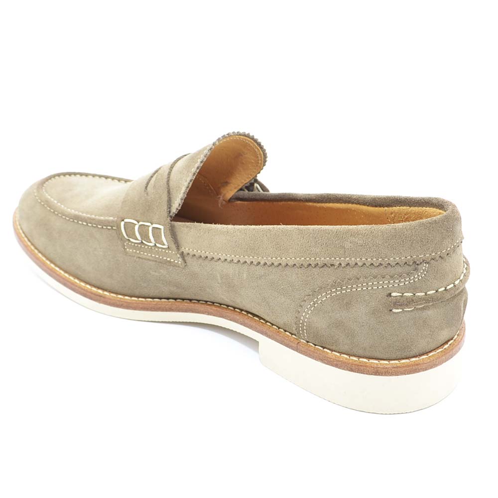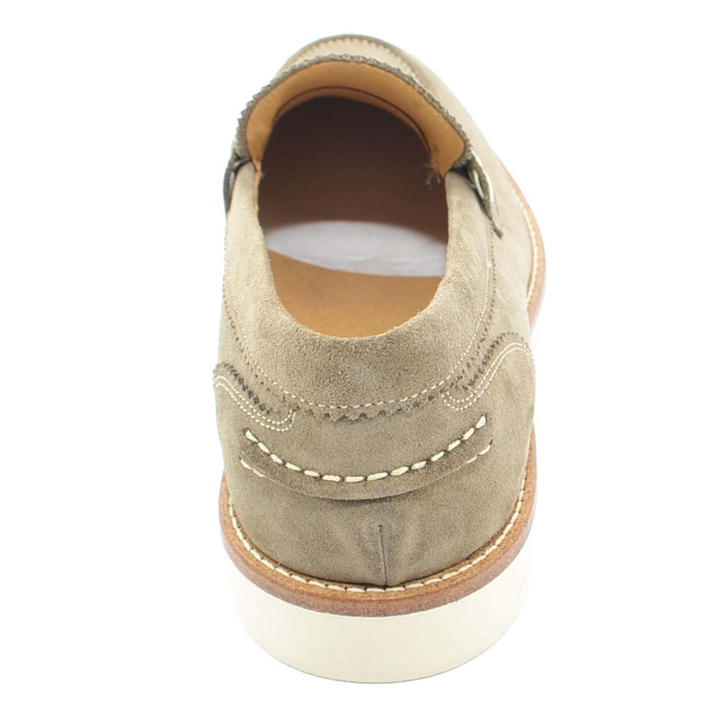 College uomo inglese mocassino beige vera pelle scamosciata fondo gomma light estivo intersuola cuoio handmade in italy