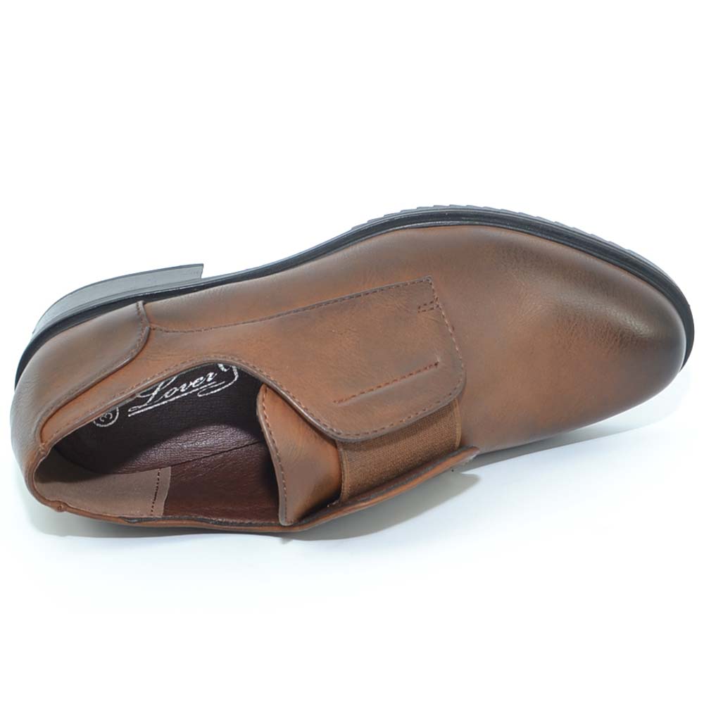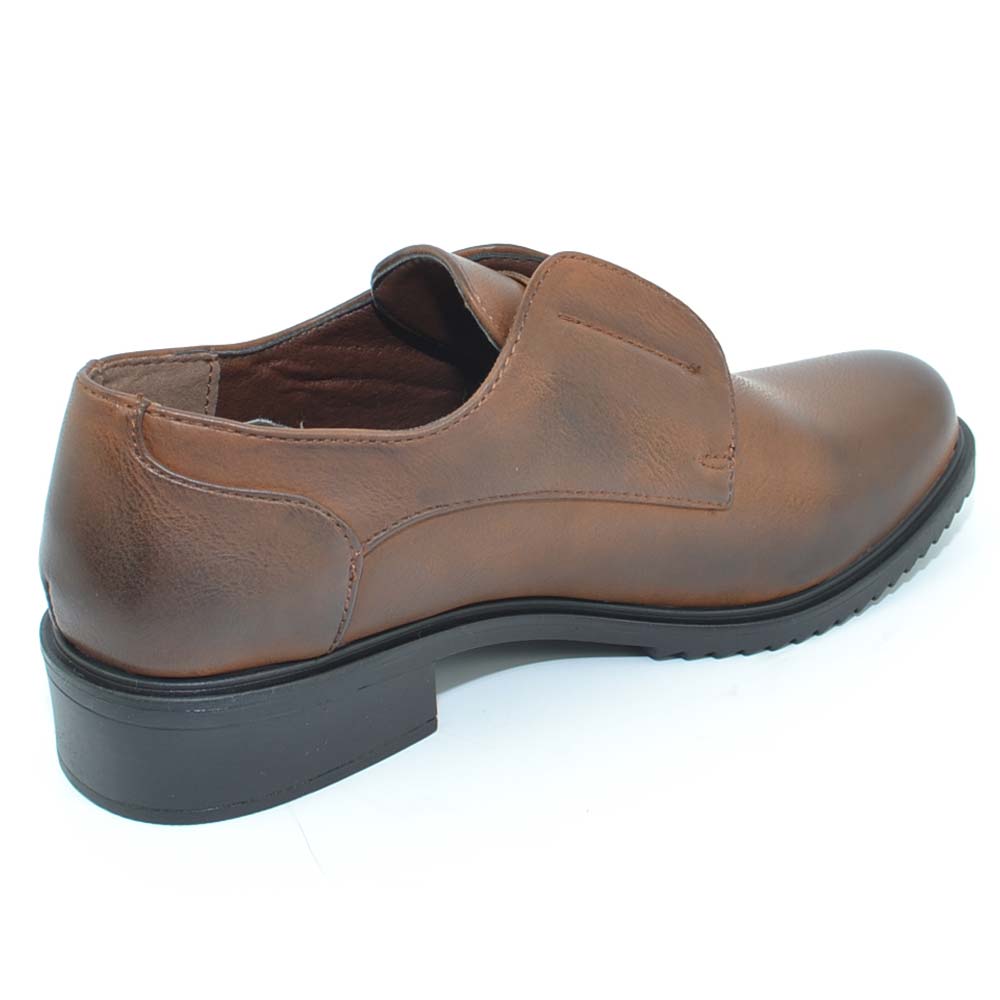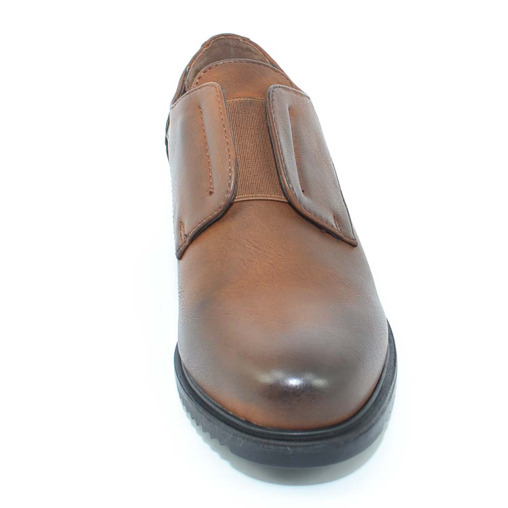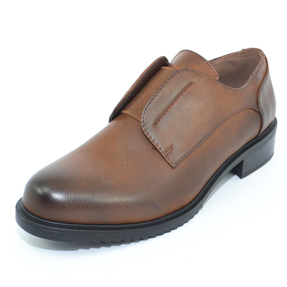 Scarpe francesina donna marrone sfumato senza lacci con elastico punta tonda vintage gomma comfort linea basic