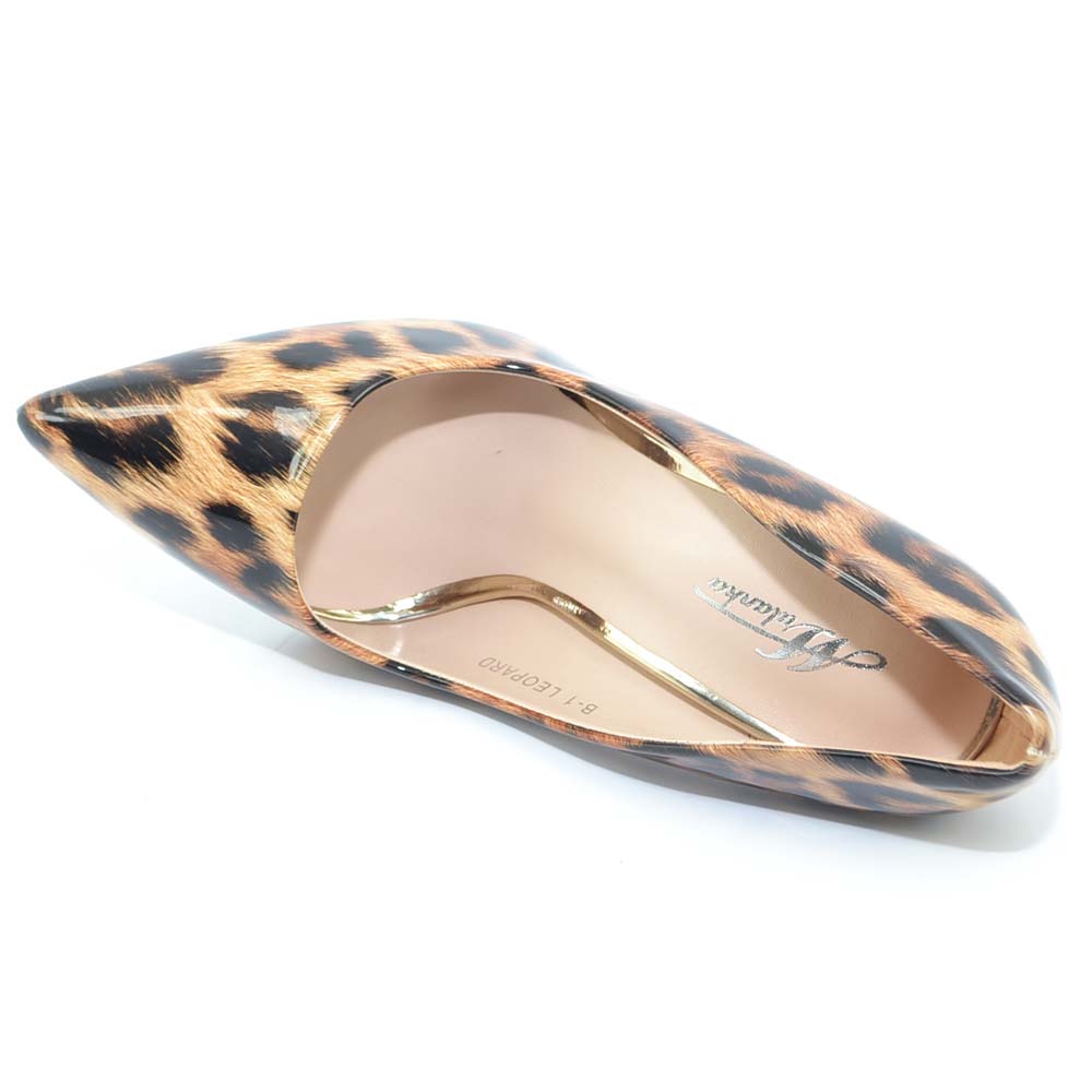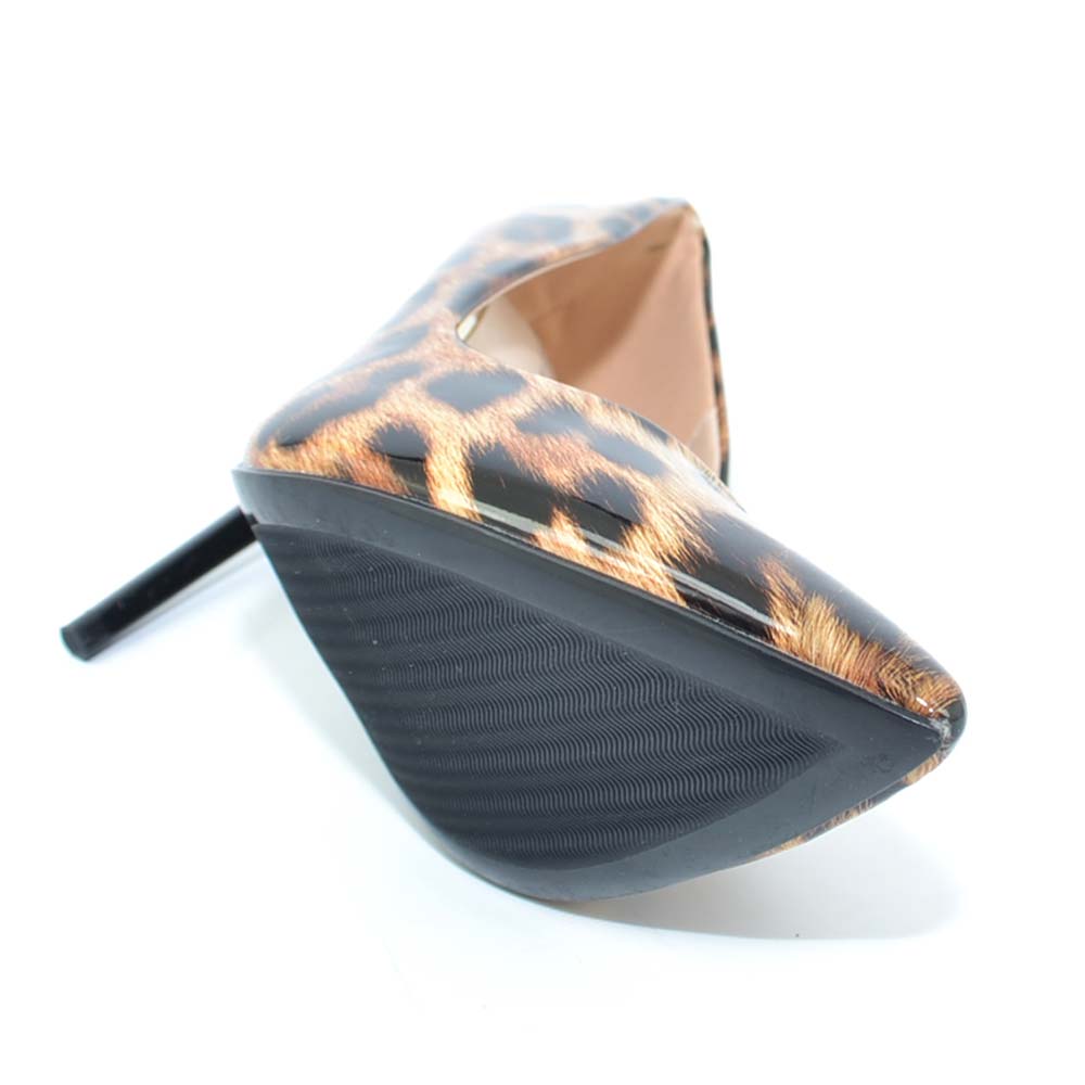 Decollete donna a punta lucido in vinile con stampa leopardata nude tacco 12 spillo basic glam moda business woman