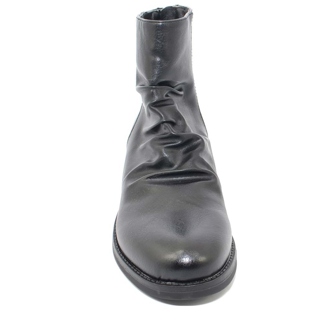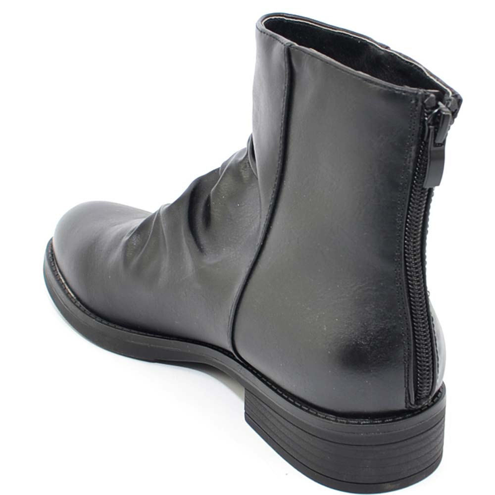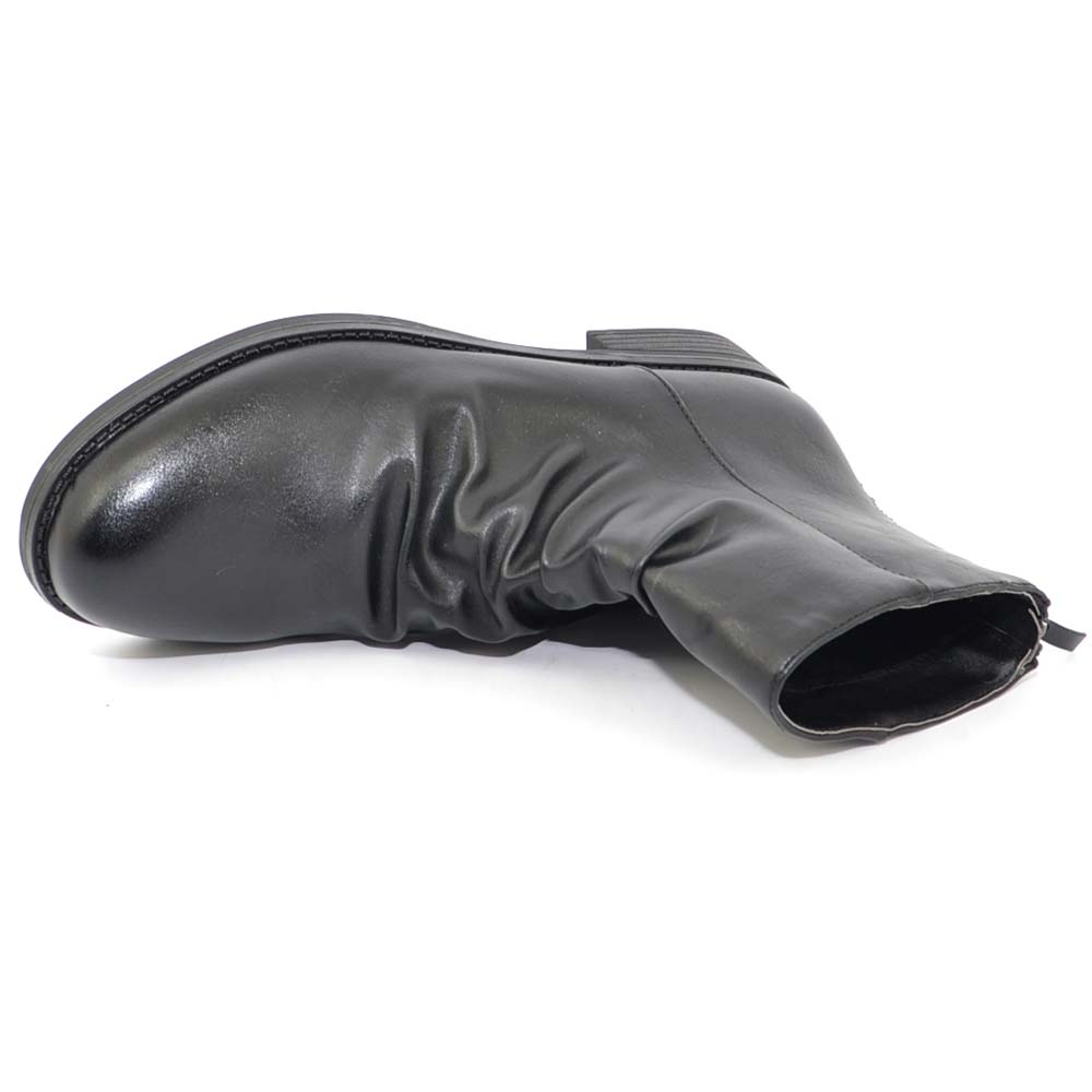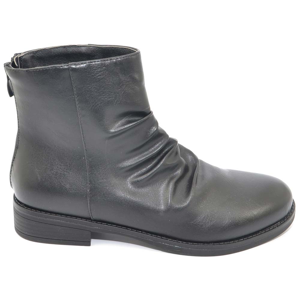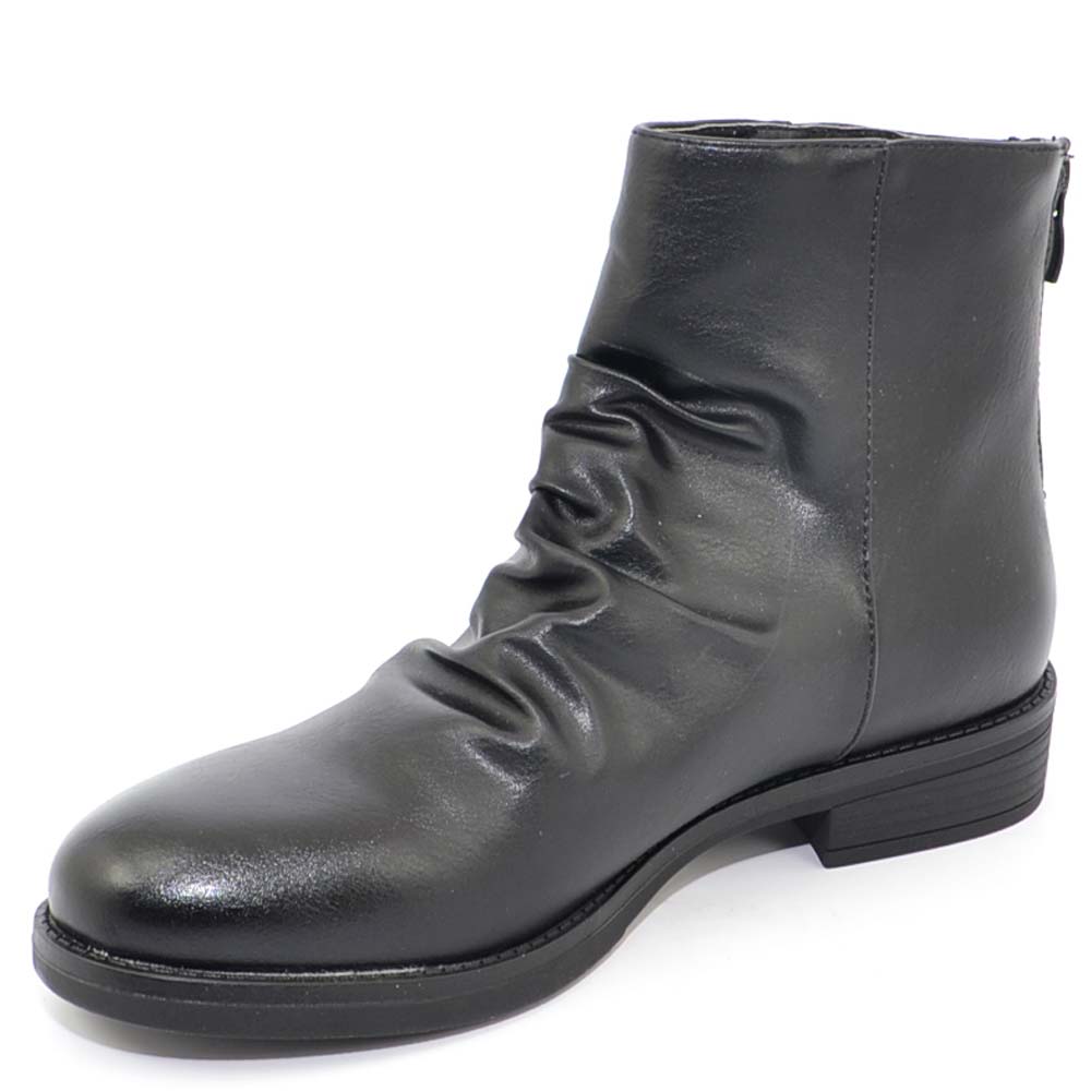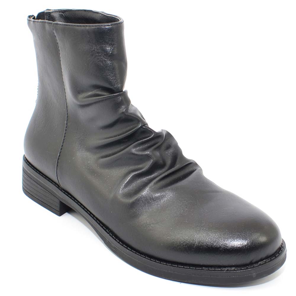 Stivaletti donna bassi neri morbidi arricciati comodi con zip argento moda western punta tonda chiusura retro texas