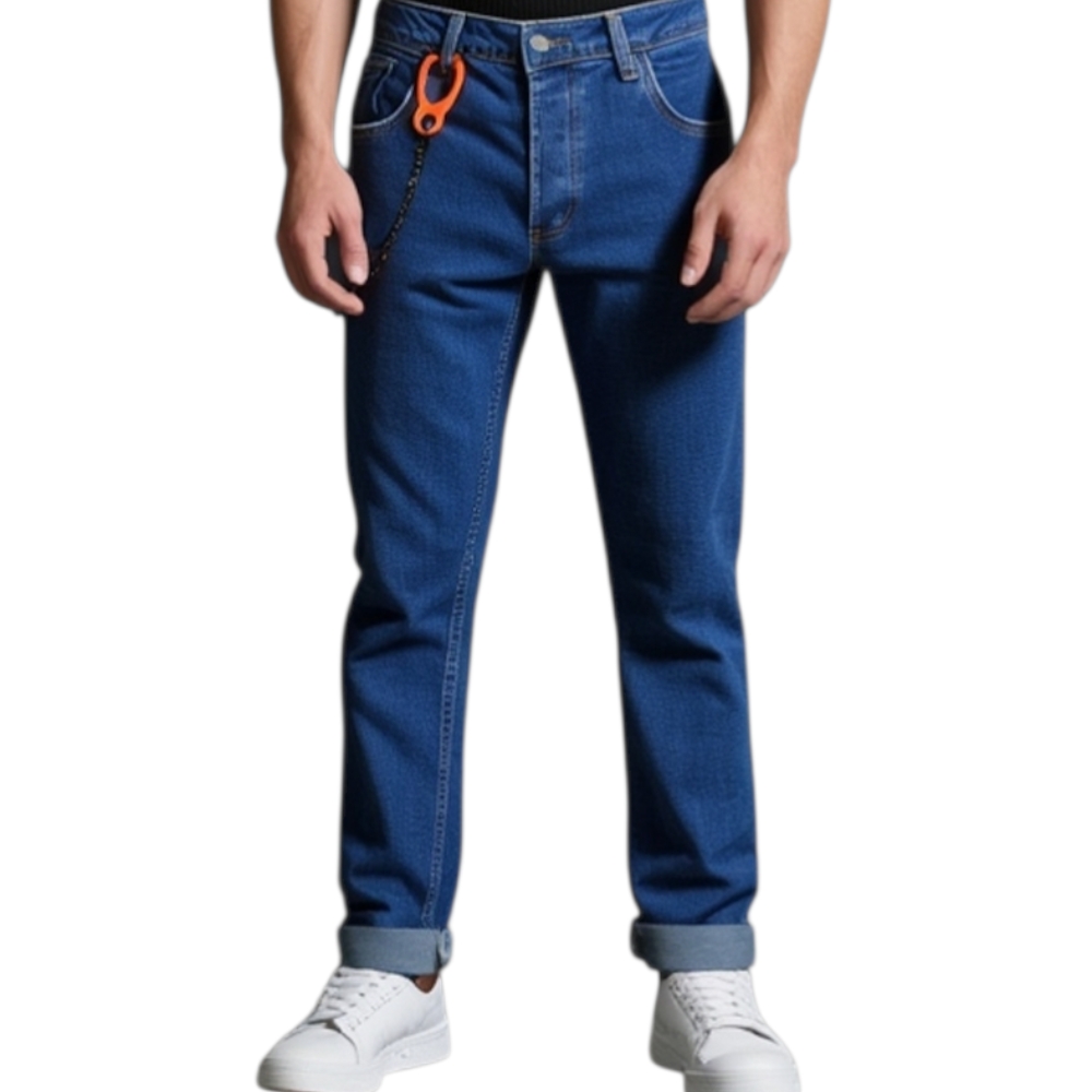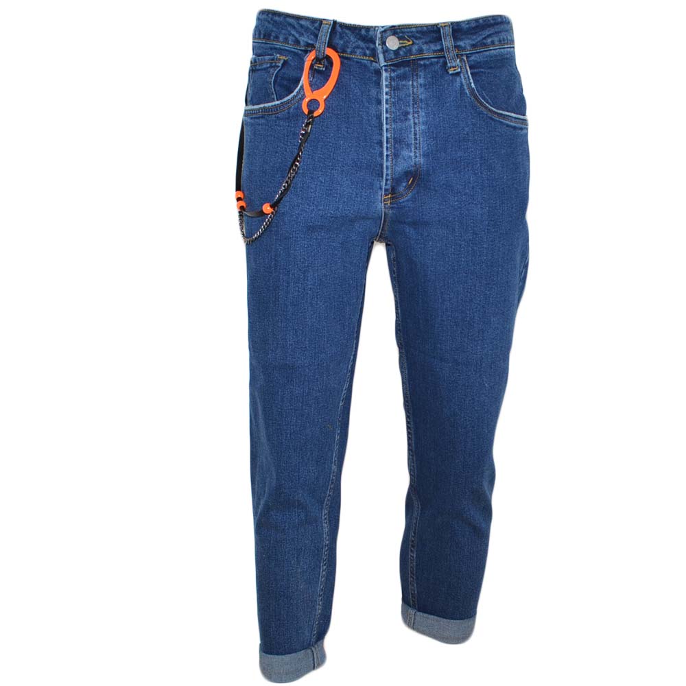 Jeans denim uomo skinny fit con effetto slavato Cinque tasche Chiusura frontale cerniera e bottone con gancio fluo neon
