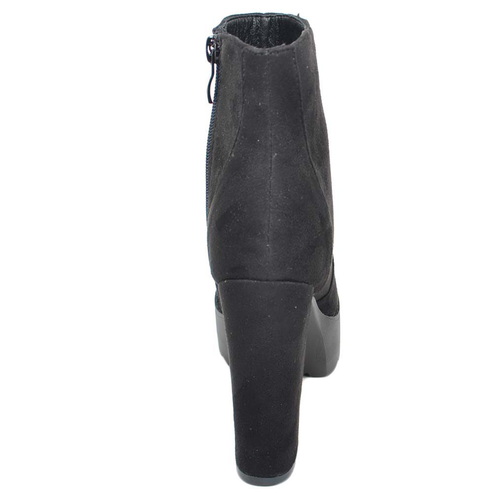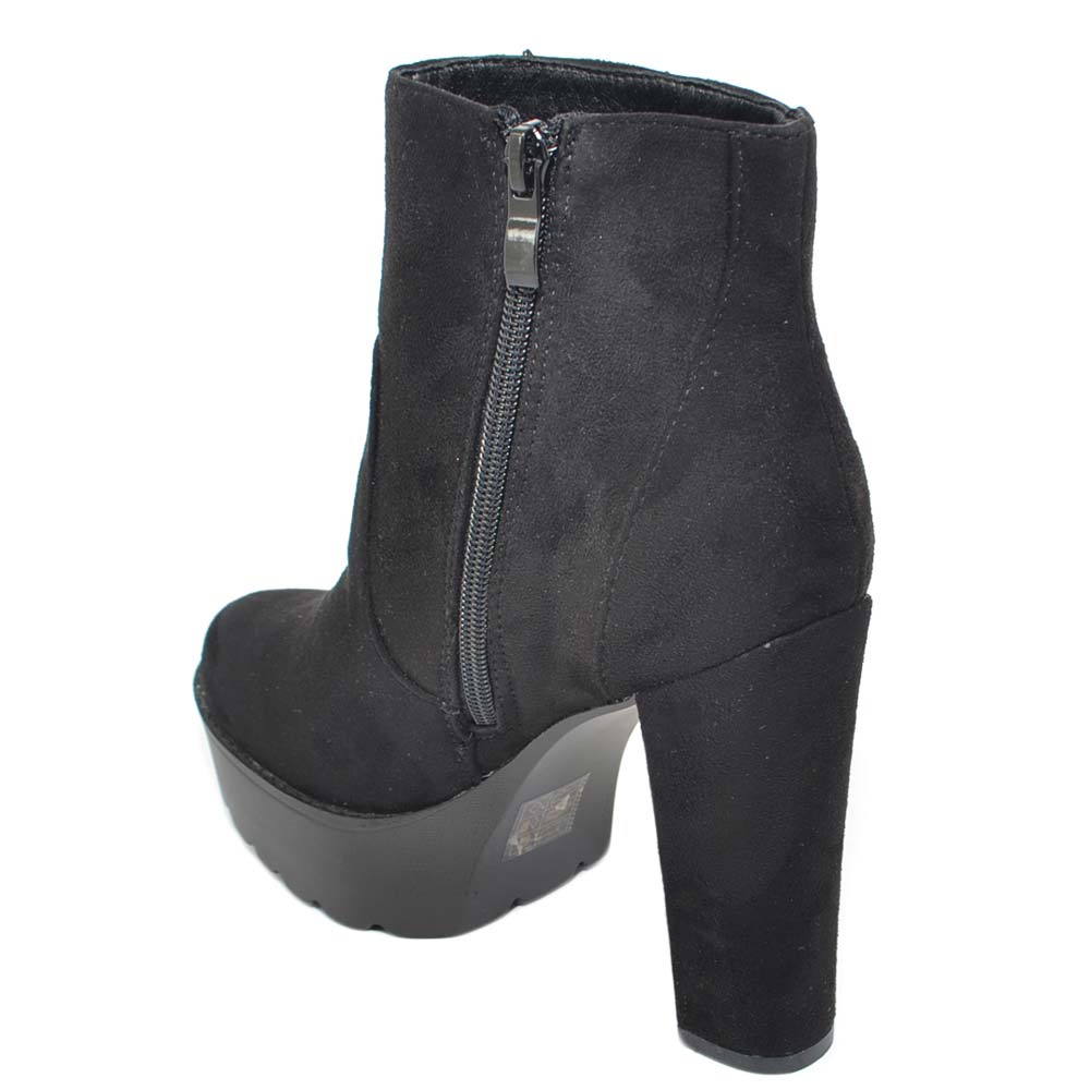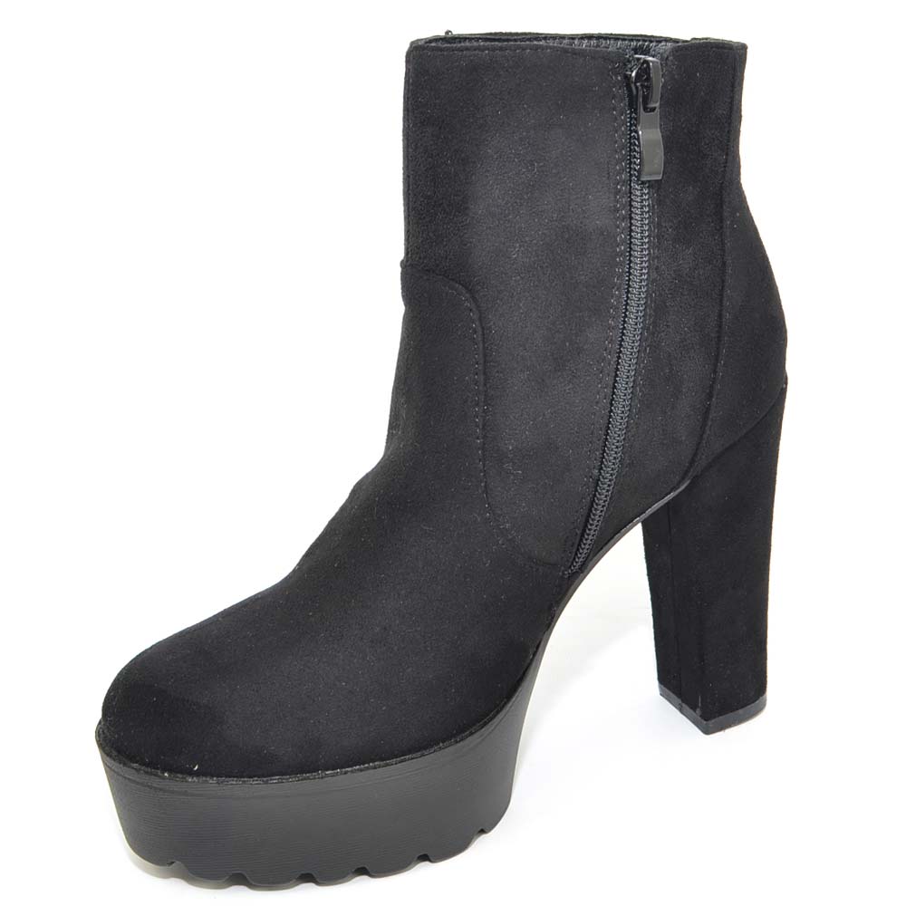 TRONCHETTO DONNA IN CAMOSCIO NERO CON PLATEAU E TACCO LARGO ALLA CAVIGLIA CON ZIP