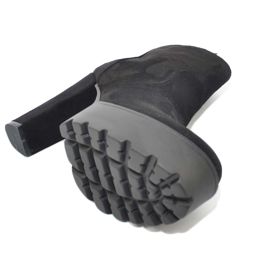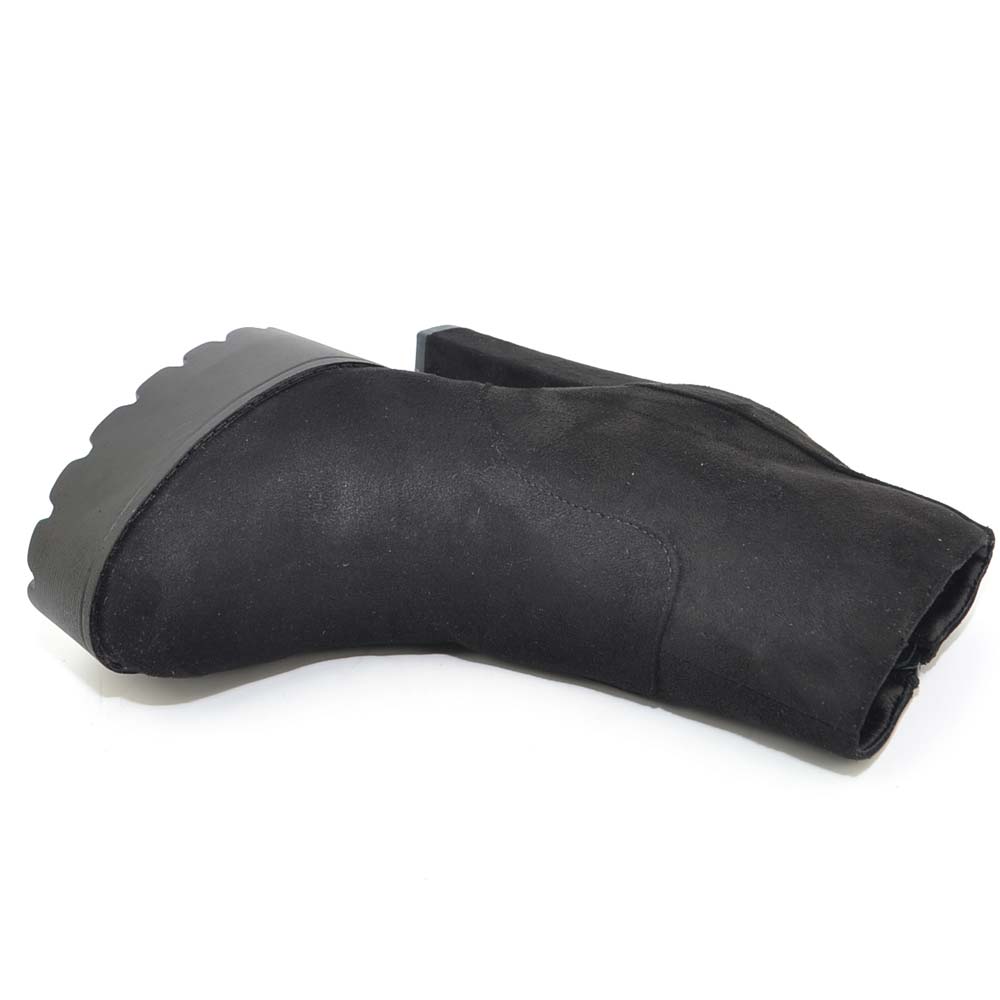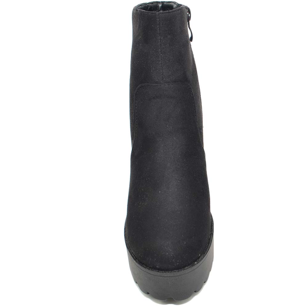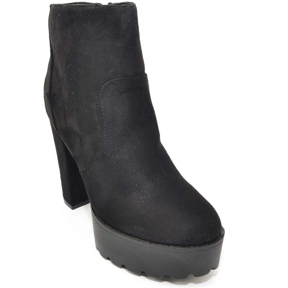 TRONCHETTO DONNA IN CAMOSCIO NERO CON PLATEAU E TACCO LARGO ALLA CAVIGLIA CON ZIP