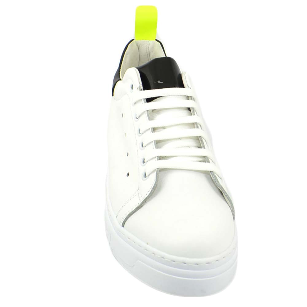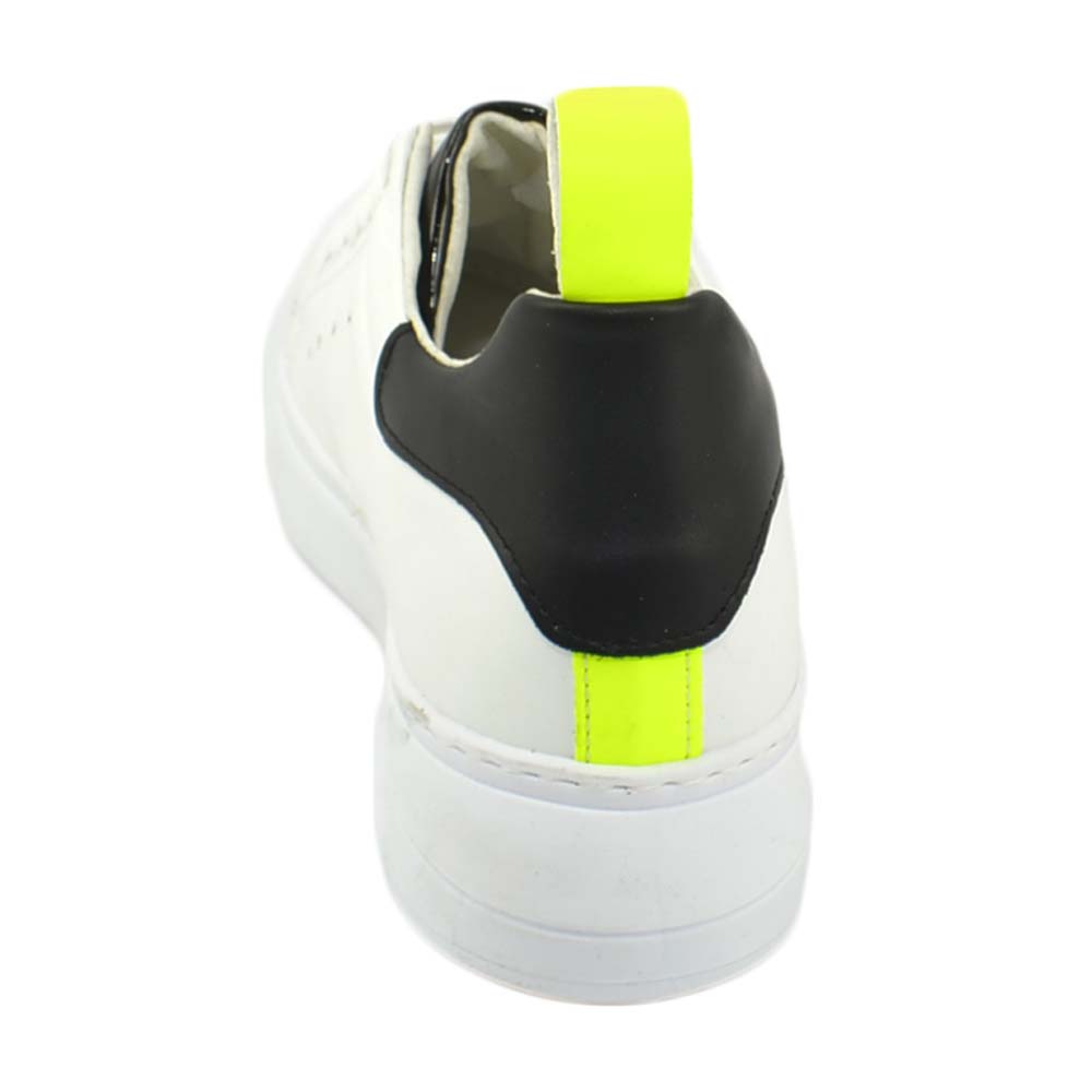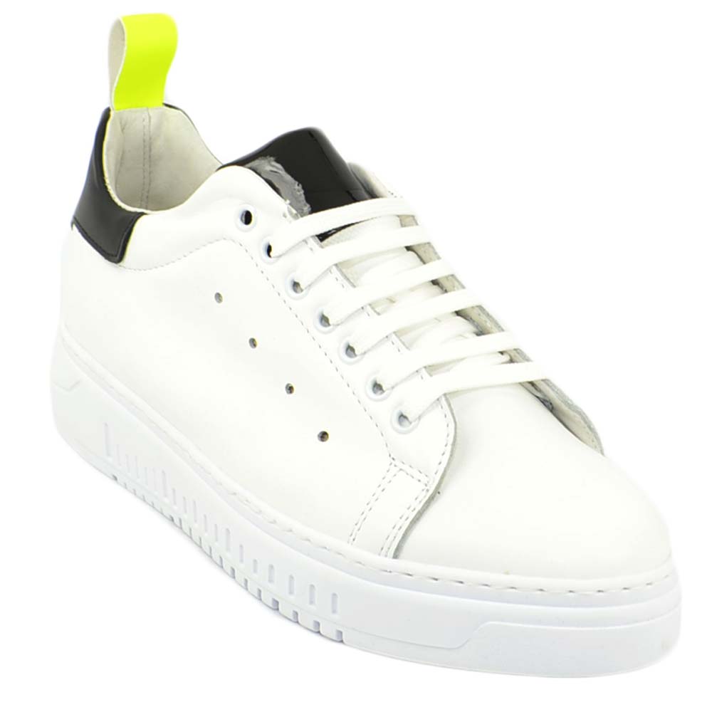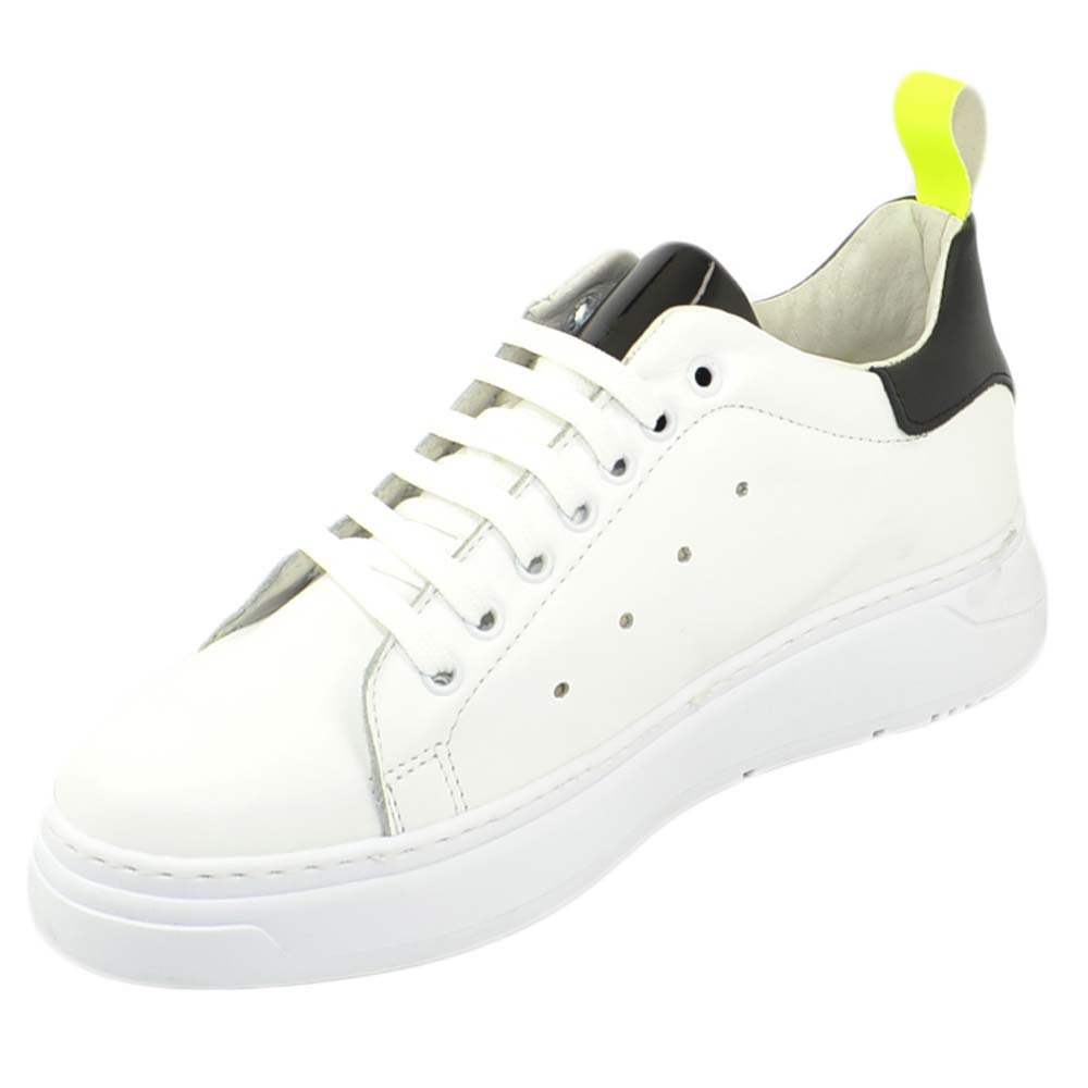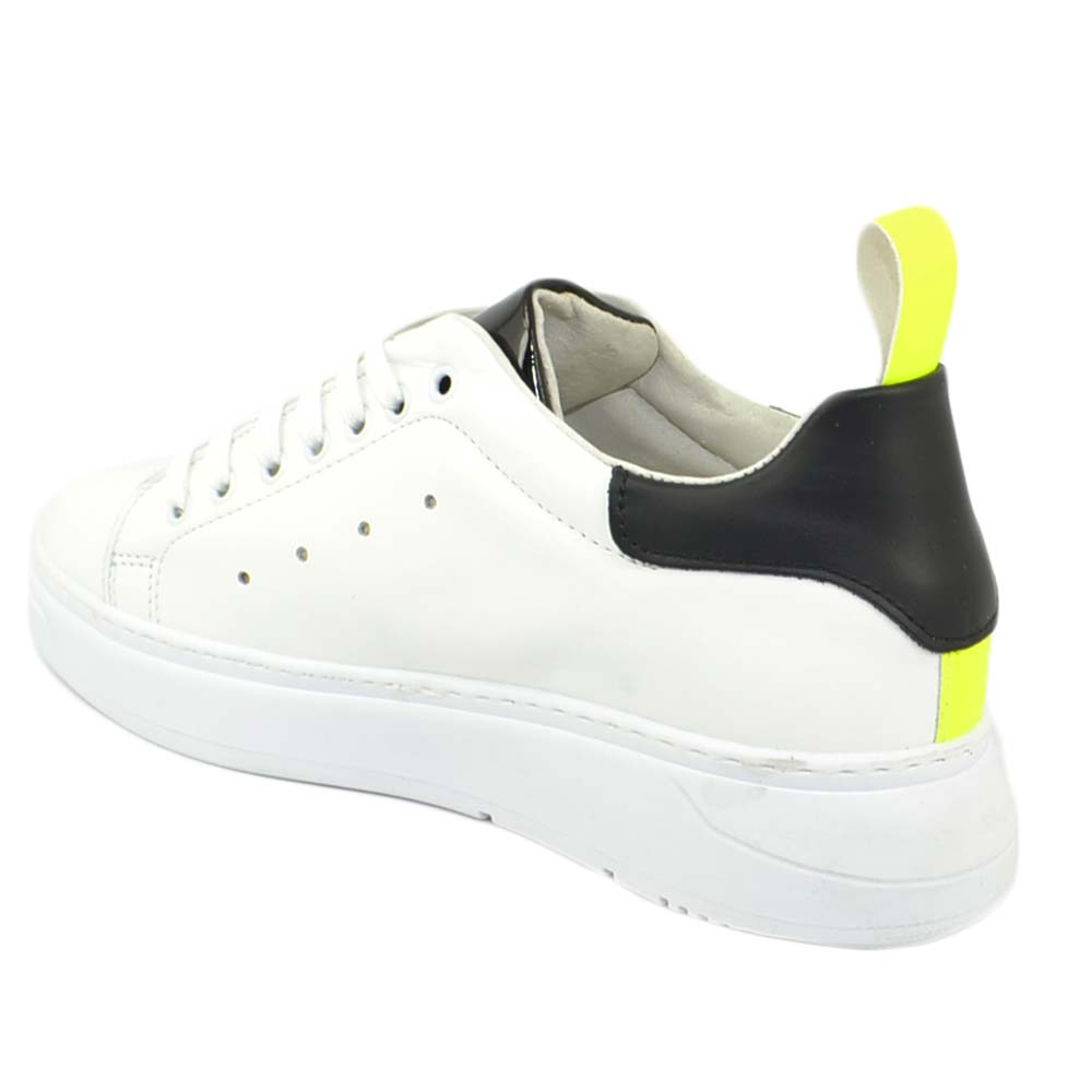 Sneakers scarpa bassa uomo bian con fortino giallo fluo e nero reflex fondo army bianco moda vera pelle made in italy