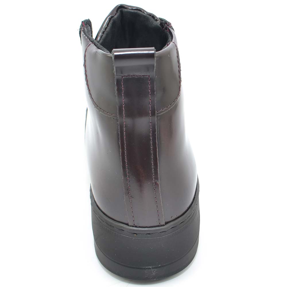 Sneakers alta uomo in vera pelle abrasivata bordeaux a stivaletto spazzolata a mano con fondo alto nero made in italy