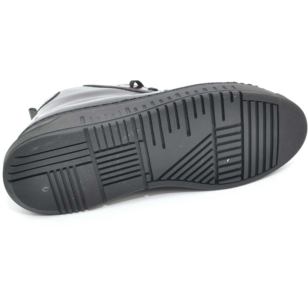 Sneakers uomo alta stivaletto in era pelle nappa nero con punta e suola gomma army bianca lacci made in italy.