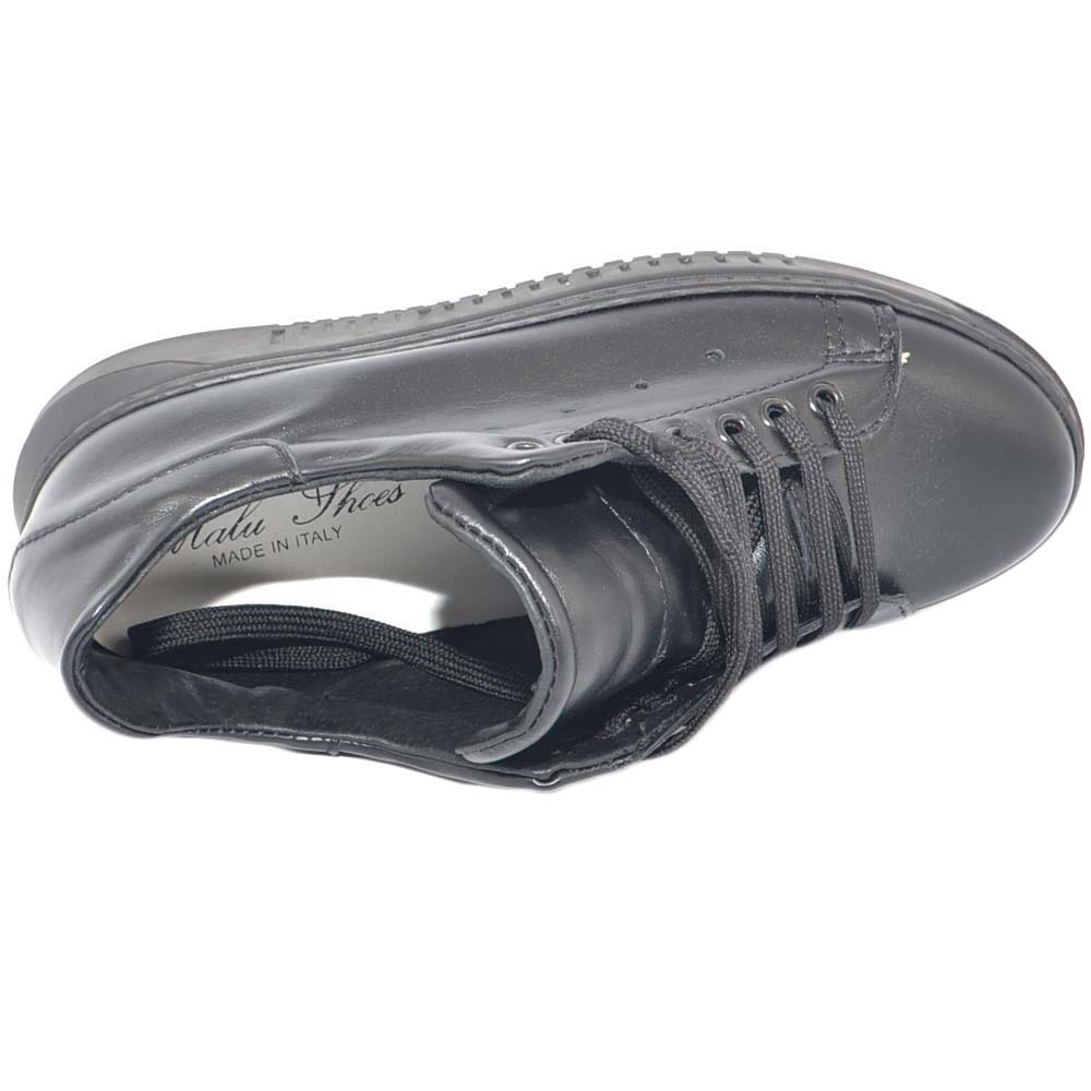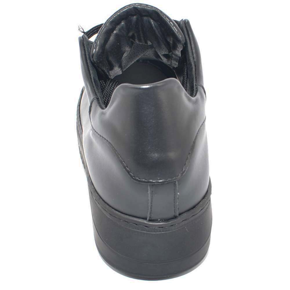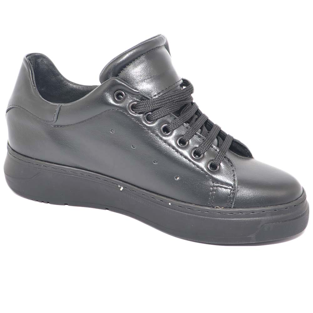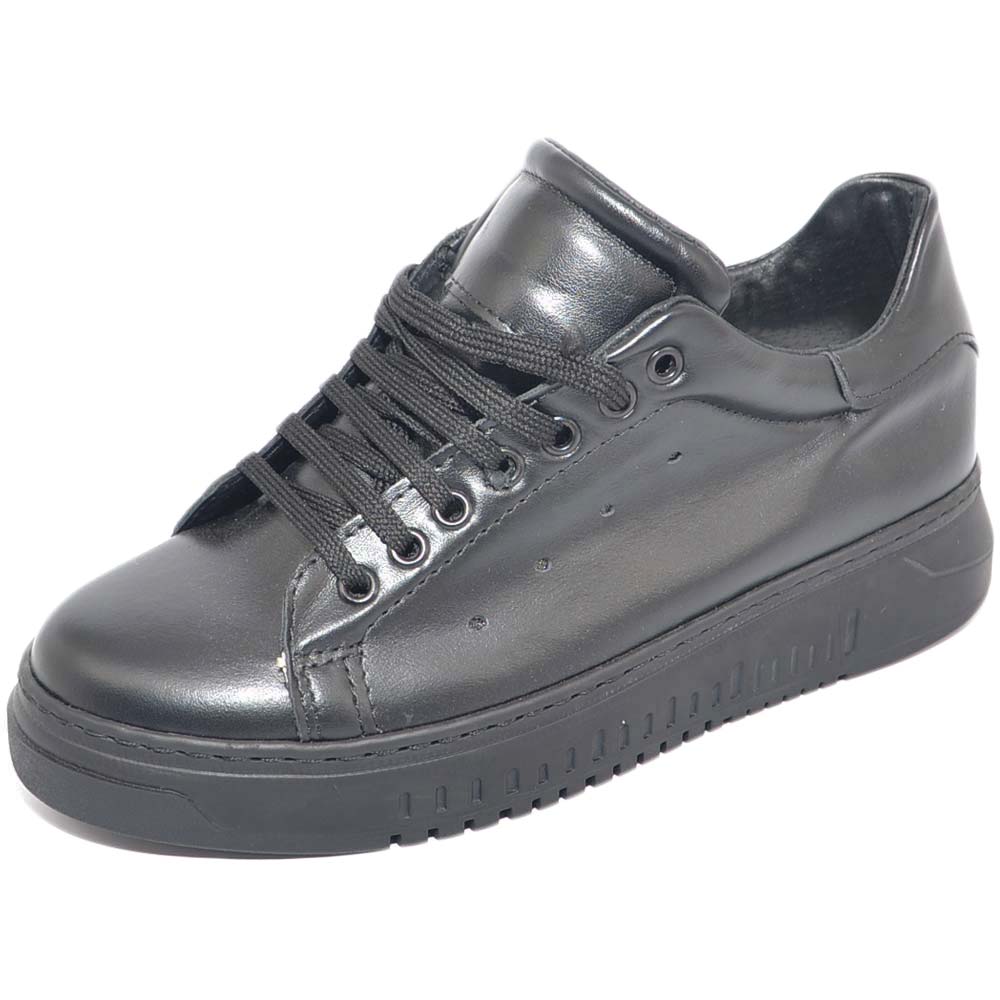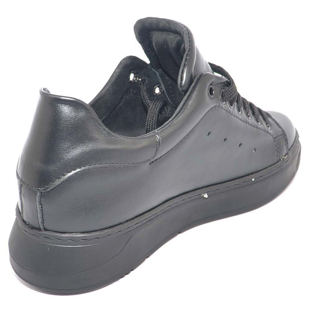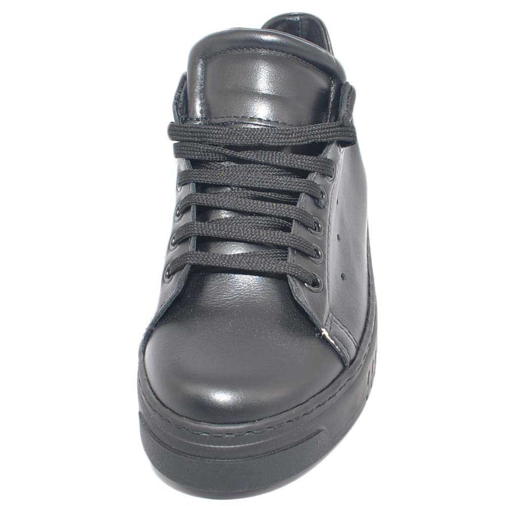 Sneakers uomo in vera pelle nero con talloncino in pelle tono su tono gomma comfort casual made in Italy moda.