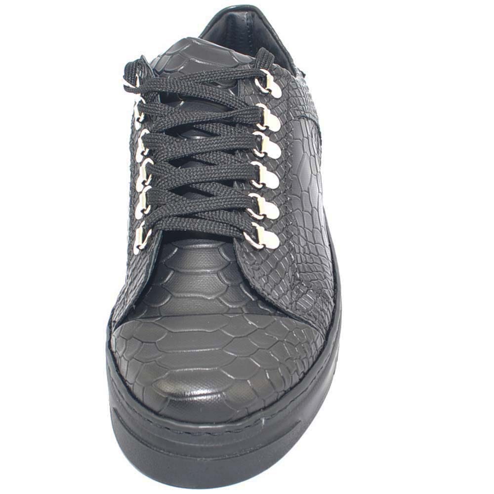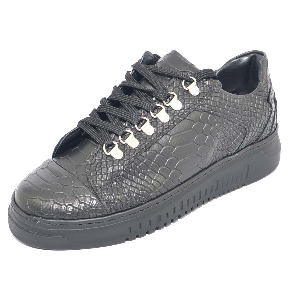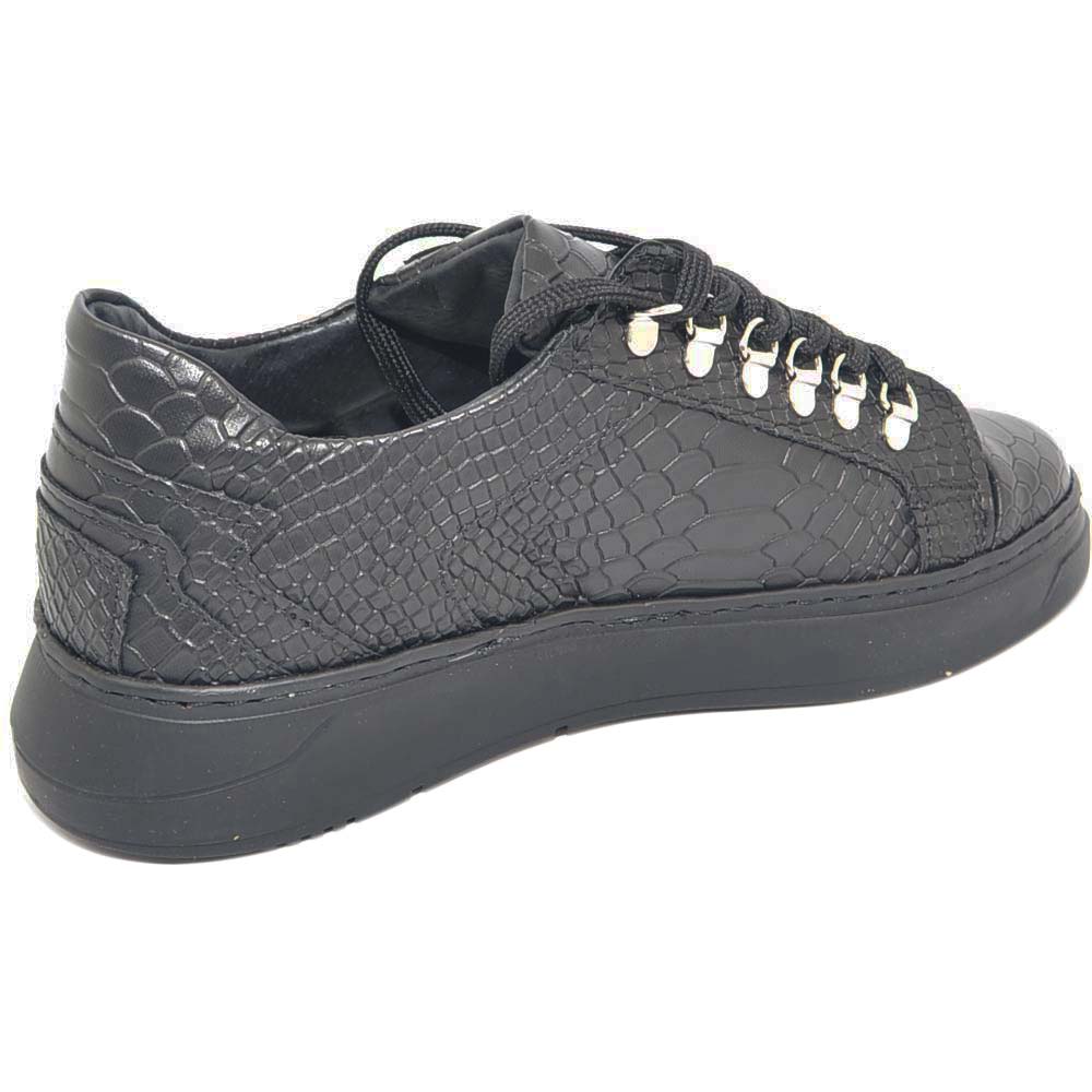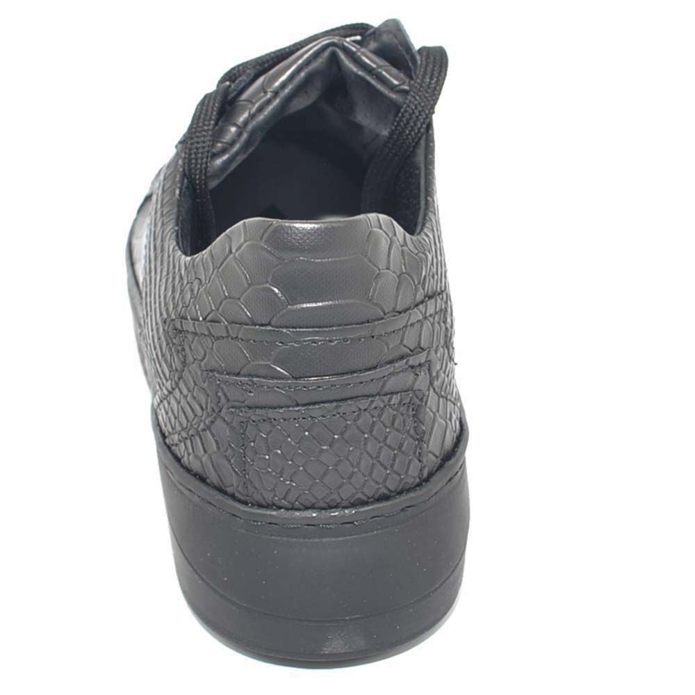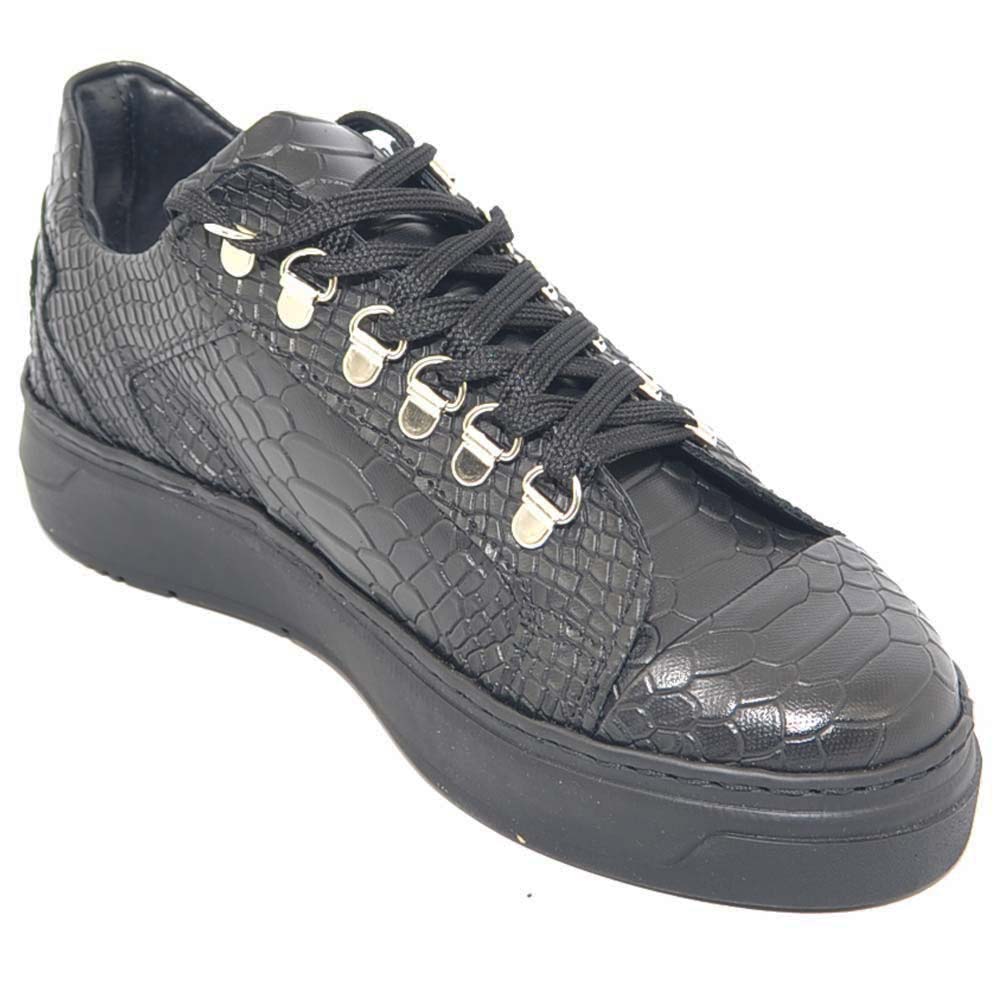 Sneakers bassa uomo nera in pelle cocco anaconda con ganci argento e fondo army nero alto disruptor moda giovane