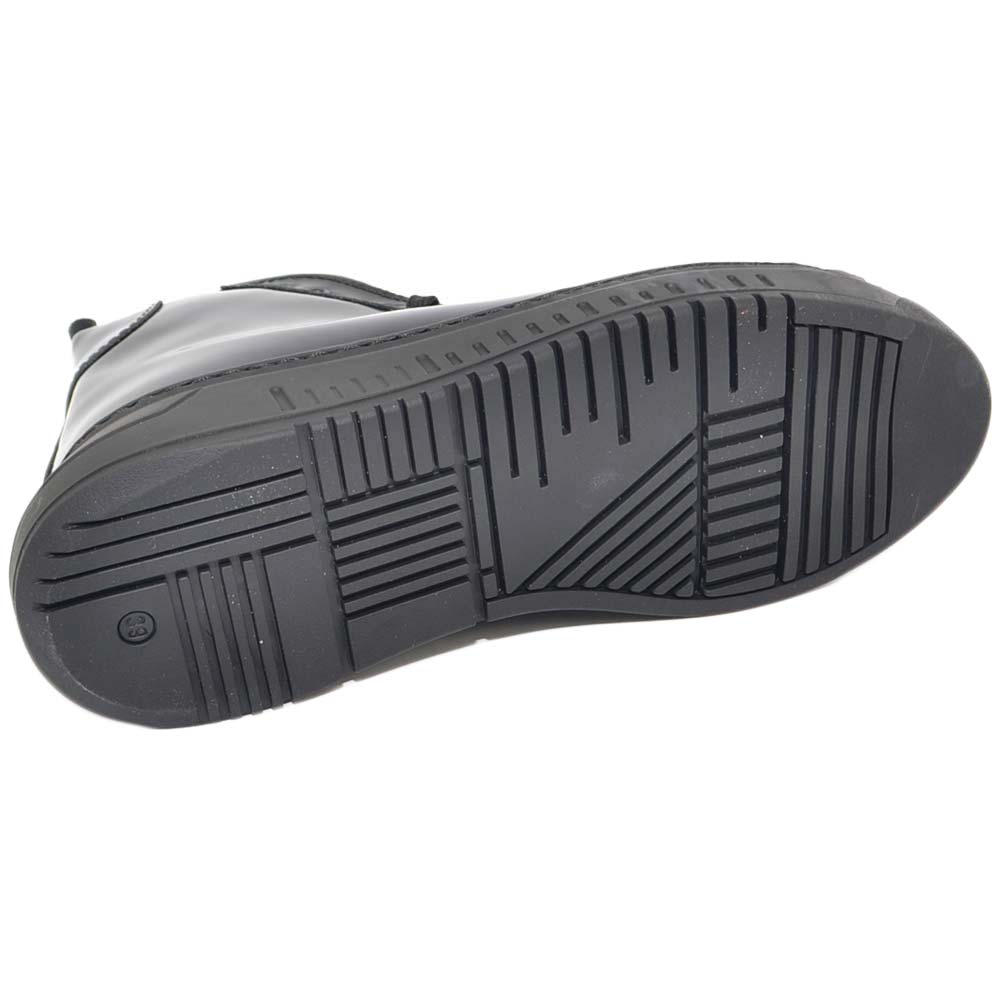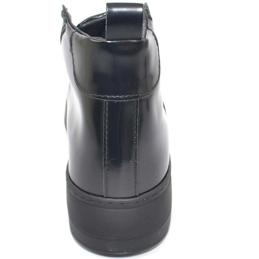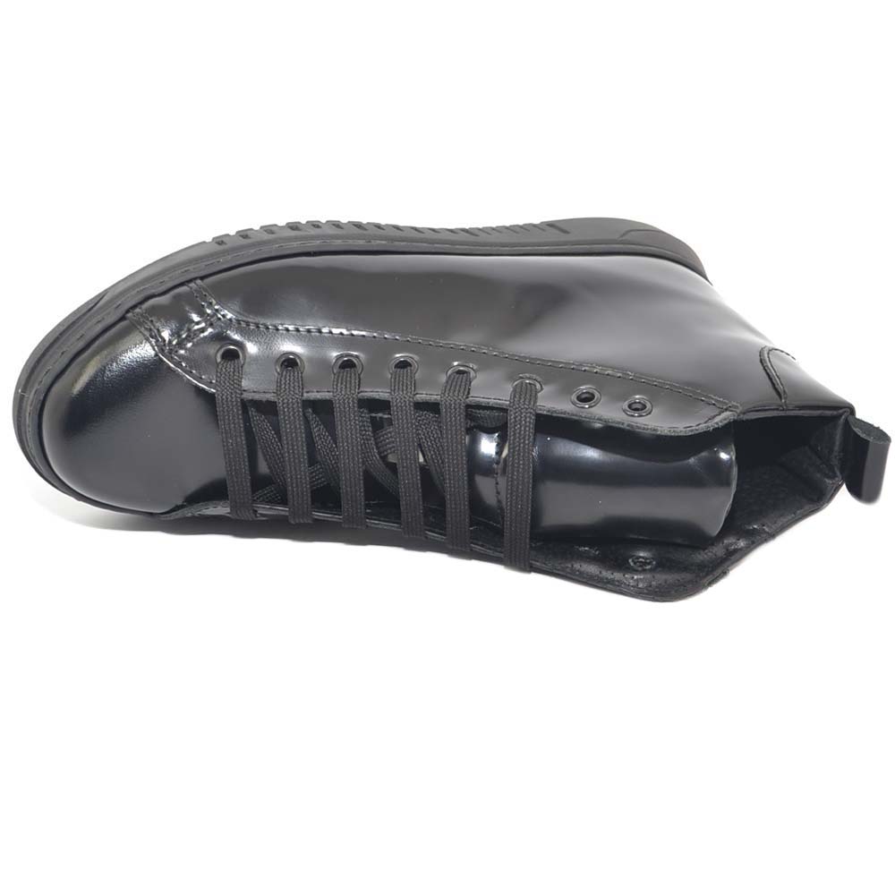 Sneakers uomo alta nera in vera pelle gommata con ganci in acciaio clip estivo fondo army bianco made in italy.