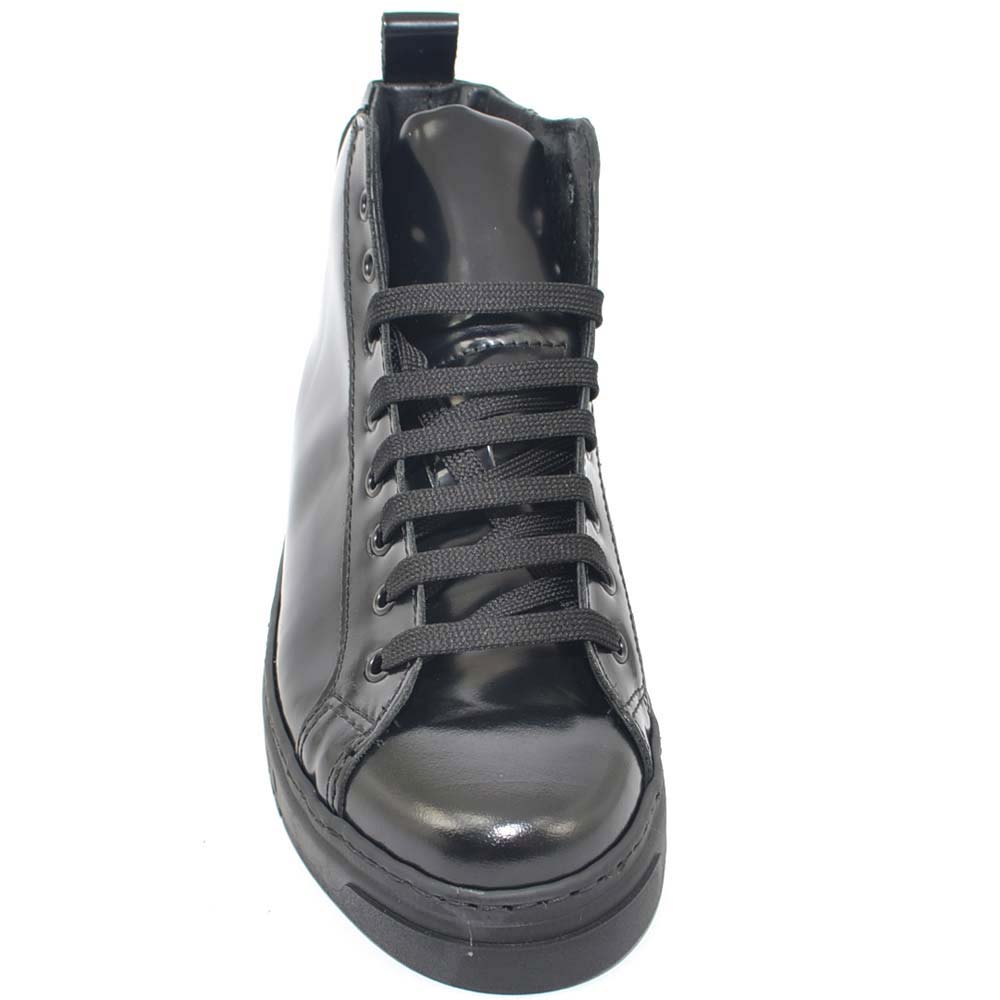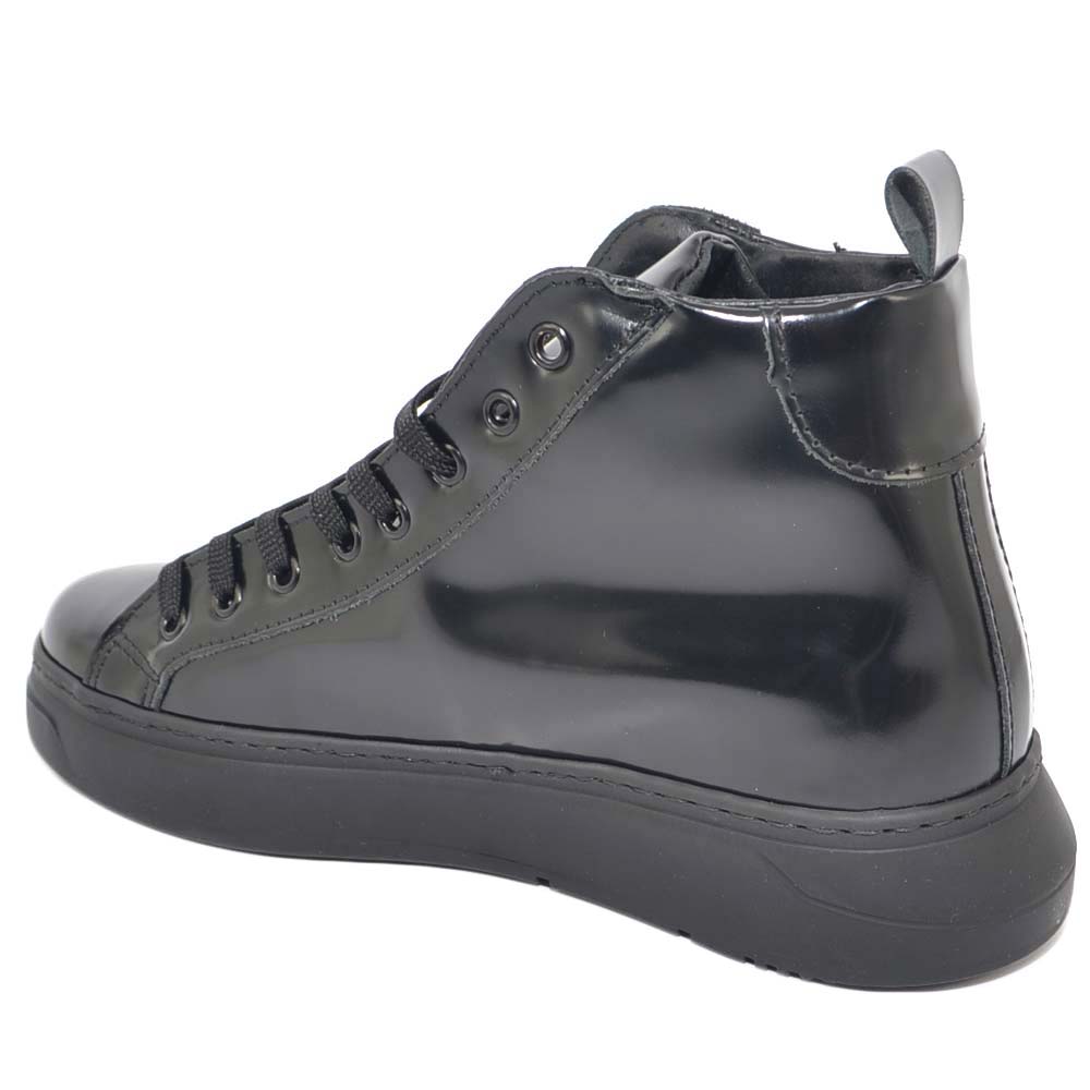 Sneakers alta uomo in vera pelle abrasivata nera a stivaletto spazzolata a mano con fondo alto nero made in italy