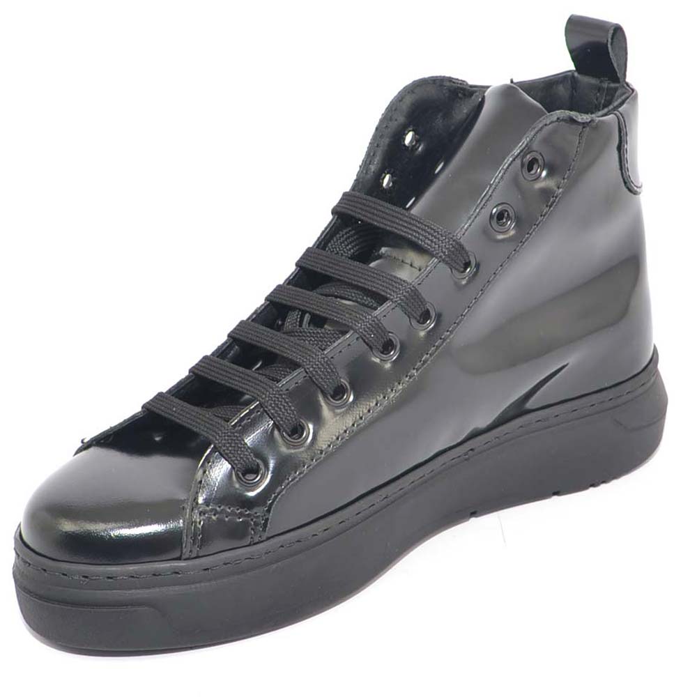 Stivaletto uomo nero scarpa sneakers alta in vera pelle scamosciata tinta unita lacci fondo gomma moda tendenza.