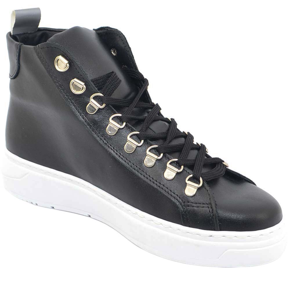 SNEAKERS UOMO ALTA STIVALETTO IN VERA PELLE VITELLO NERO FONDO ALTO 2,5 CM CON LACCI MADE IN ITALY MODA.