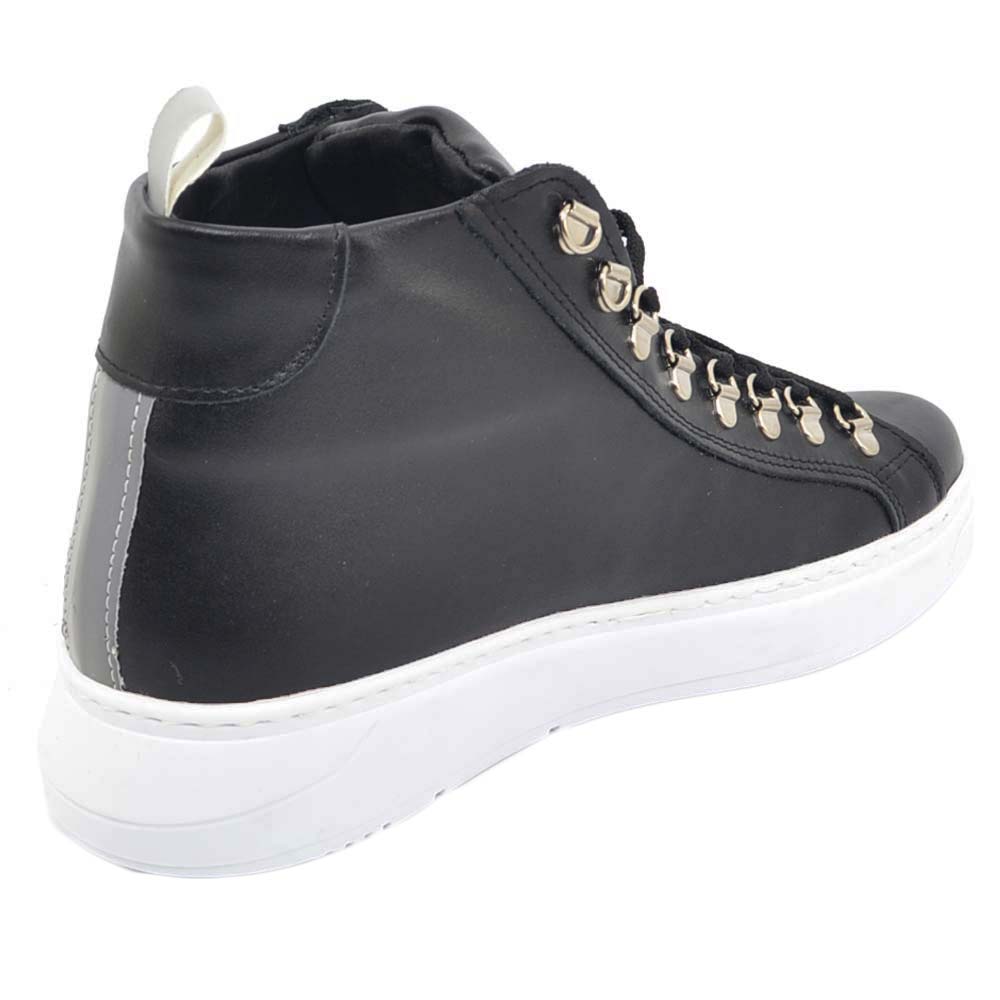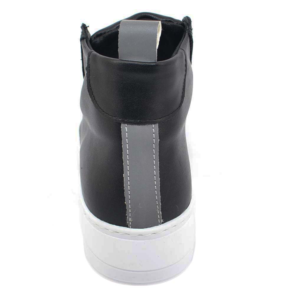SNEAKERS UOMO ALTA STIVALETTO IN VERA PELLE VITELLO NERO FONDO ALTO 2,5 CM CON PUNTA BIANCA MADE IN ITALY MODA.