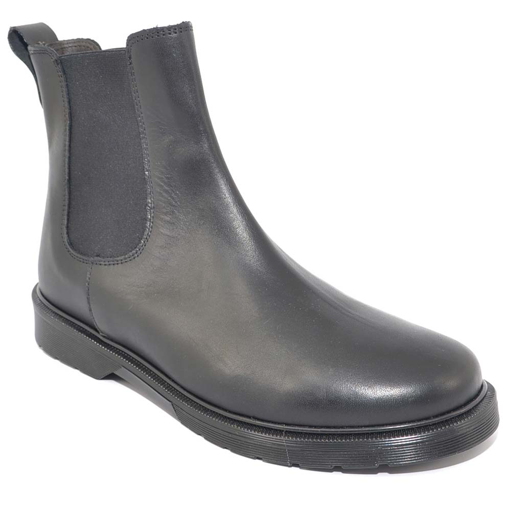 Stivaletto uomo beatles chelsea vera pelle nero spazzolato elastico fondo invernale antiscivolo made in italy