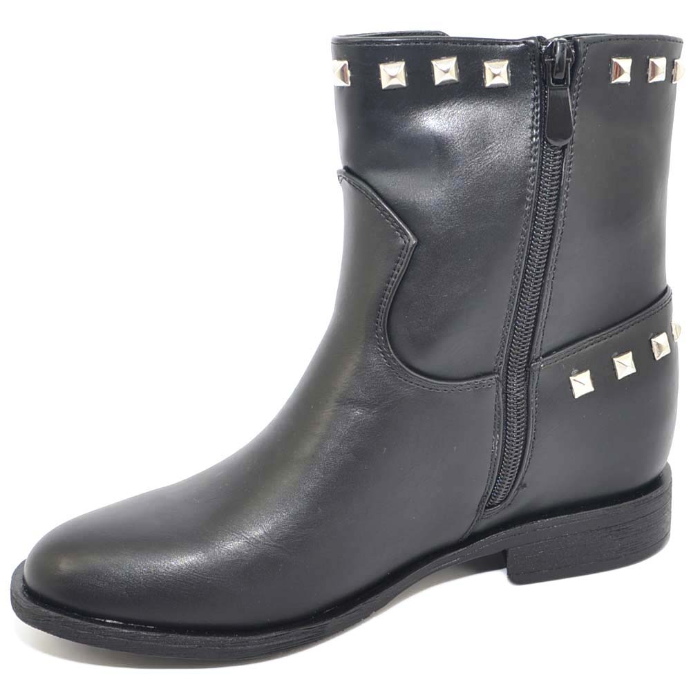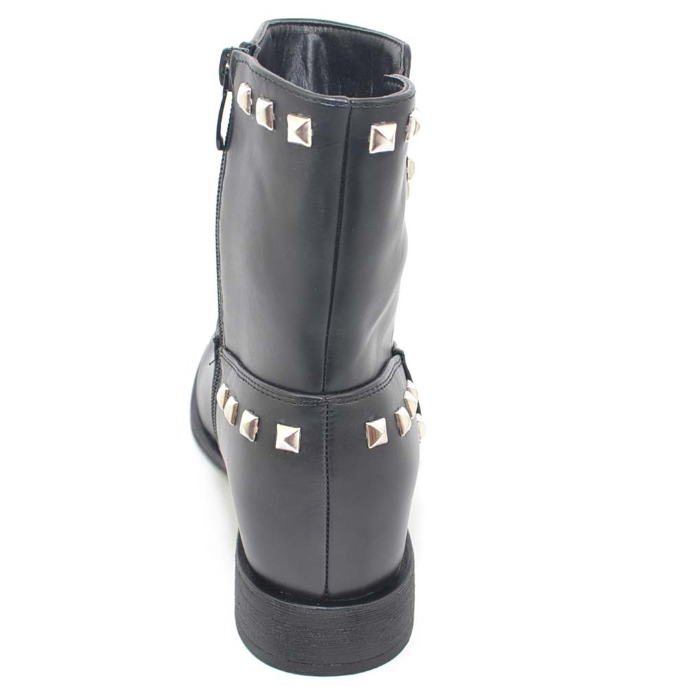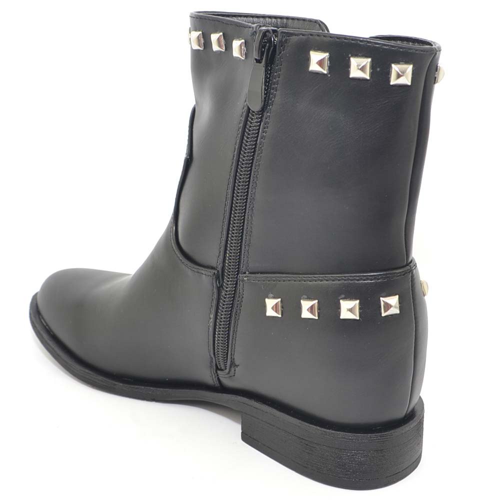 Stivaletti donna neri con para zeppa interna e borchiette con zip punta tonda linea biker altezza caviglia moda petite