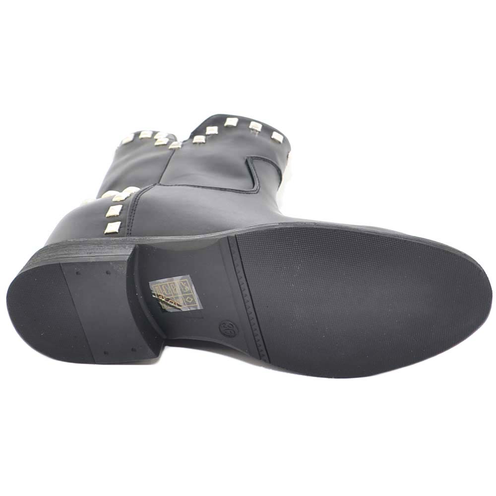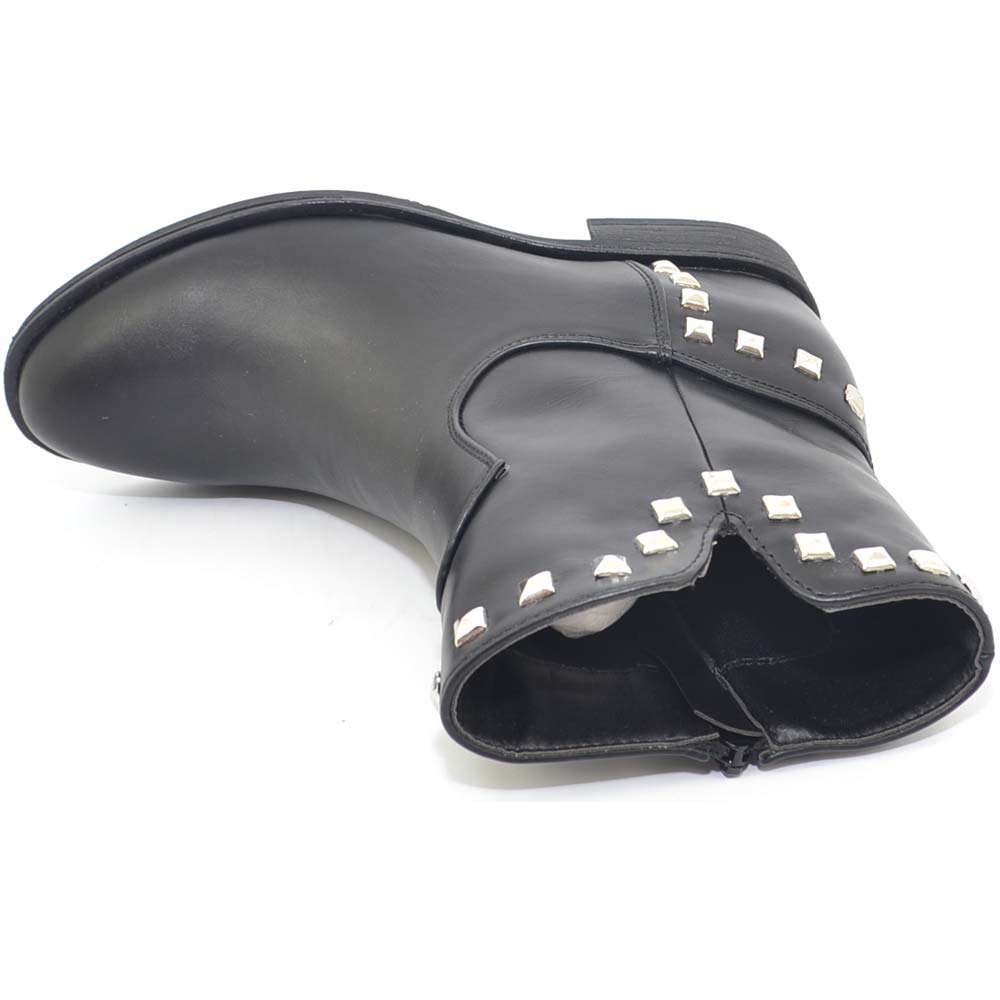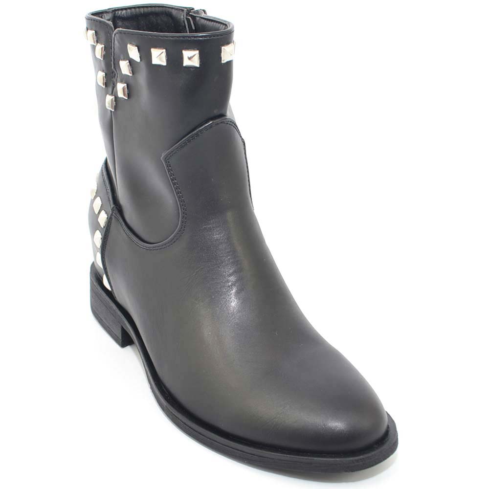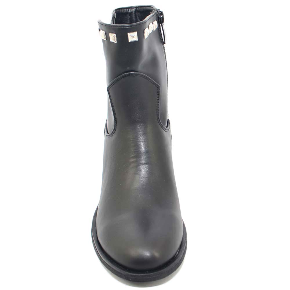 Stivaletti donna neri con para zeppa interna e borchiette con zip punta tonda linea biker altezza caviglia moda petite