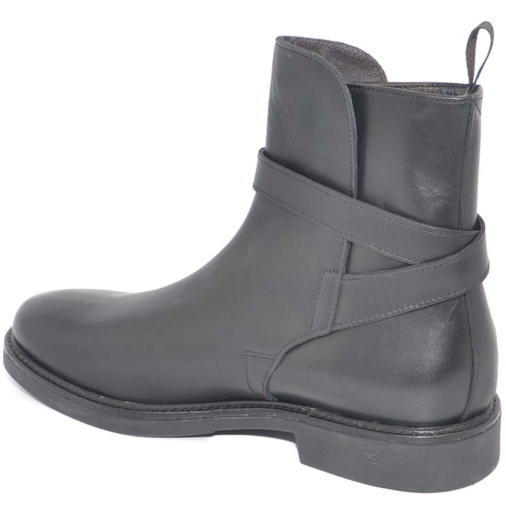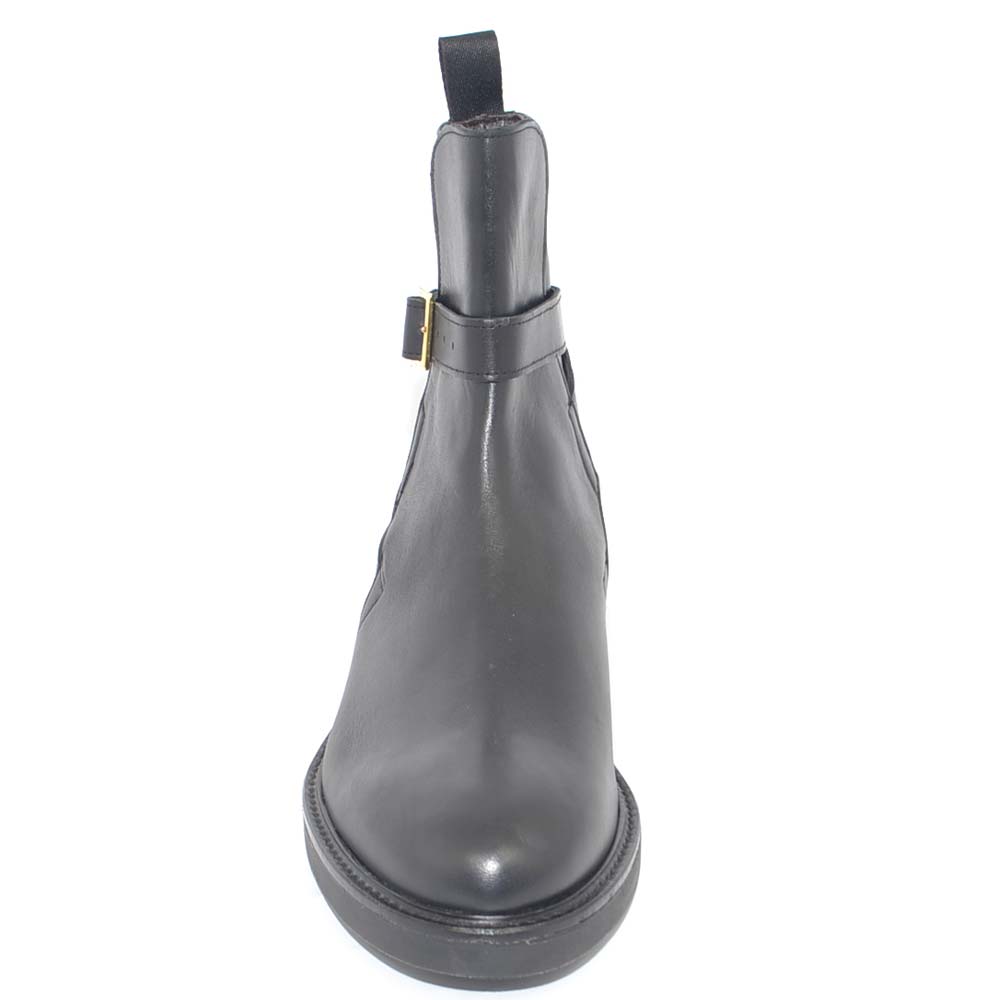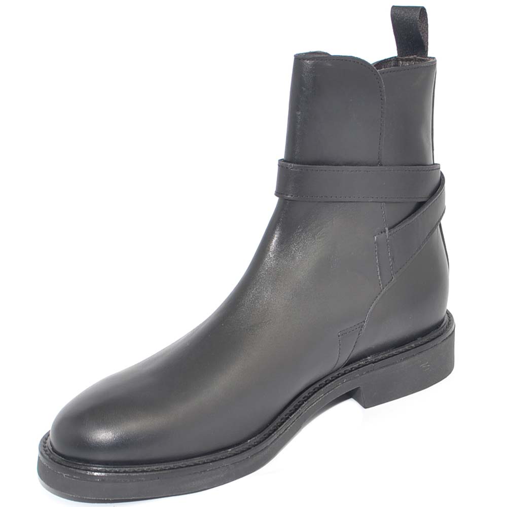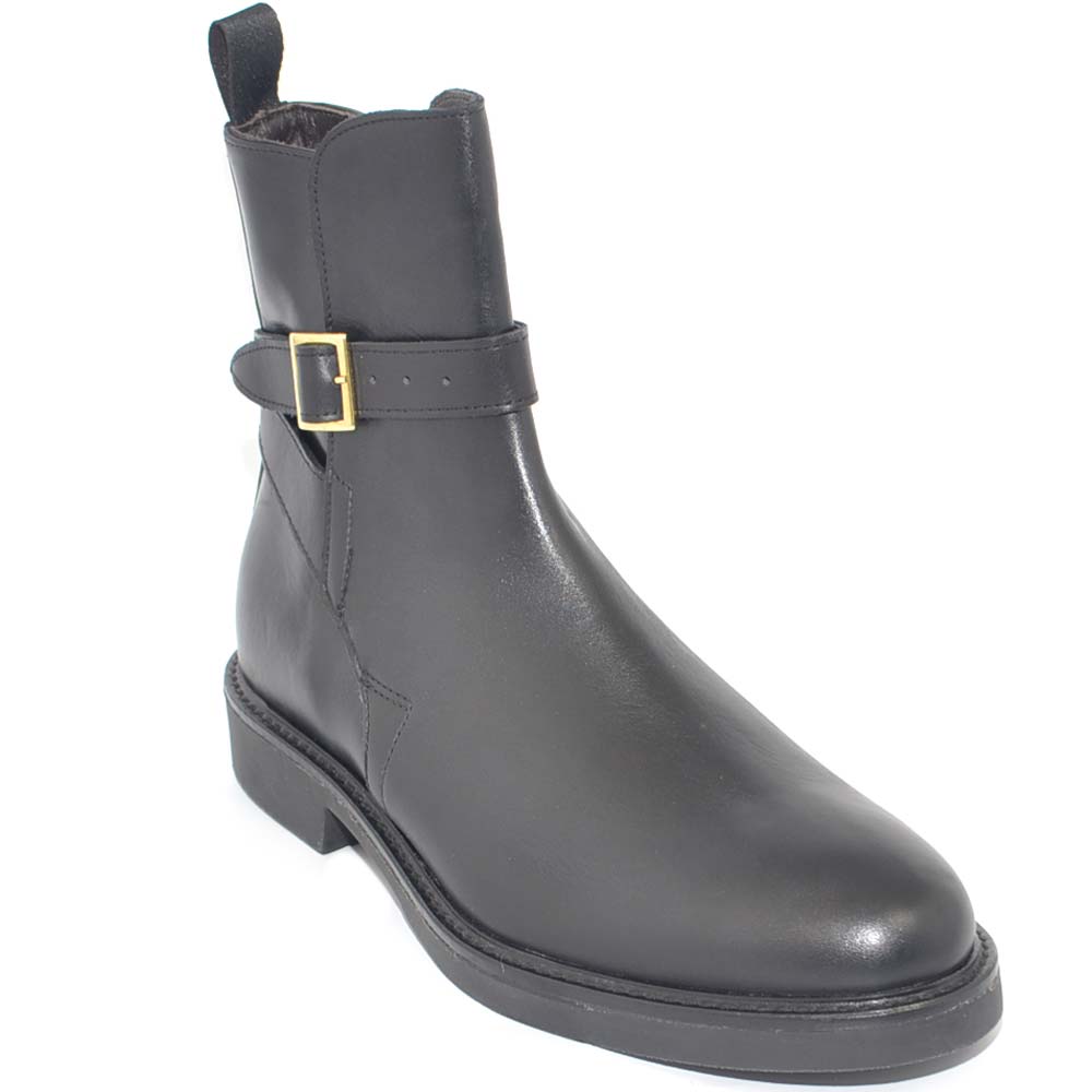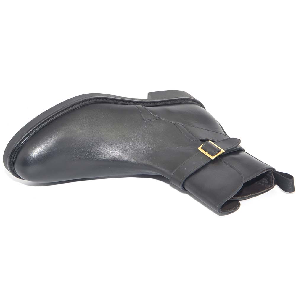 SCARPE UOMO BEATLES CHELSEA VERA PELLE NAPPA NERO SPAZZOLATO CON FIBBIA ORO FONDO GOMMA INVERNALE MADE IN ITALY