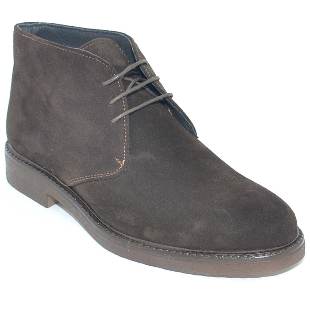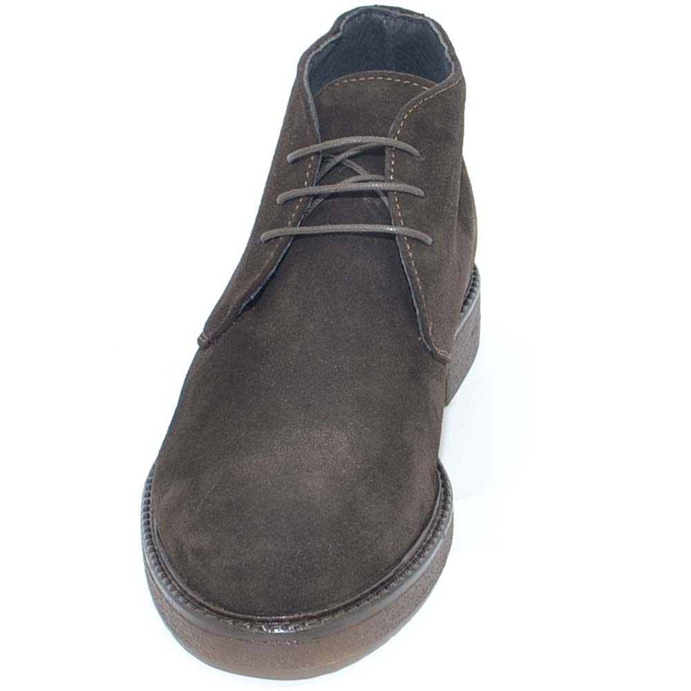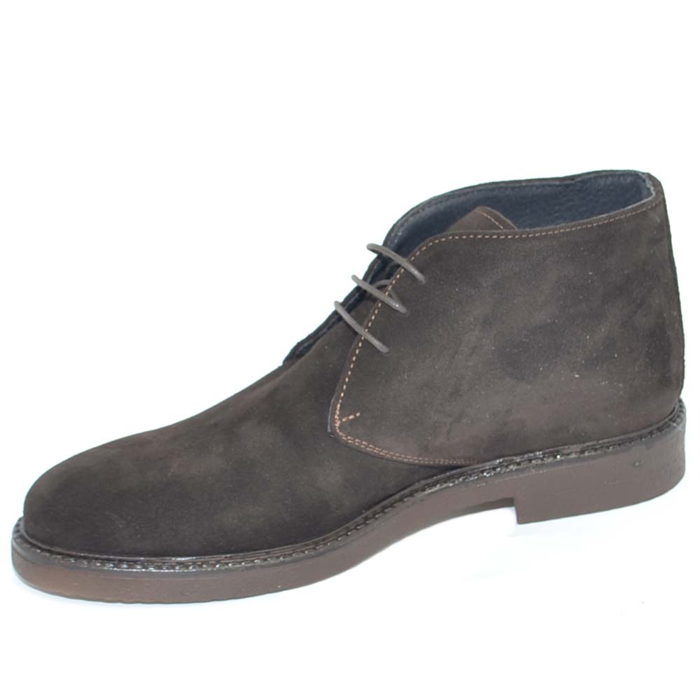 Polacchino uomo invernale in vera pelle camoscio marrone comfort con gomma crepla da professionista handmade in italy