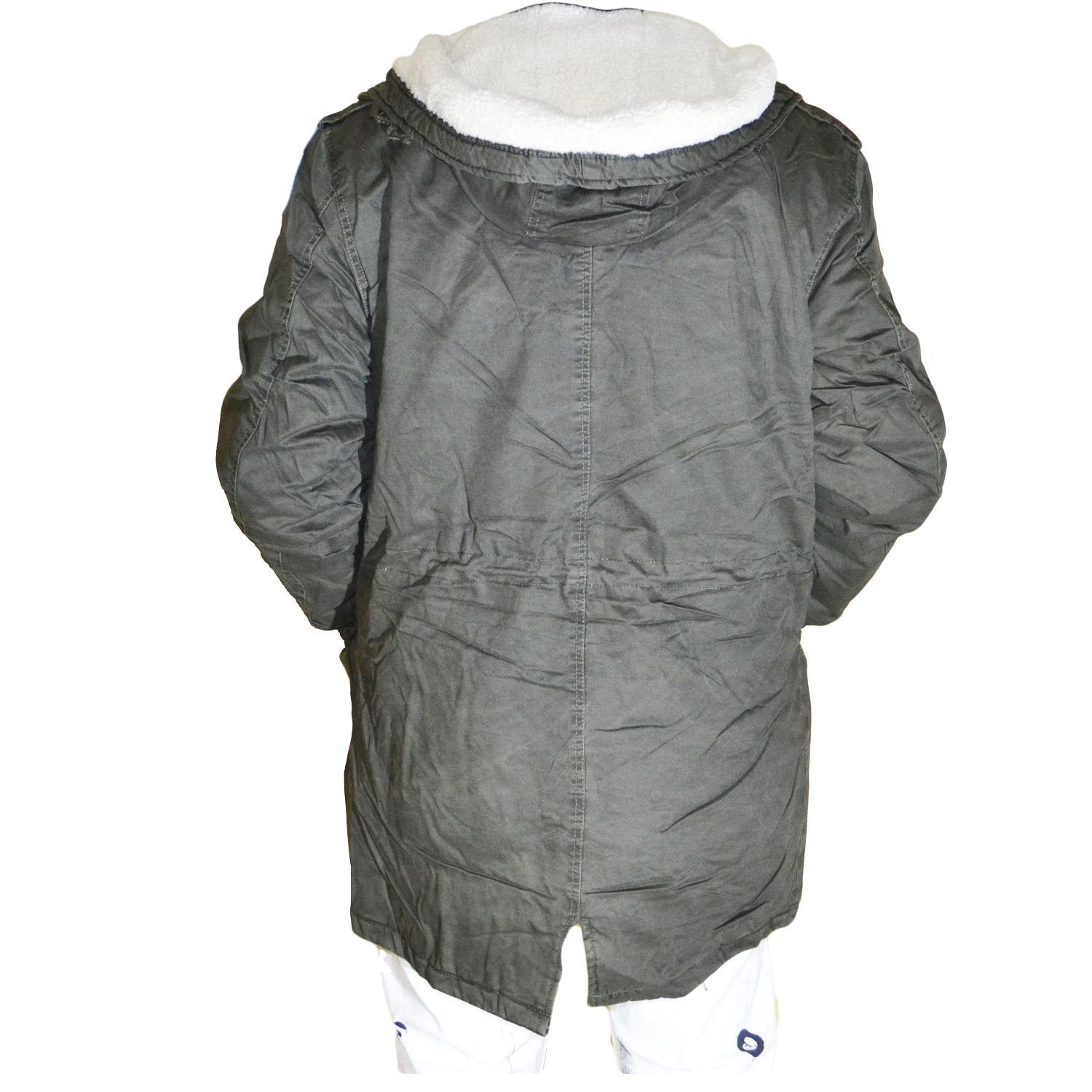 New Parka Uomo Verde con pelliccia bianca