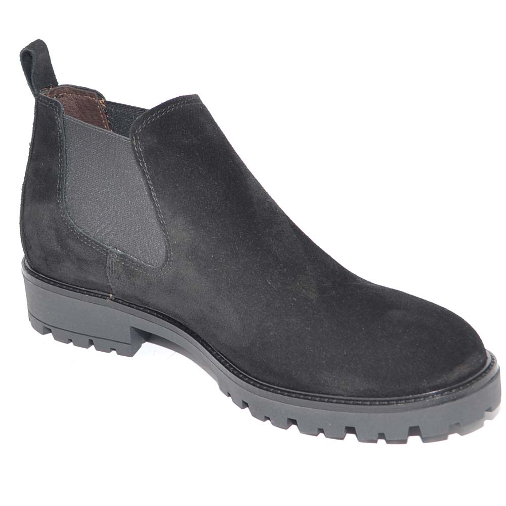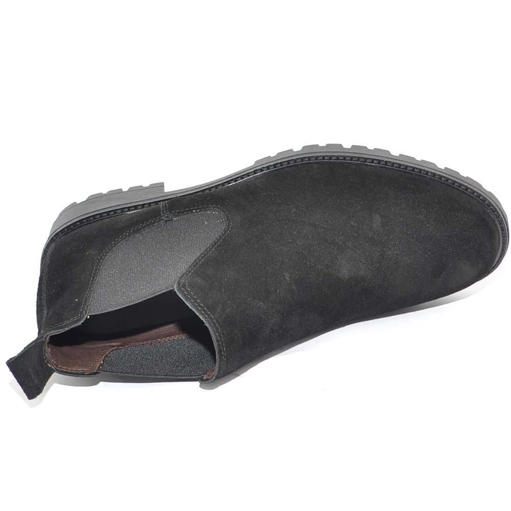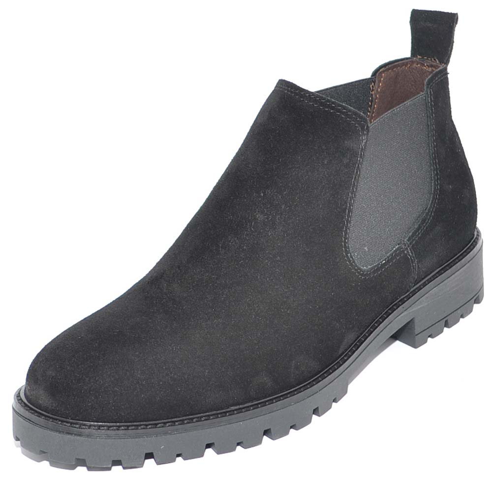 Beatles uomo modello Chelsea basso alla caviglia con elastico in camoscio spazzolato nero e fondo roccia made in Italy