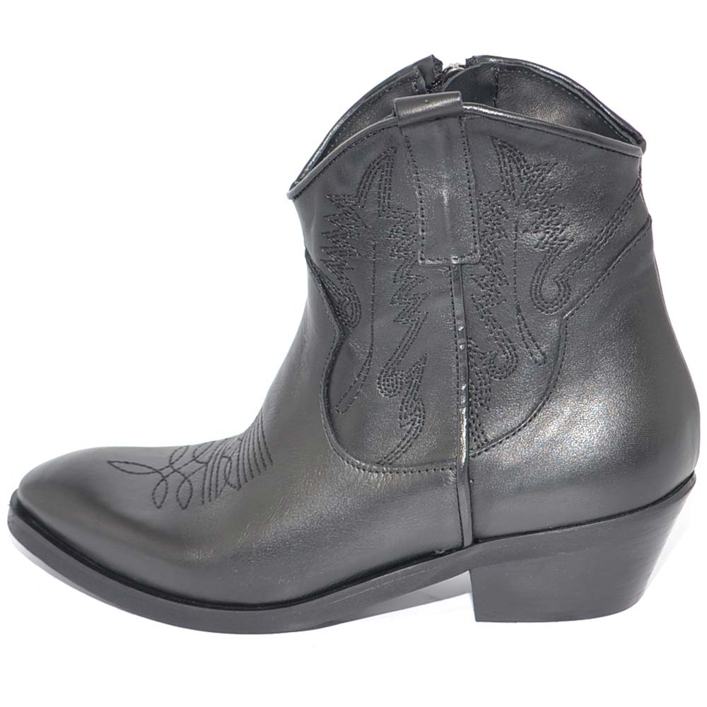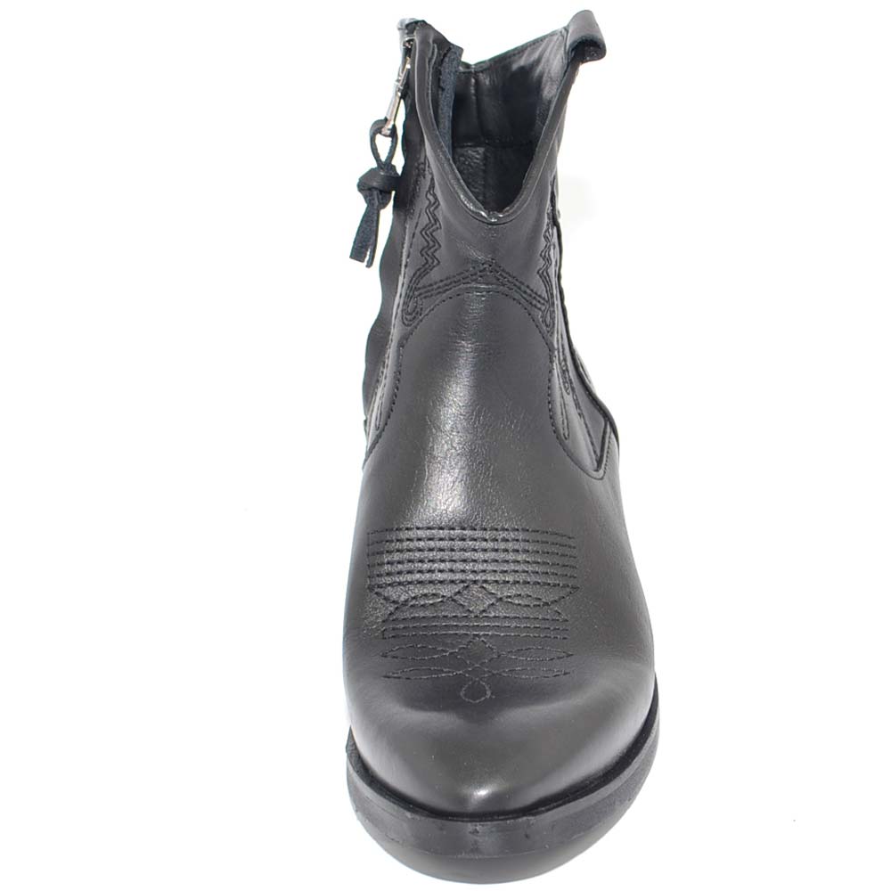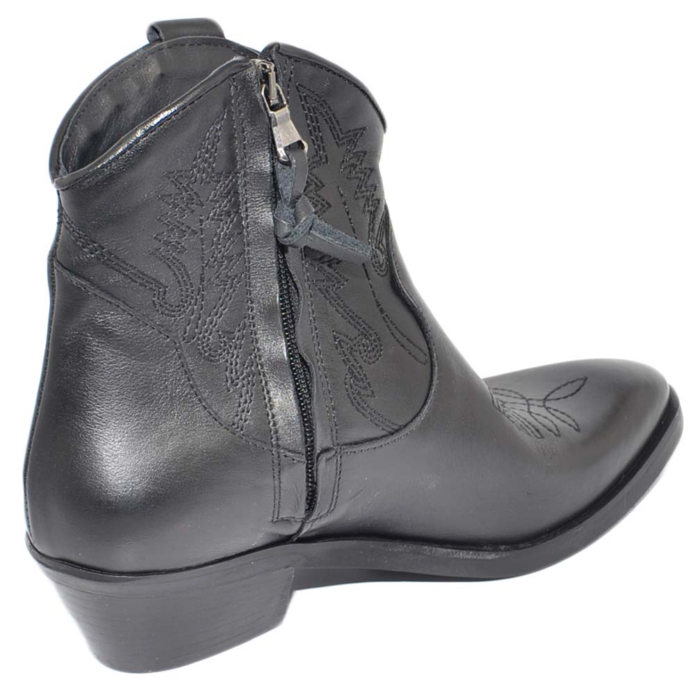 Camperos donna stivaletti texani neri interamente in vera pelle rifiniti a mano con zip e fondo gomma antiscivolo