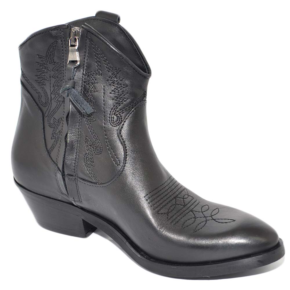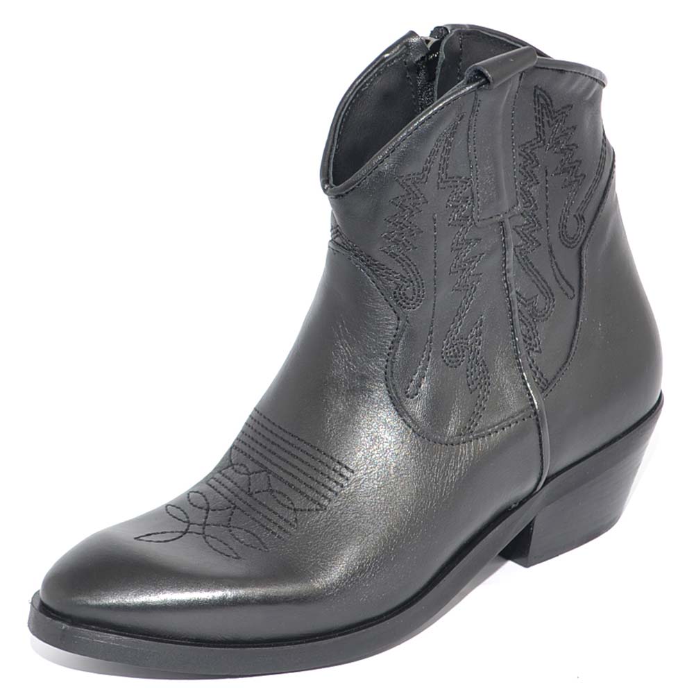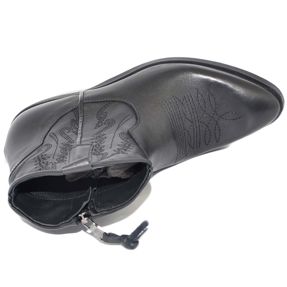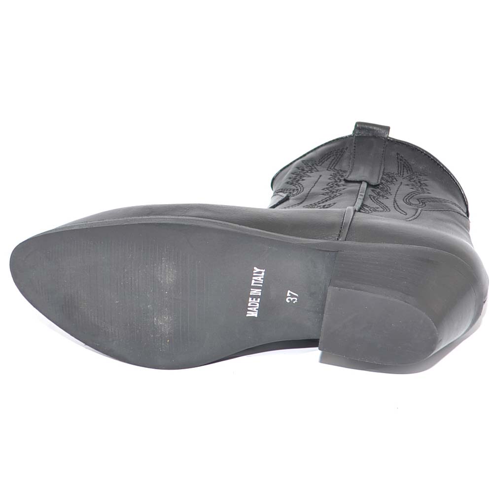 Camperos donna stivaletti texani neri interamente in vera pelle rifiniti a mano con zip e fondo gomma antiscivolo