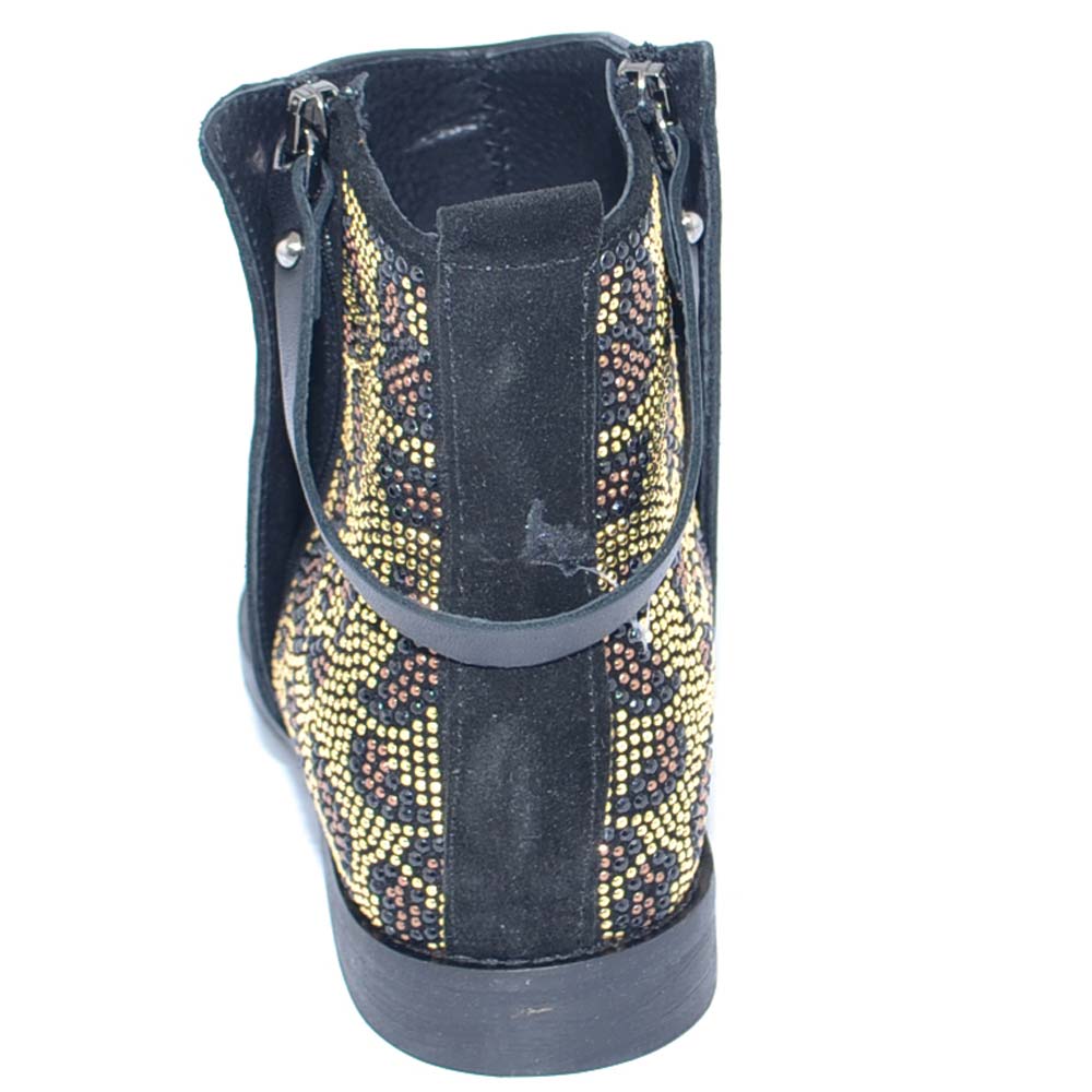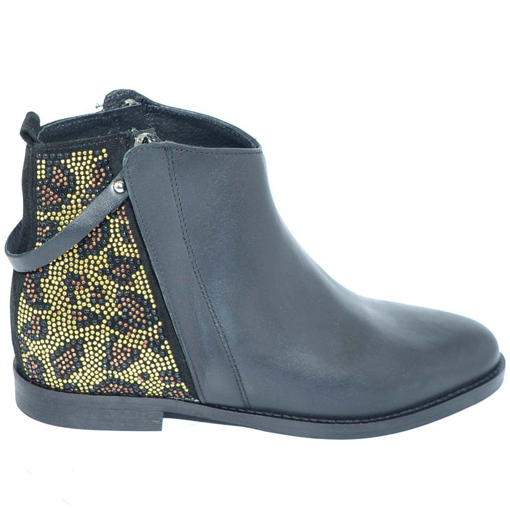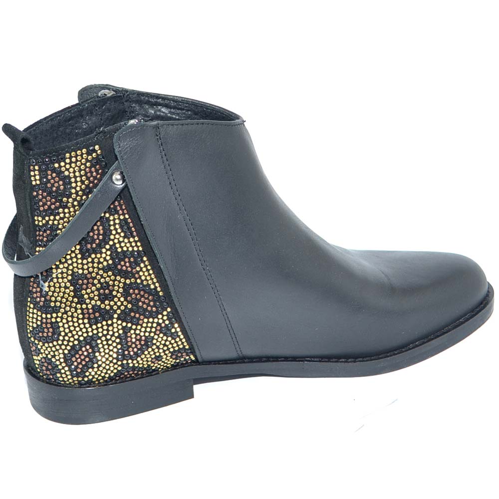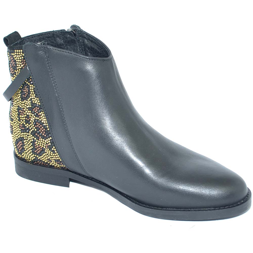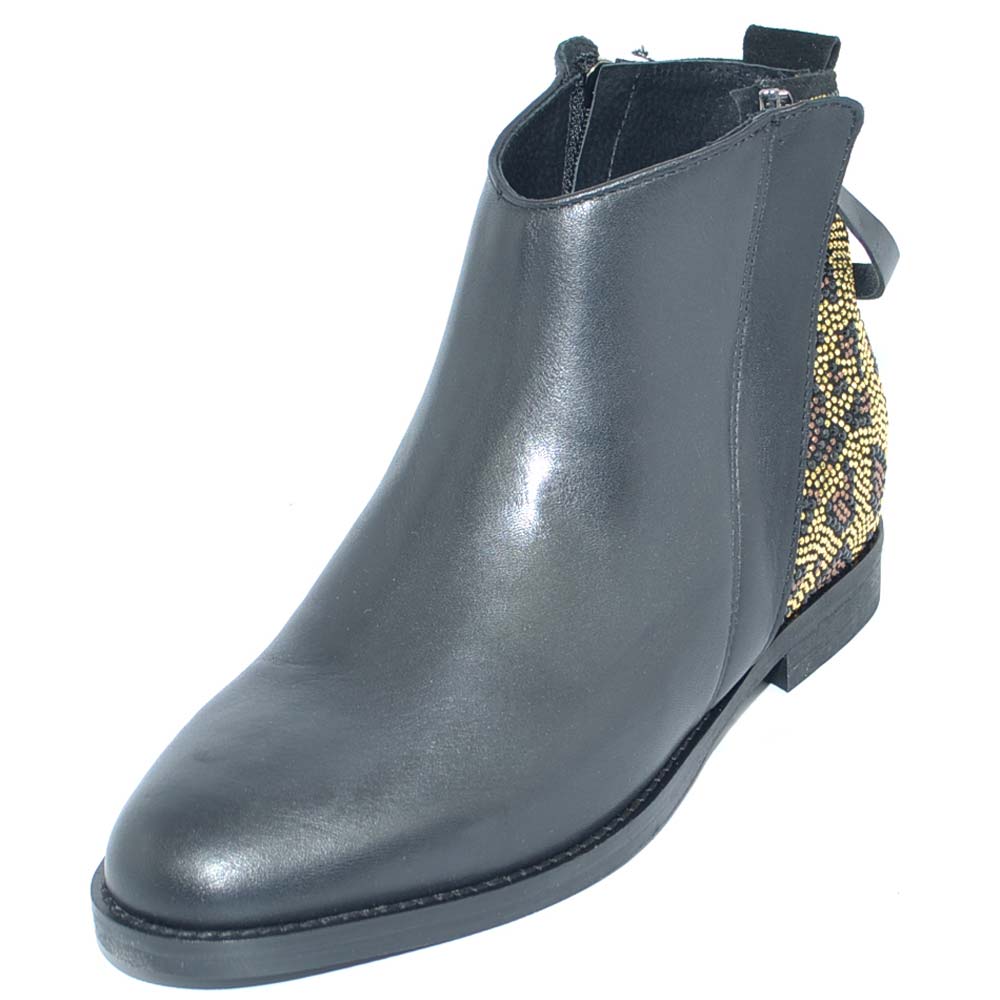Stivaletto donna vera pelle di nappa nera con zip laterale borchie piccole maculato zeppa para interna handmade in italy