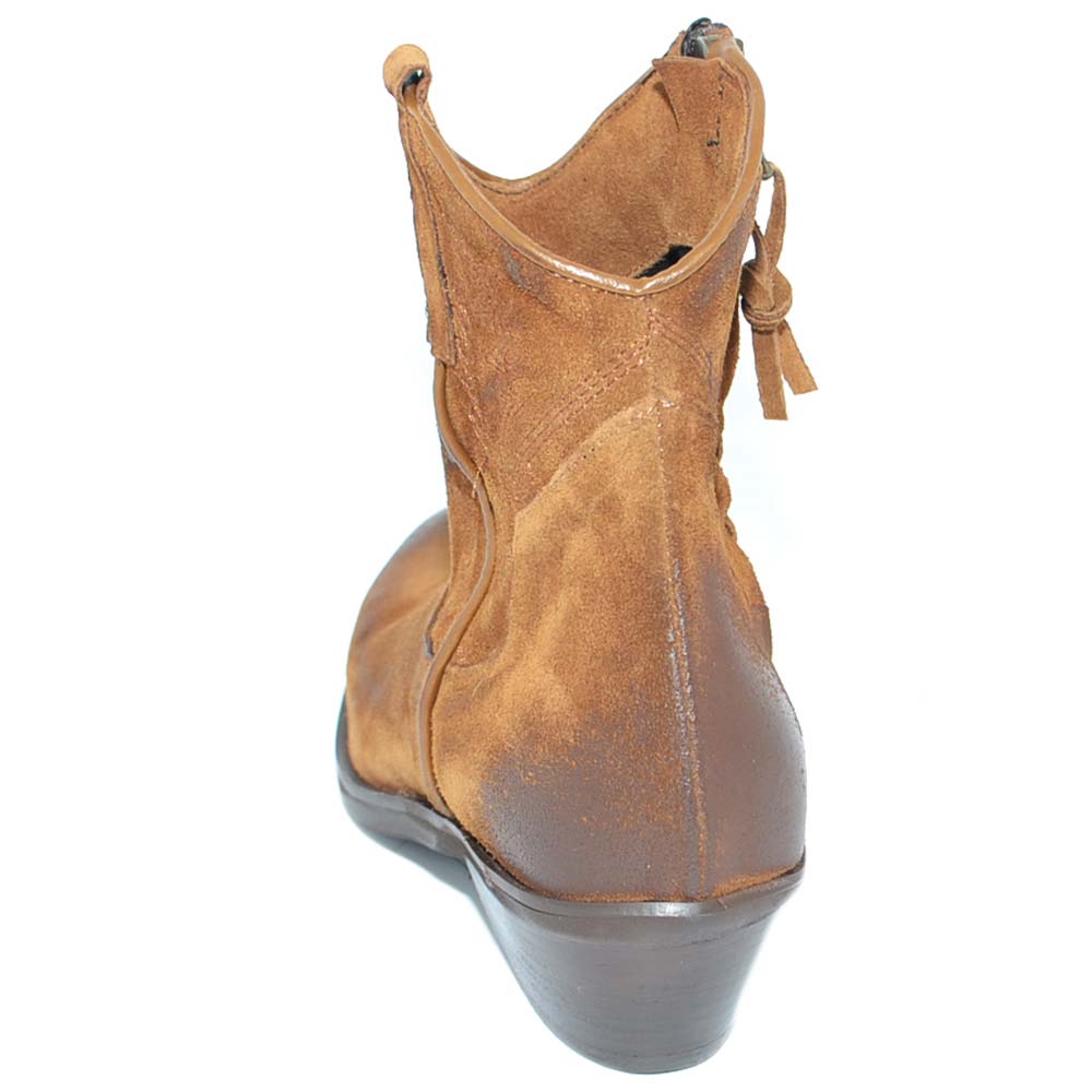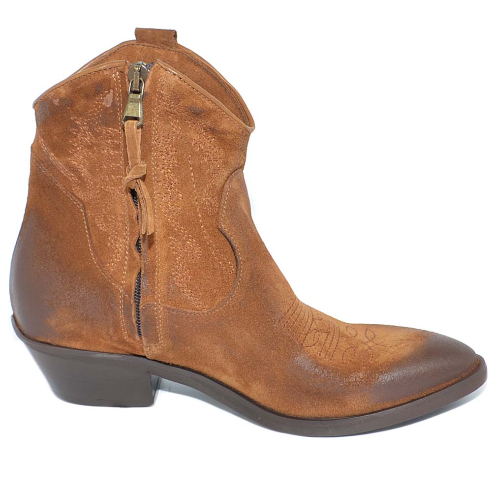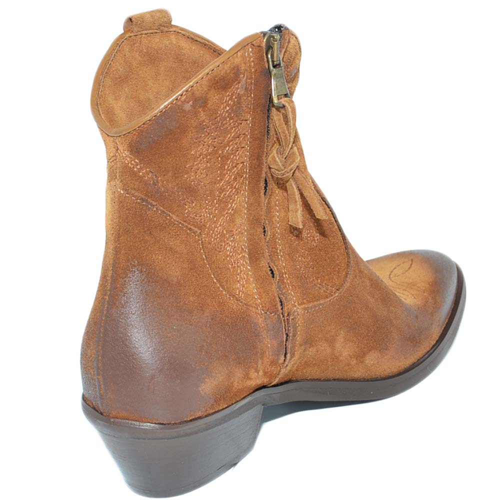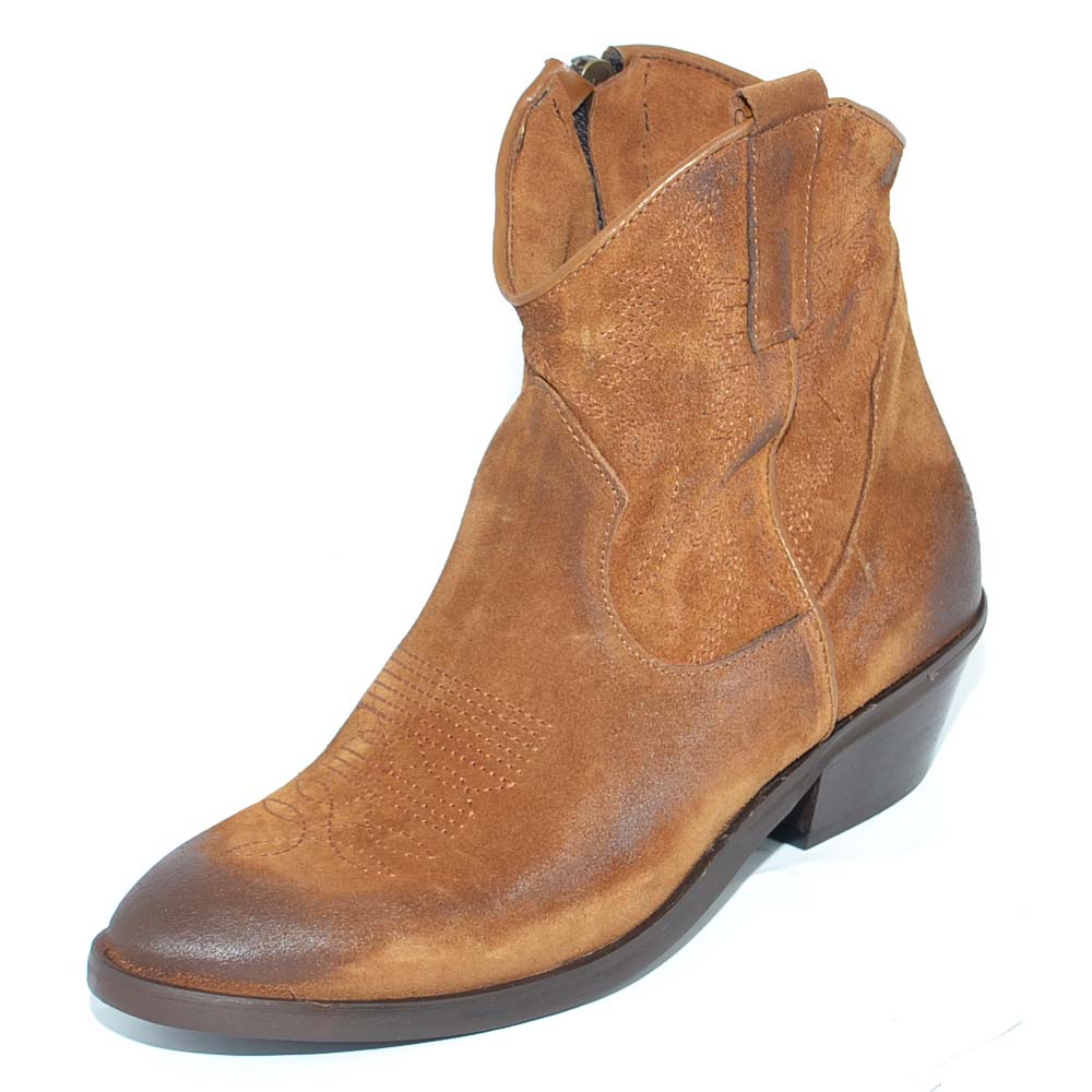 Camperos donna stivaletti texani ruggine cuoio interamente vera pelle rifiniti e spazzolati a mano fondo gomma zip