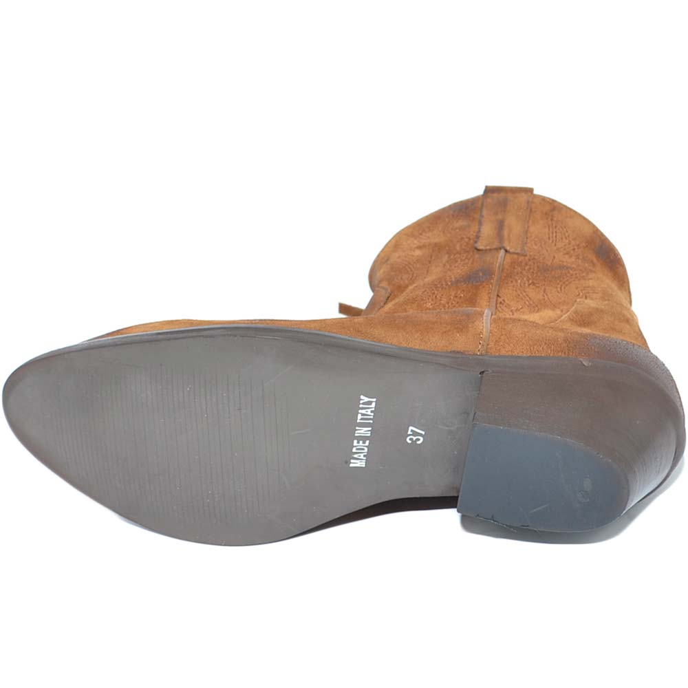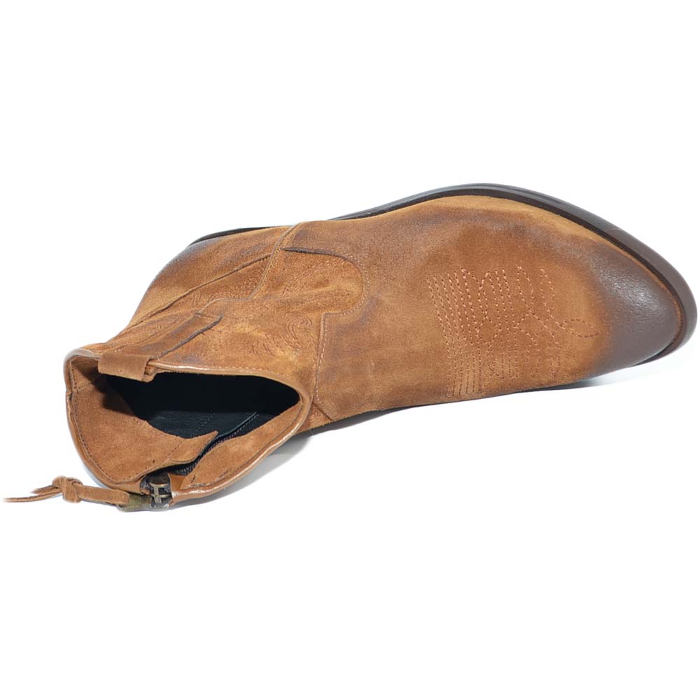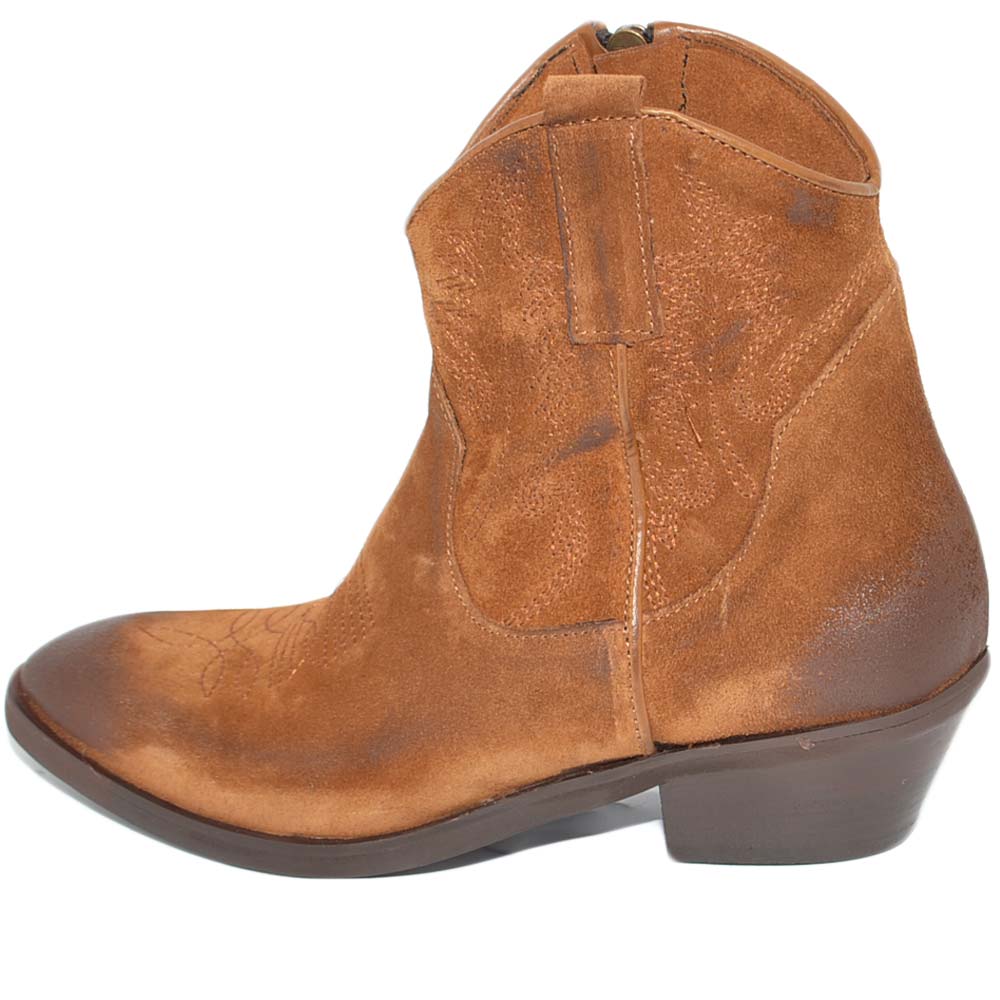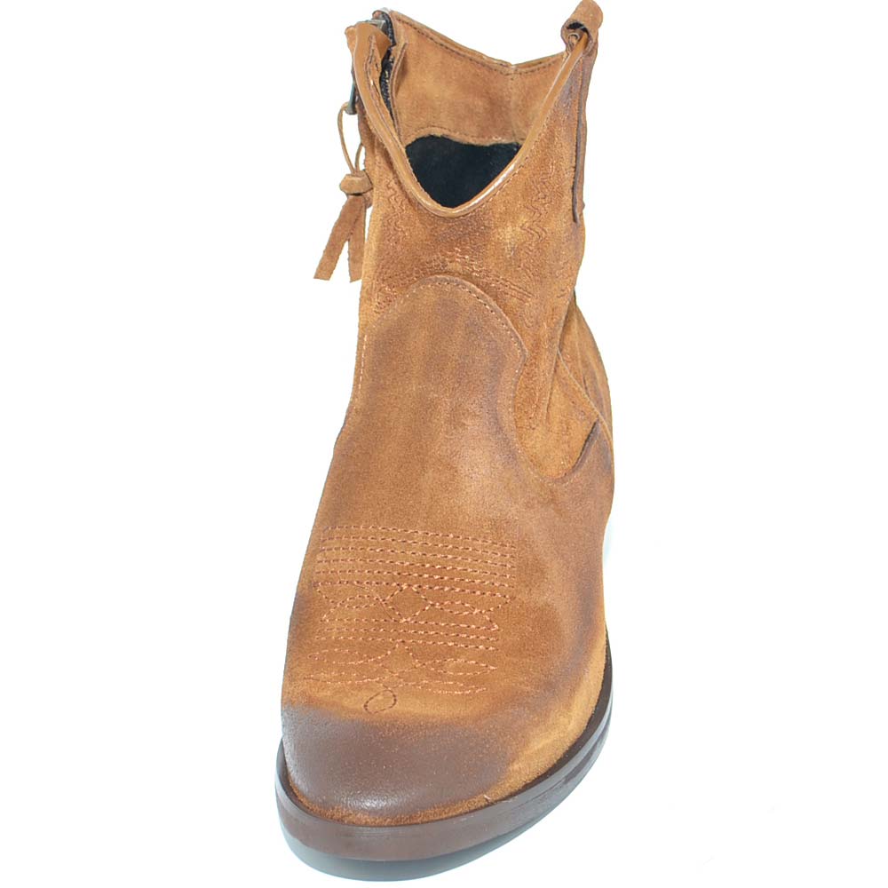 Camperos donna stivaletti texani ruggine cuoio interamente vera pelle rifiniti e spazzolati a mano fondo gomma zip