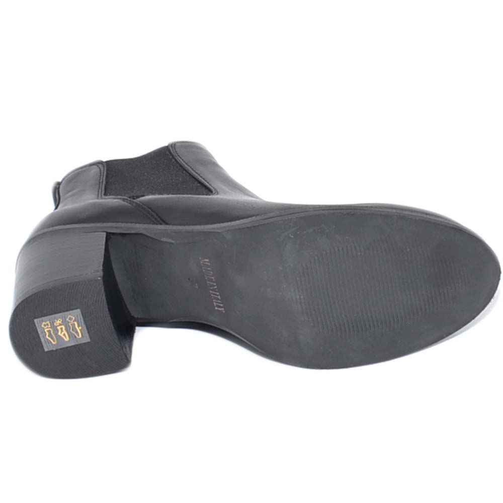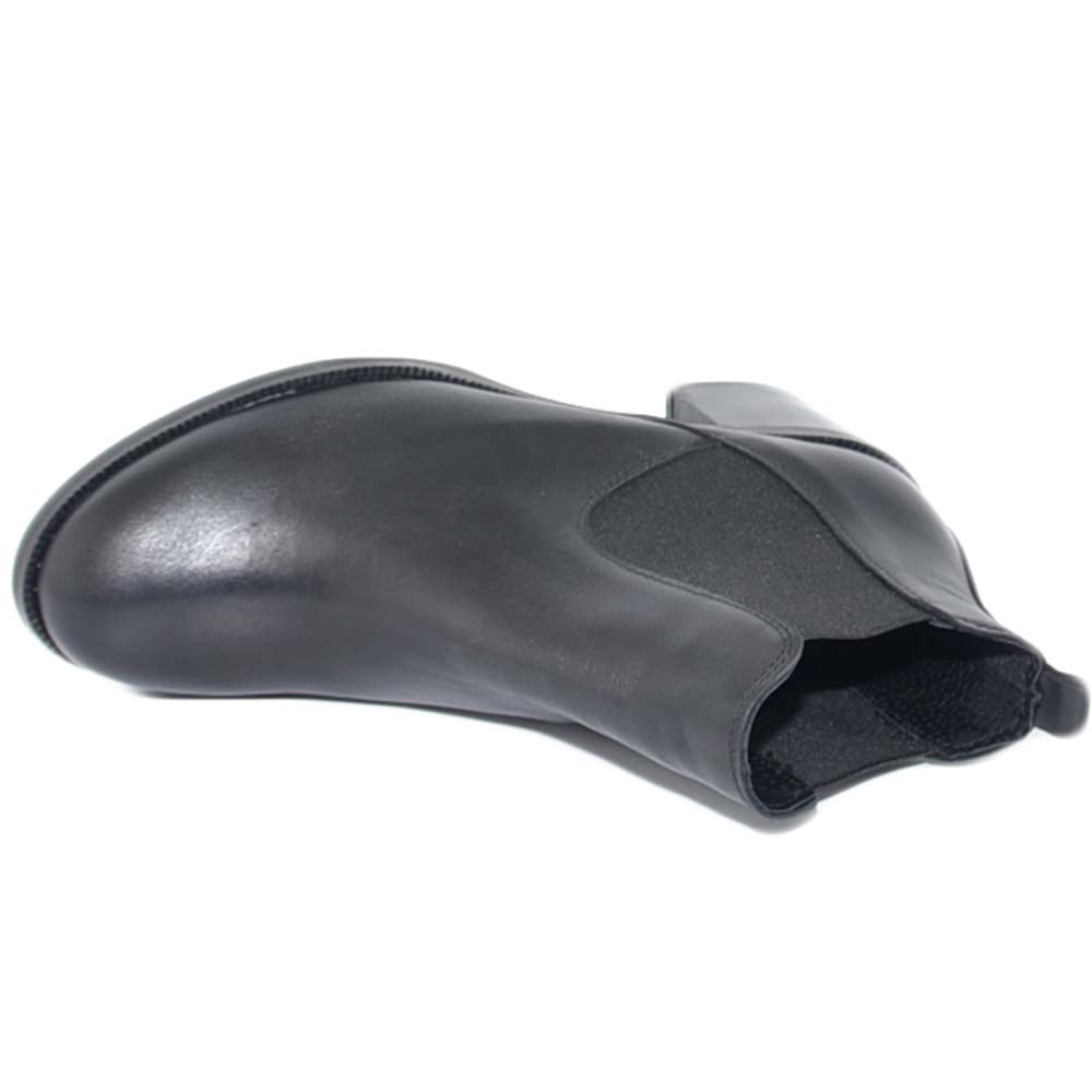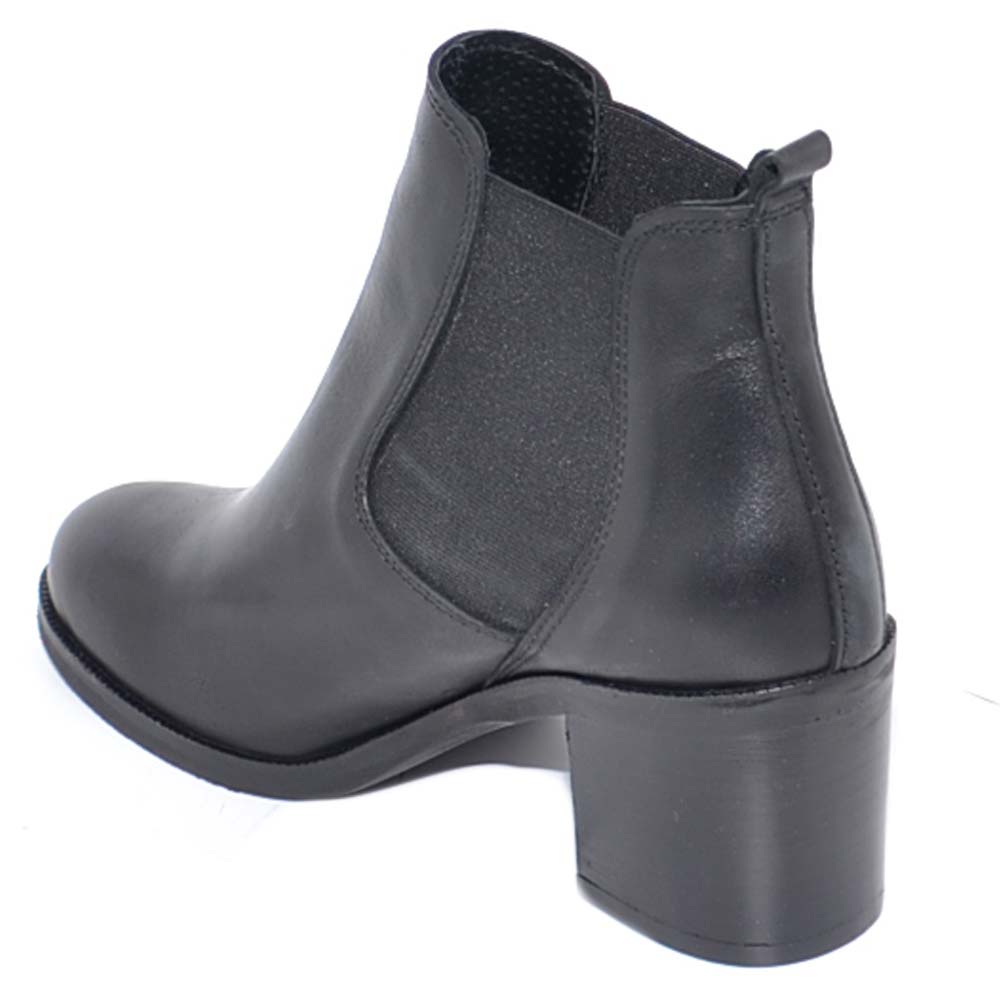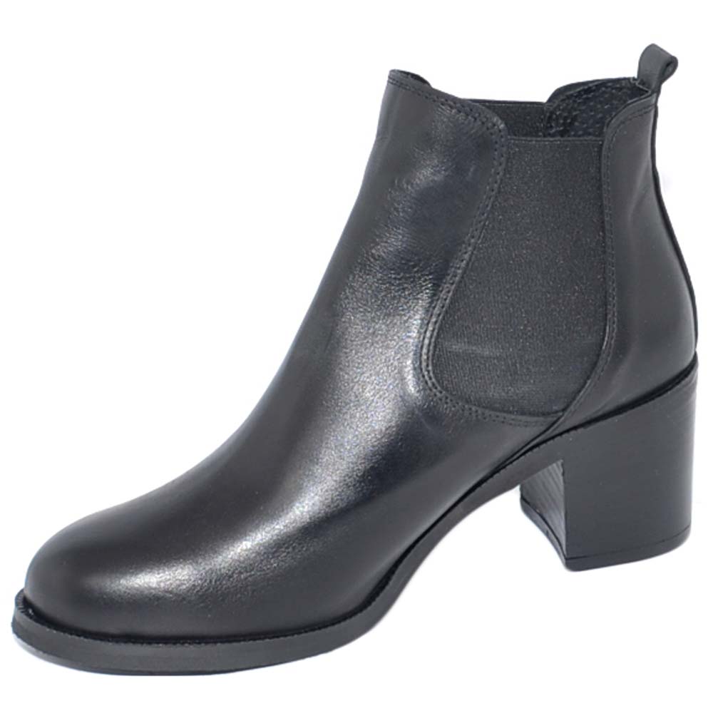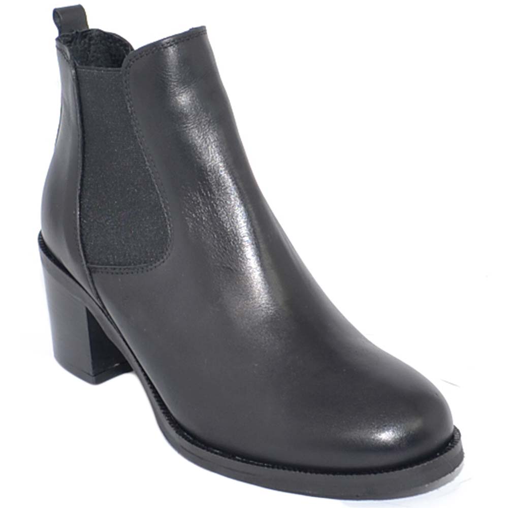 Tronchetto donna in vera pelle nero con elastico a punta tonda e tacco basso comodo Beatles fatte a mano