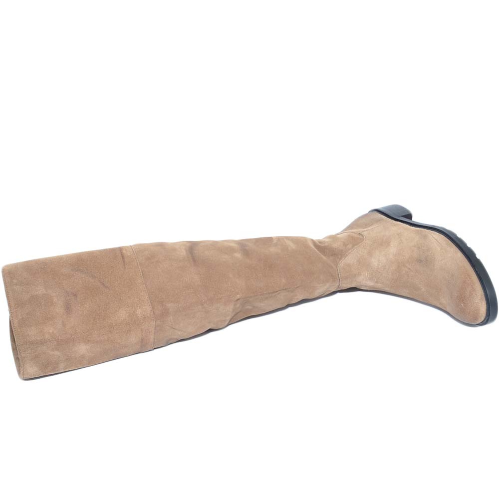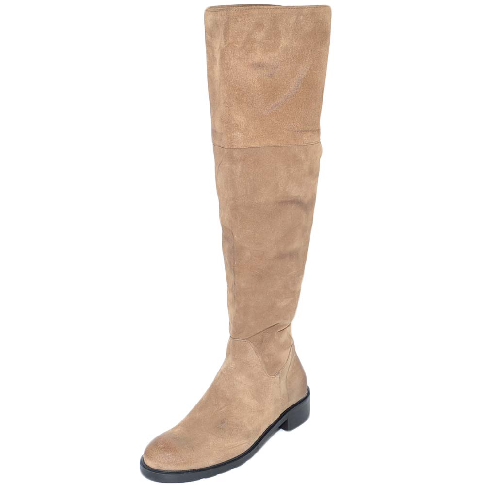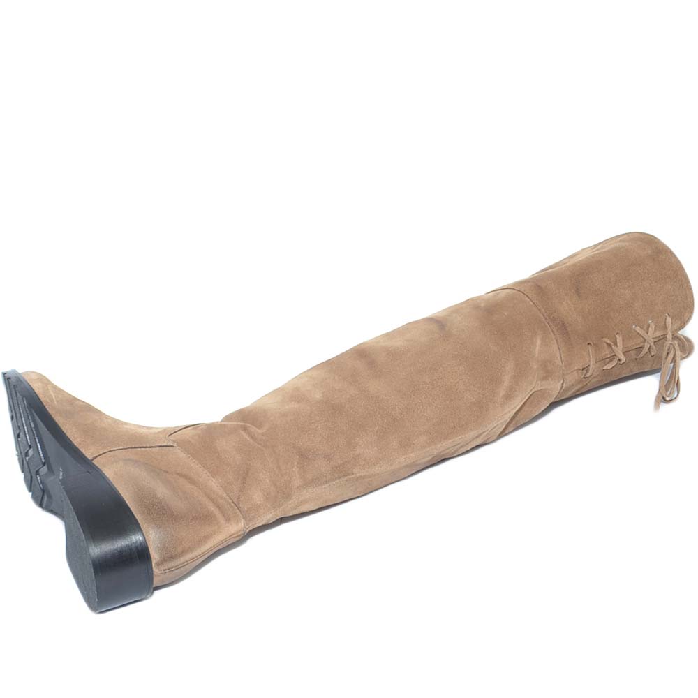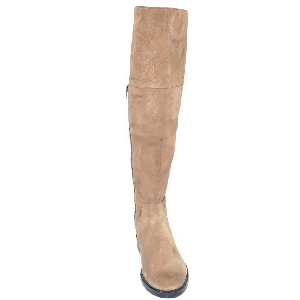 Stivale alto sopra il ginocchio donna taupe vera pelle scamosciata laccetti regolabili tacco basso comodi made in Italy