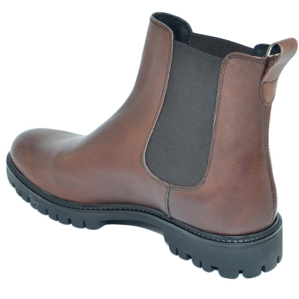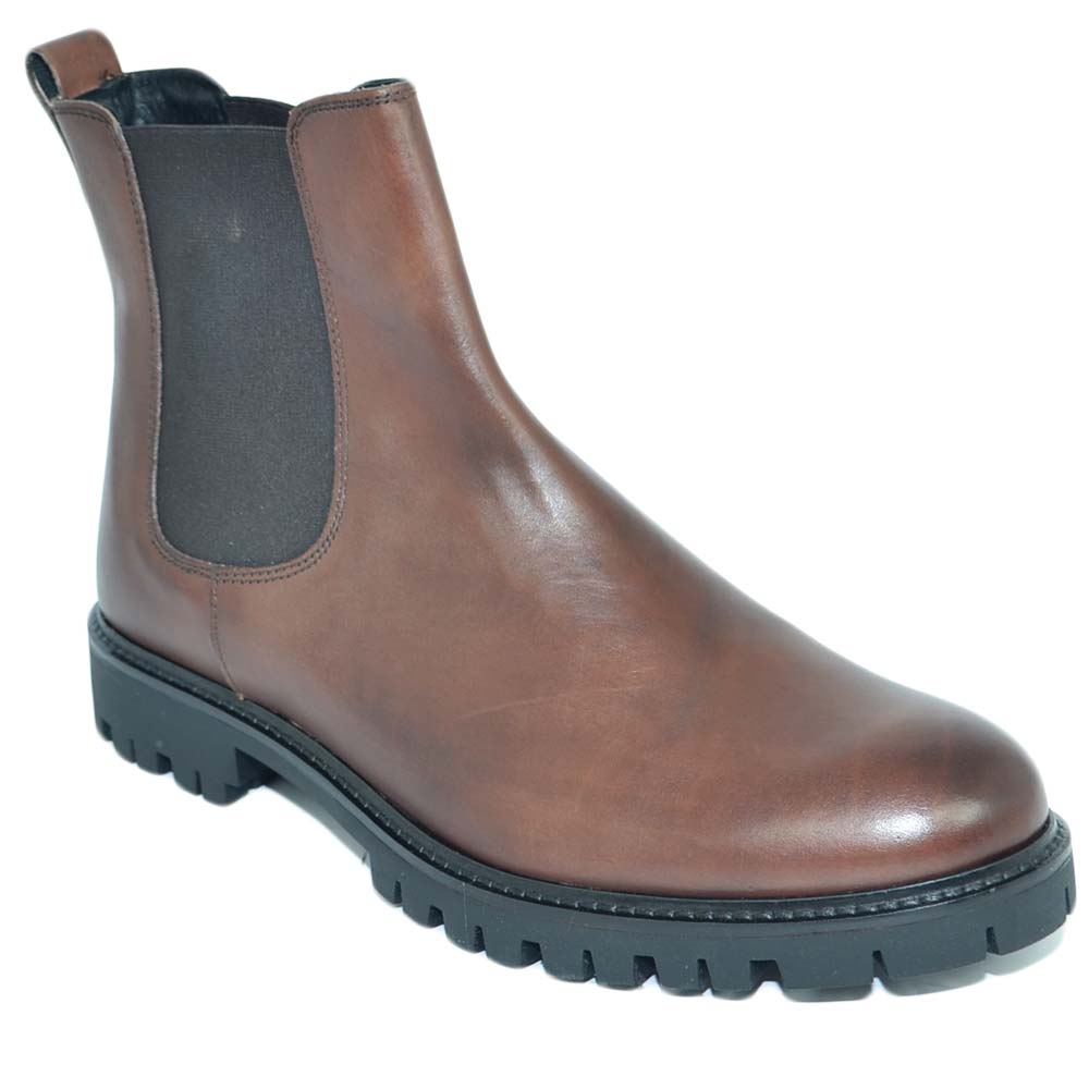 Beatles uomo modello chelsea in vera pelle marrone cognac spazzolato liscio fondo roccia made in italy handmade
