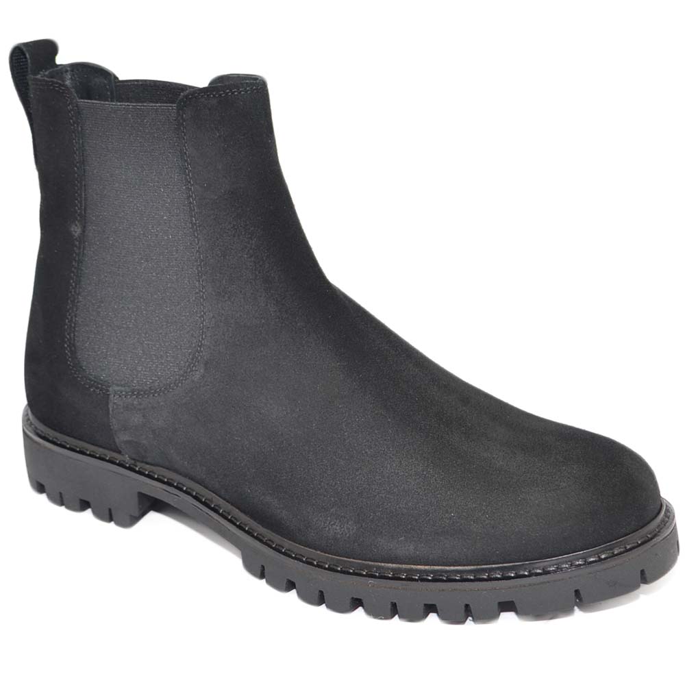 Beatles uomo modello chelsea in vera pelle nera scamosciata spazzolato liscio fondo roccia made in italy handmade
