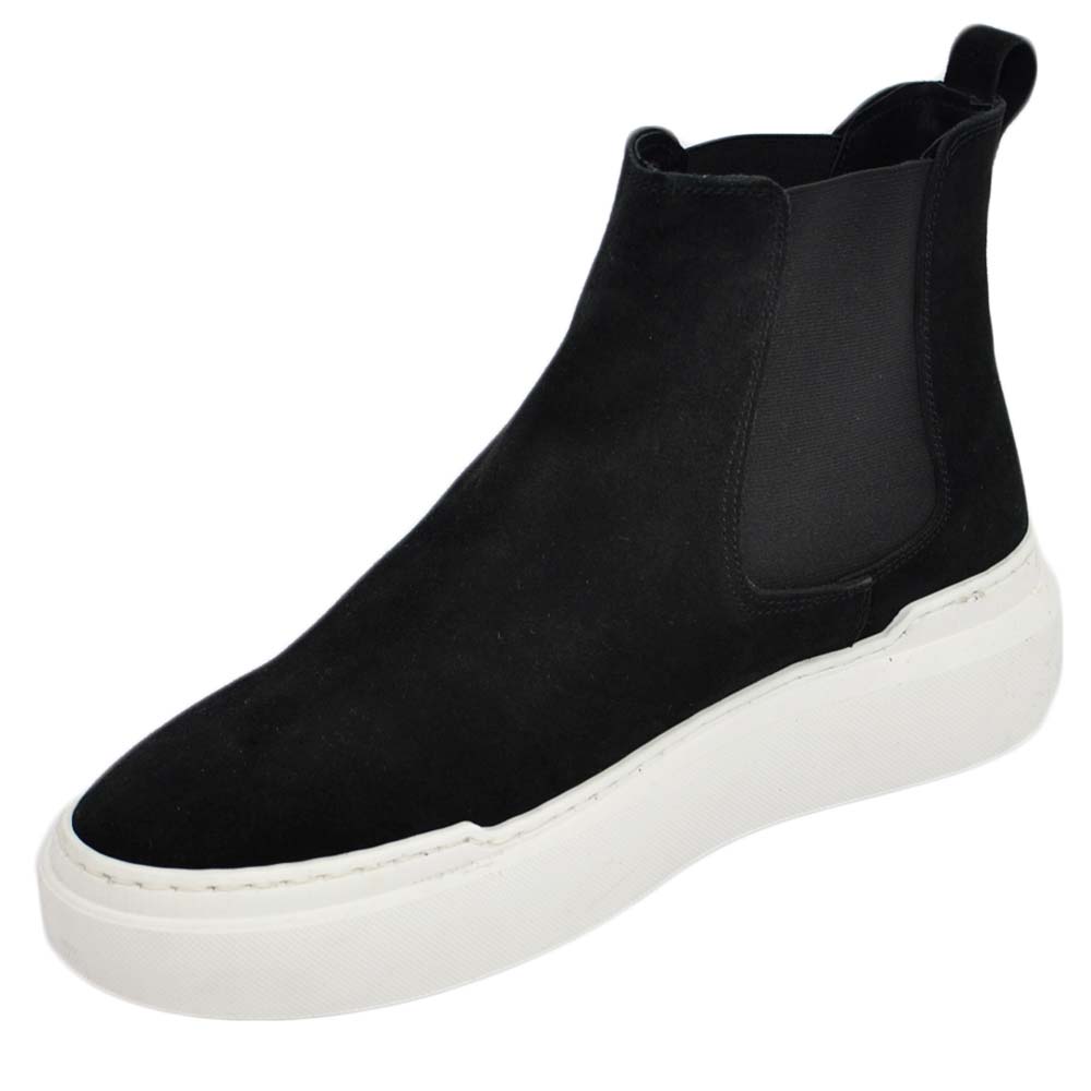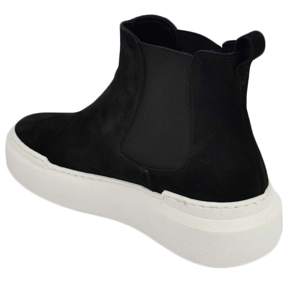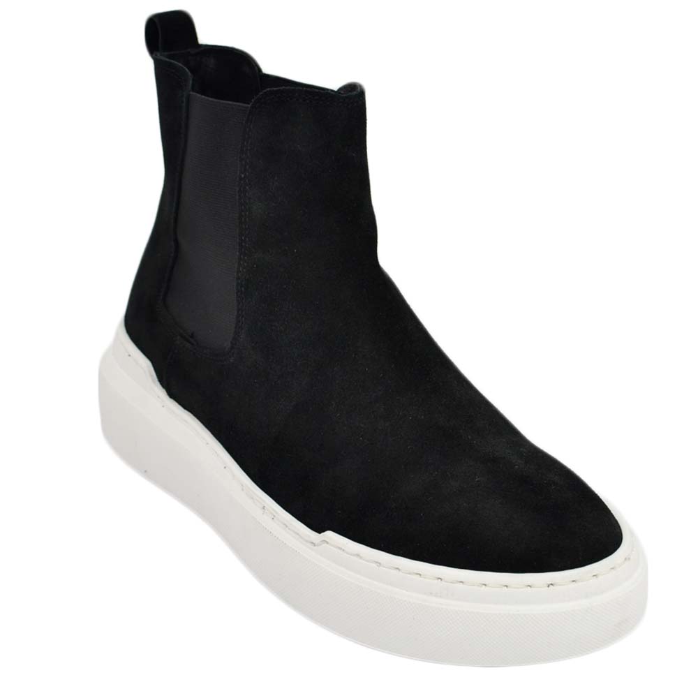 Beatles uomo stivaletto con elastico in vera pelle camoscio nera con gomma alta bianca sportiva made in italy handmade