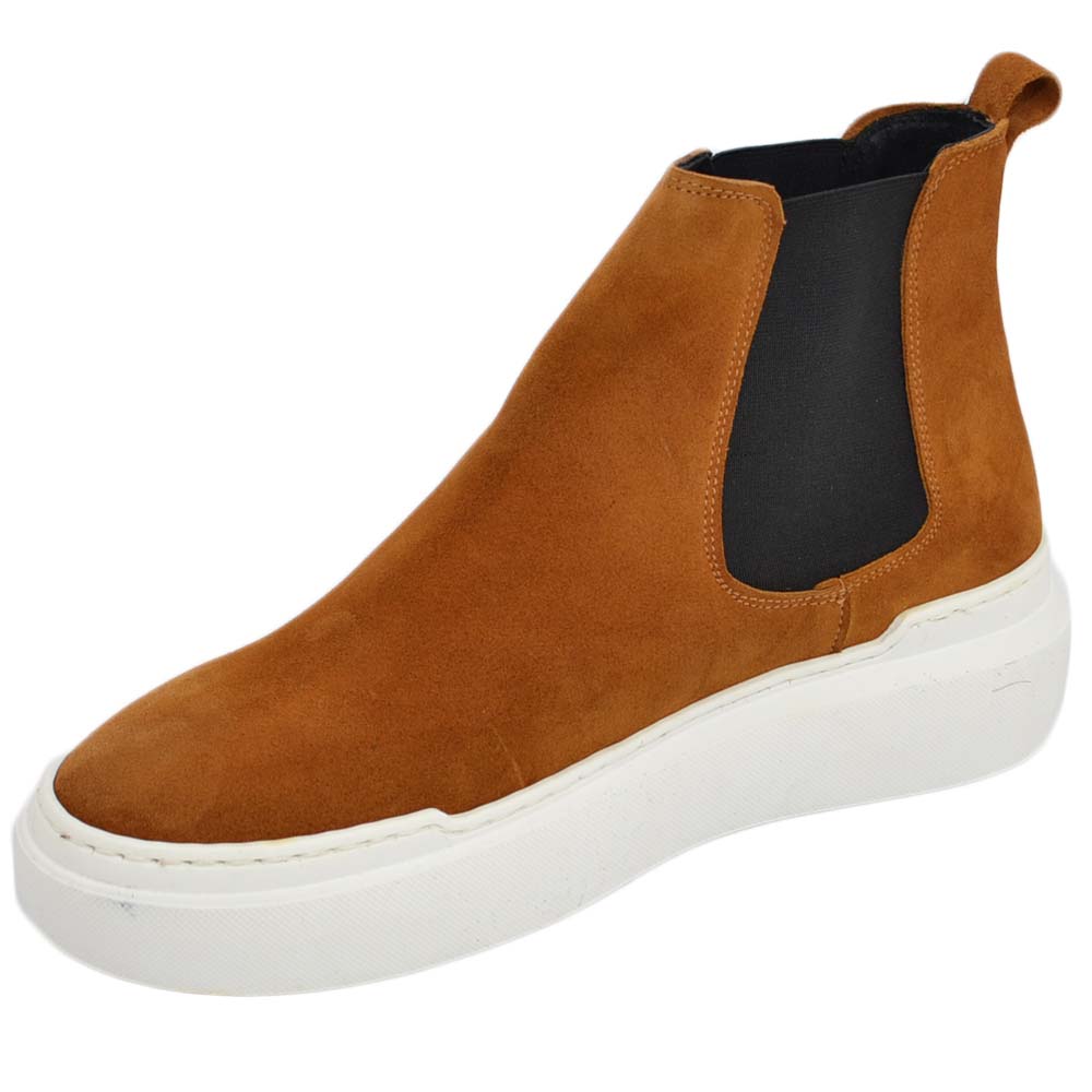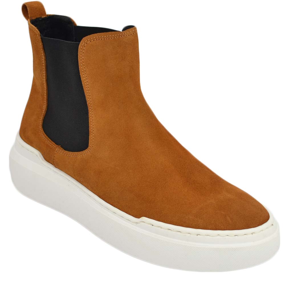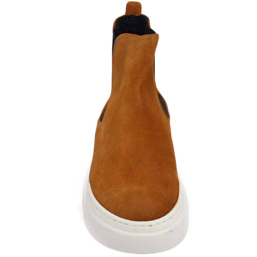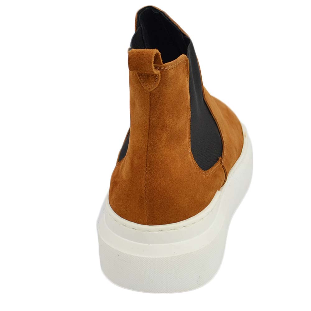 Beatles uomo stivaletto con elastico in vera pelle camoscio ruggine gomma alta bianca sportiva made in italy handmade