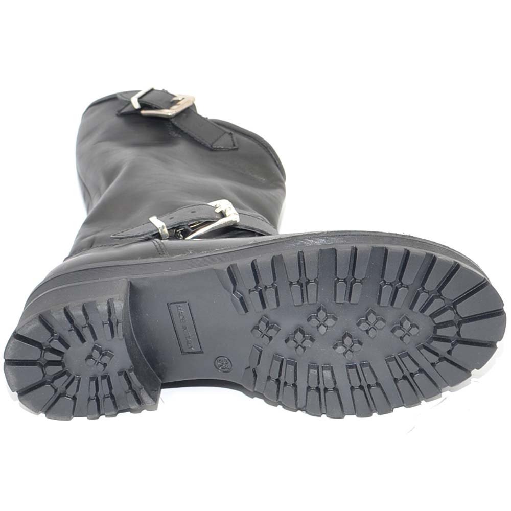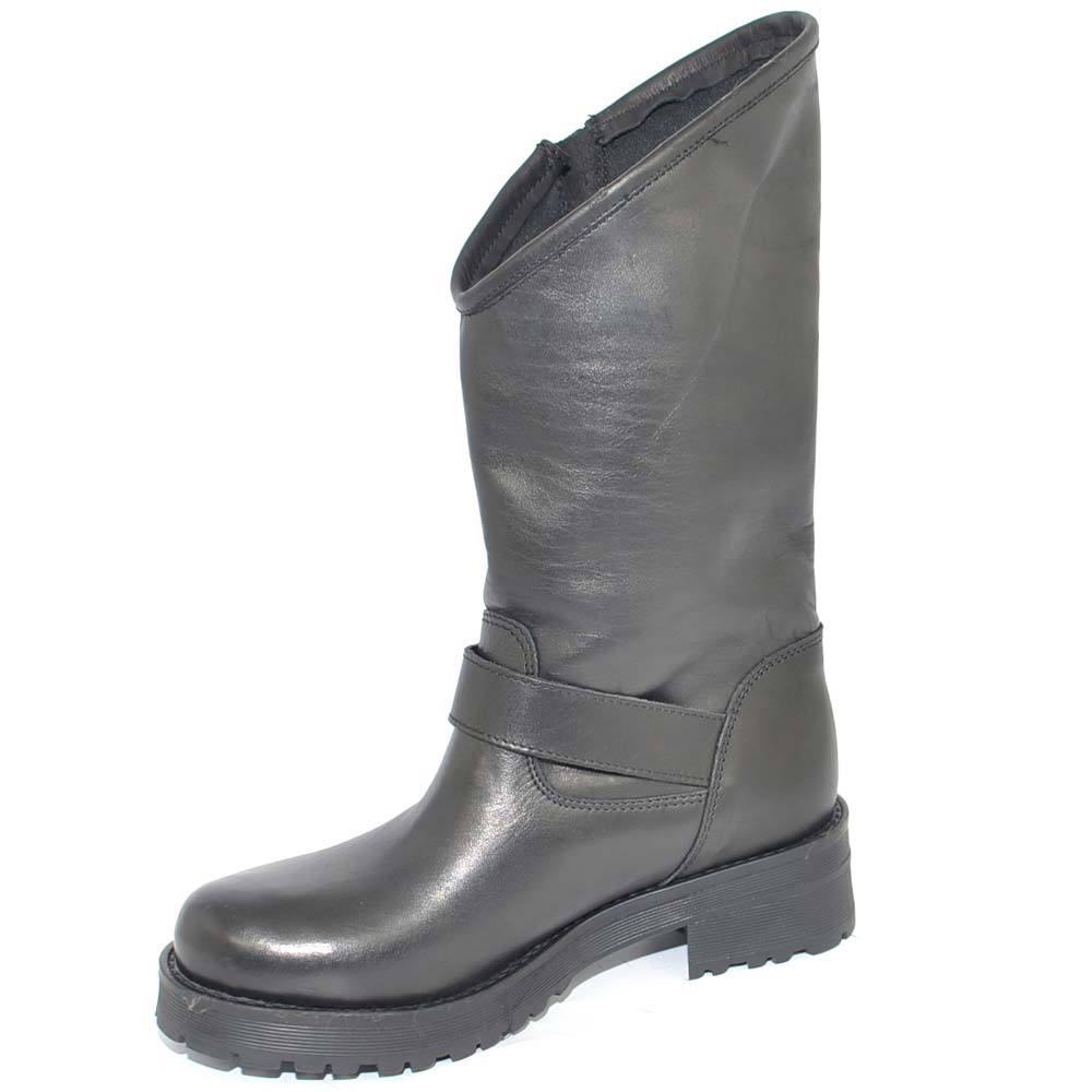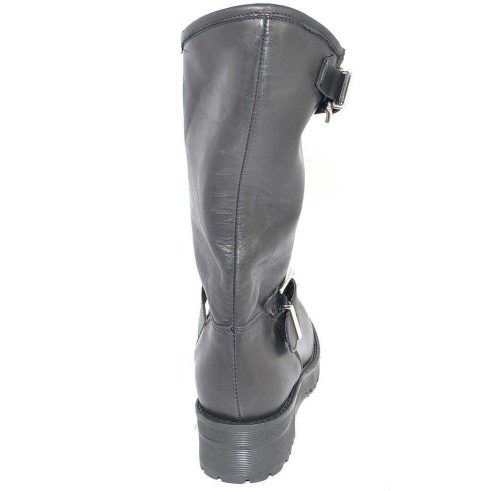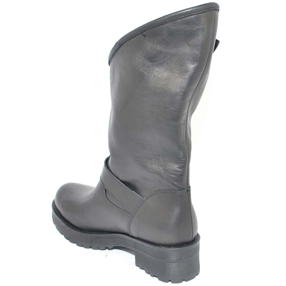 Stivale donna vera pelle biker morbido collo asimmetrico polpaccio con fibbie fondo gomma zigrinato roccia linea basic