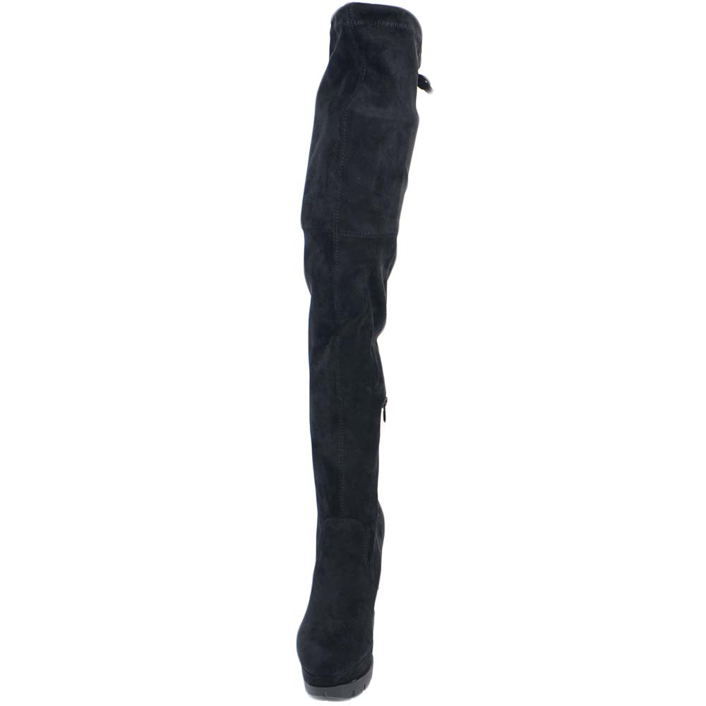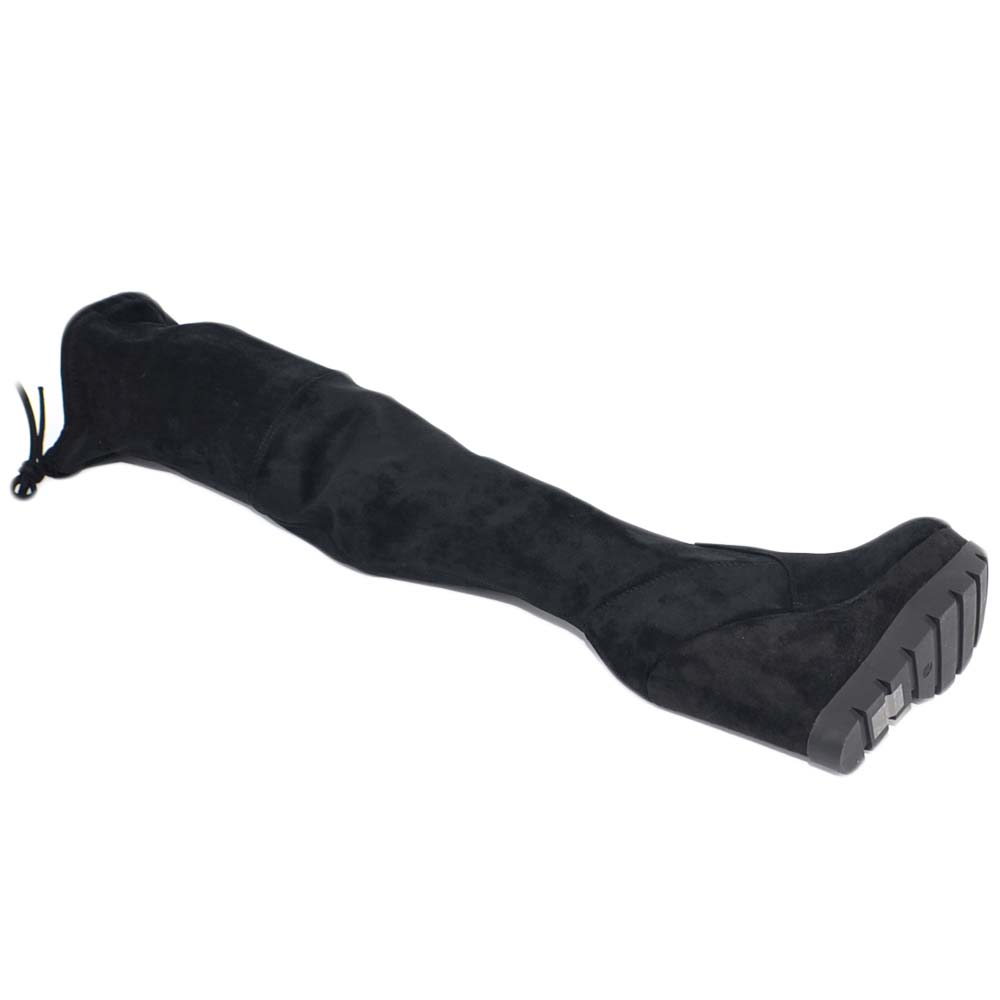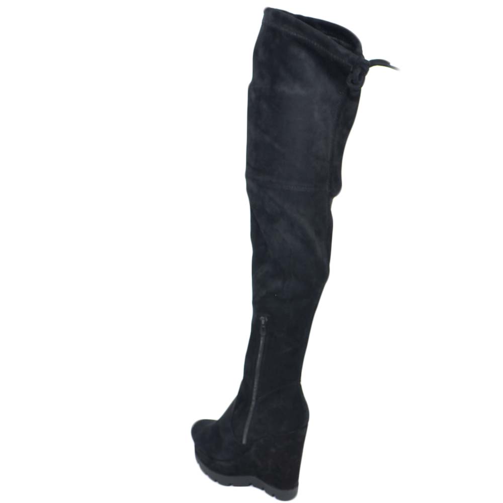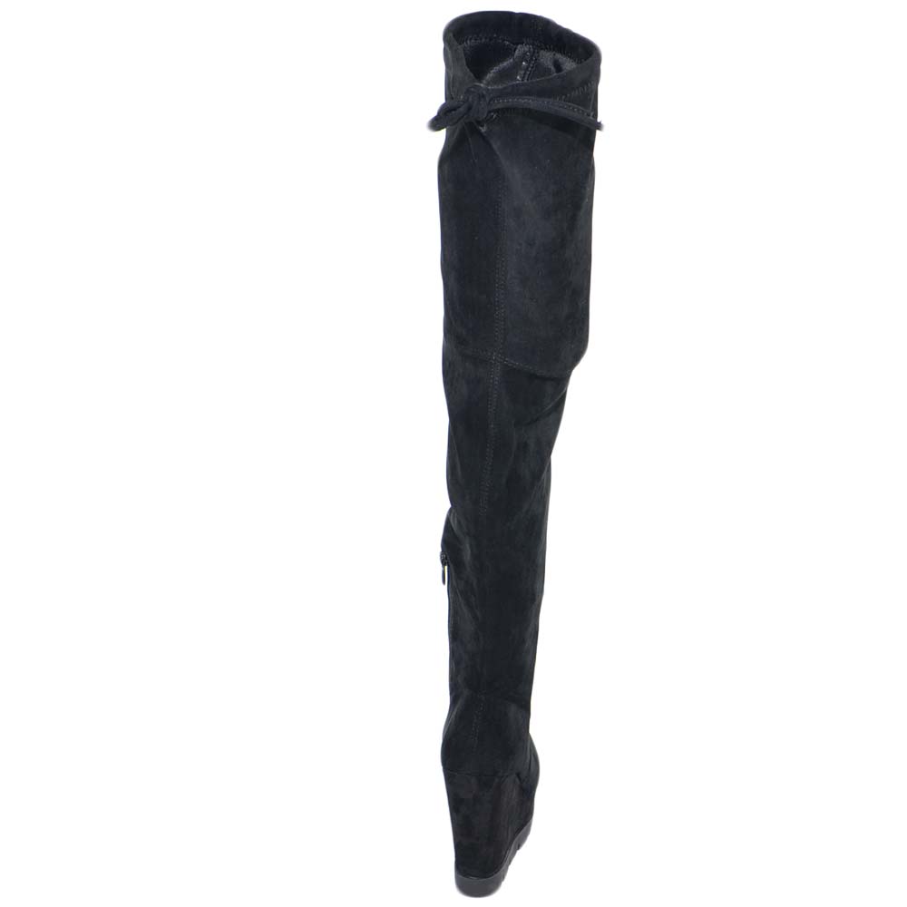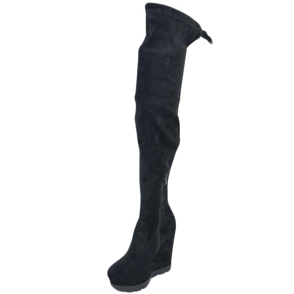 STIVALE ALTO DONNA NERO IN CAMOSCIO CON ZEPPA ALTA COMODO ADERENTE ALTEZZA SOPRA IL GINOCCHIO PUNTA TONDA MODA