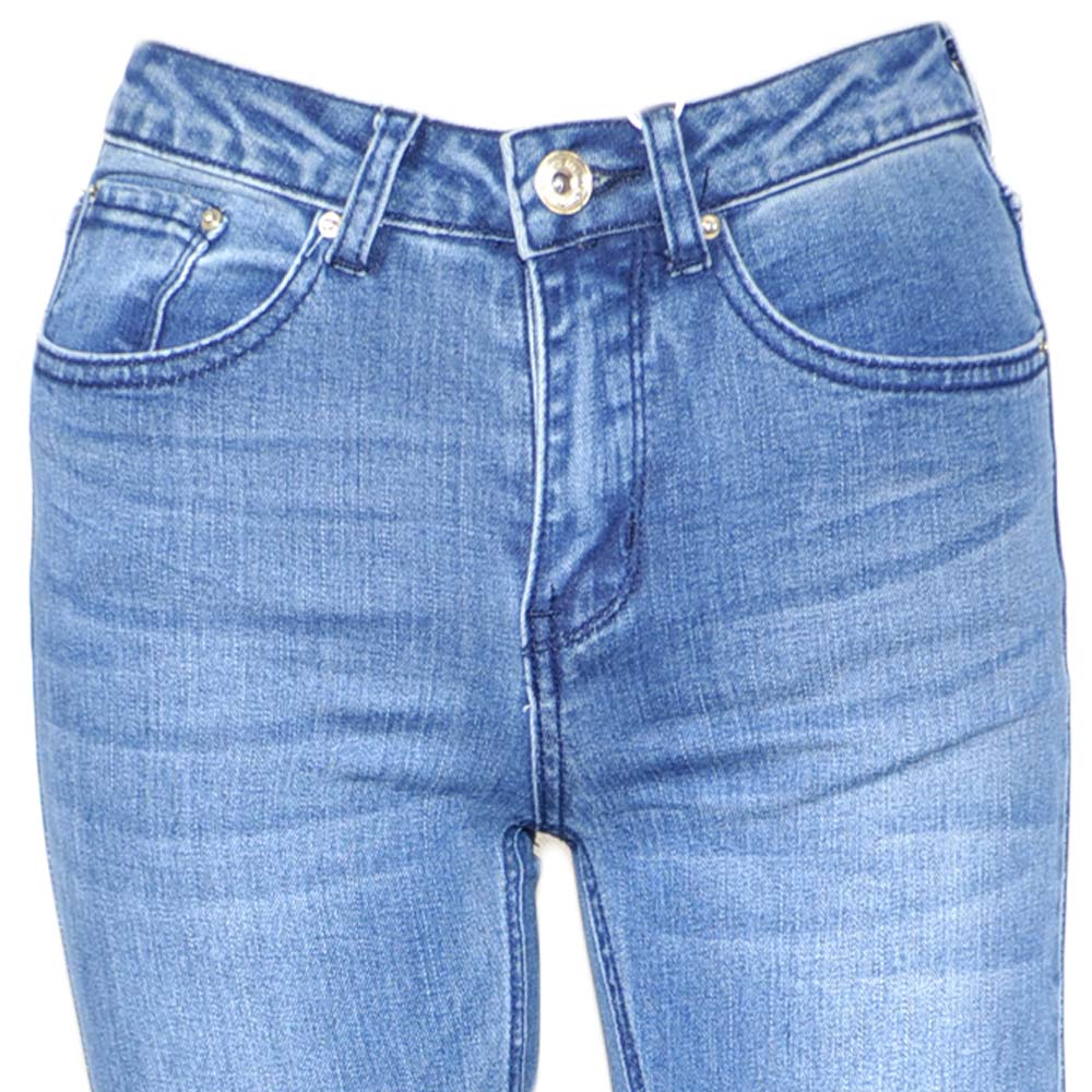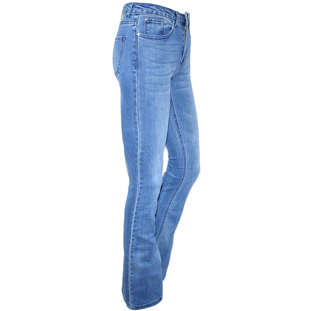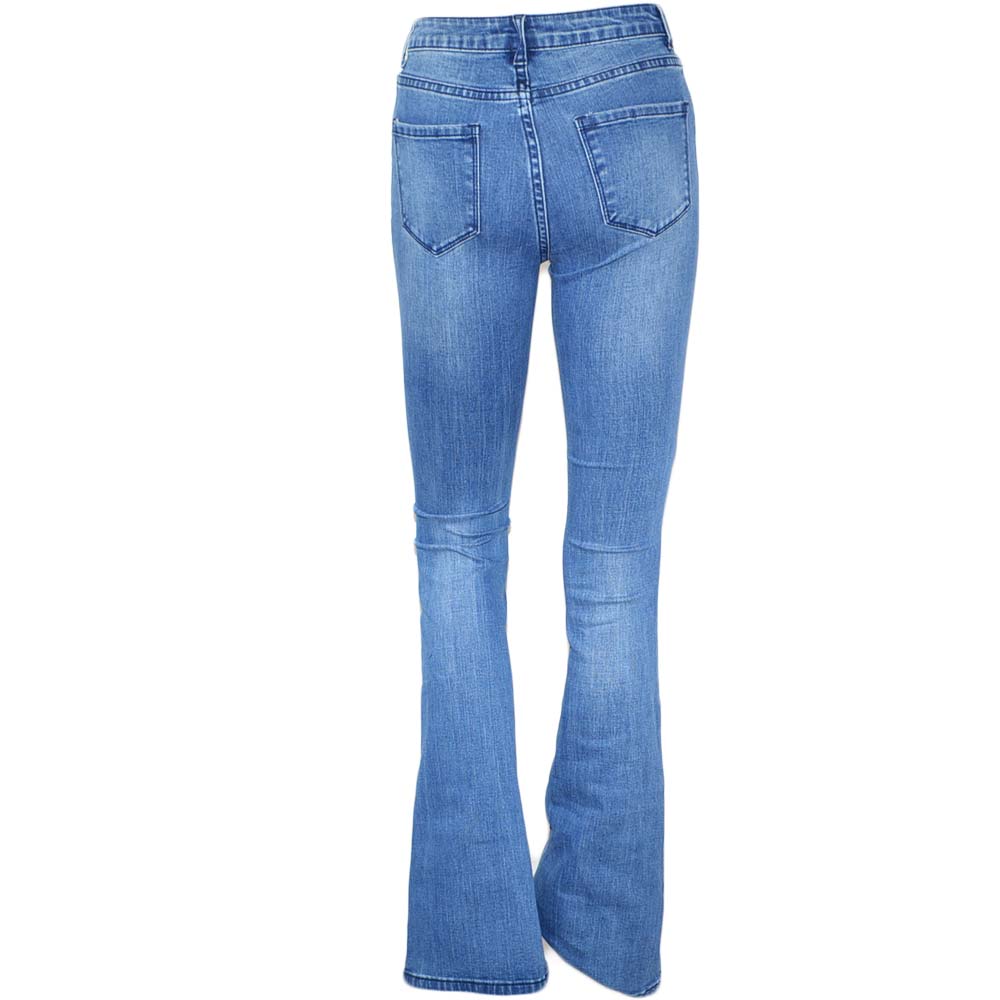 Jeans donna Flare a zampa di elefante high waist vita alta lavaggio chiaro blue denim elasticizzati slim fit
