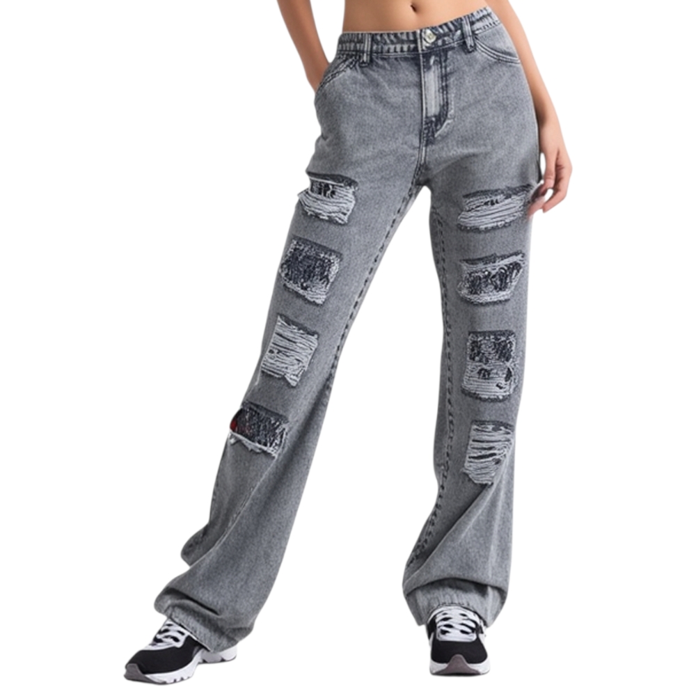 Jeans donna momfit a vita alta high waist lavaggio scuro misto black denim strappi rigido over fit