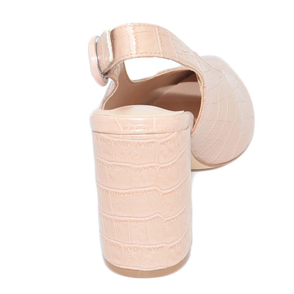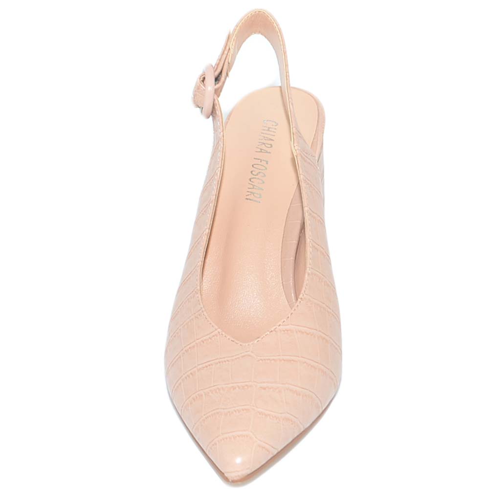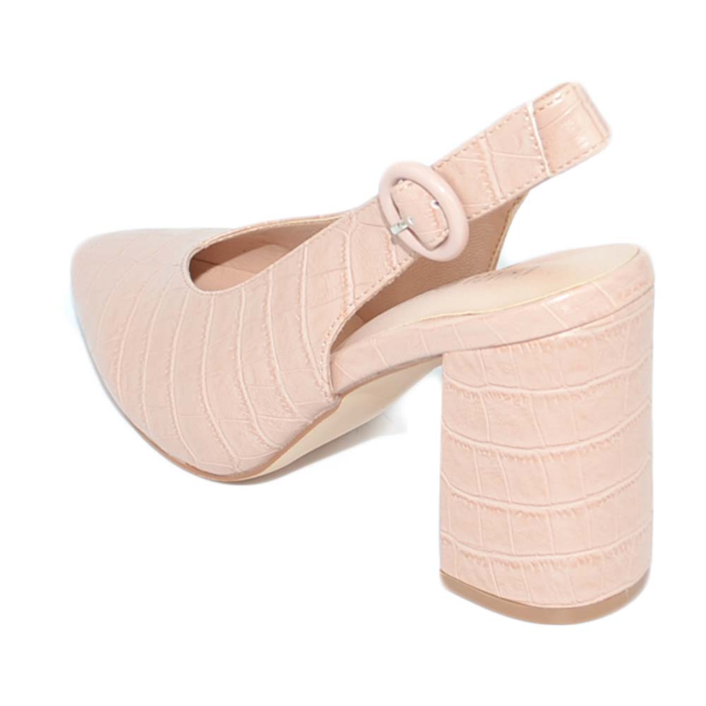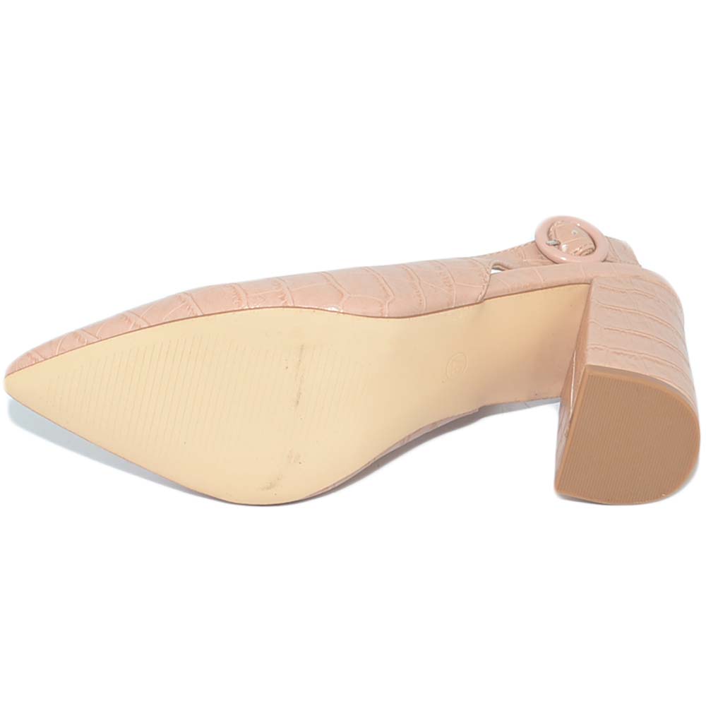 Decollete' donna pelle cipria nude con allacciatura retro anni 30 tacco basso comode punta cocco scollo tallone scoperto