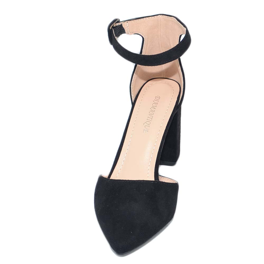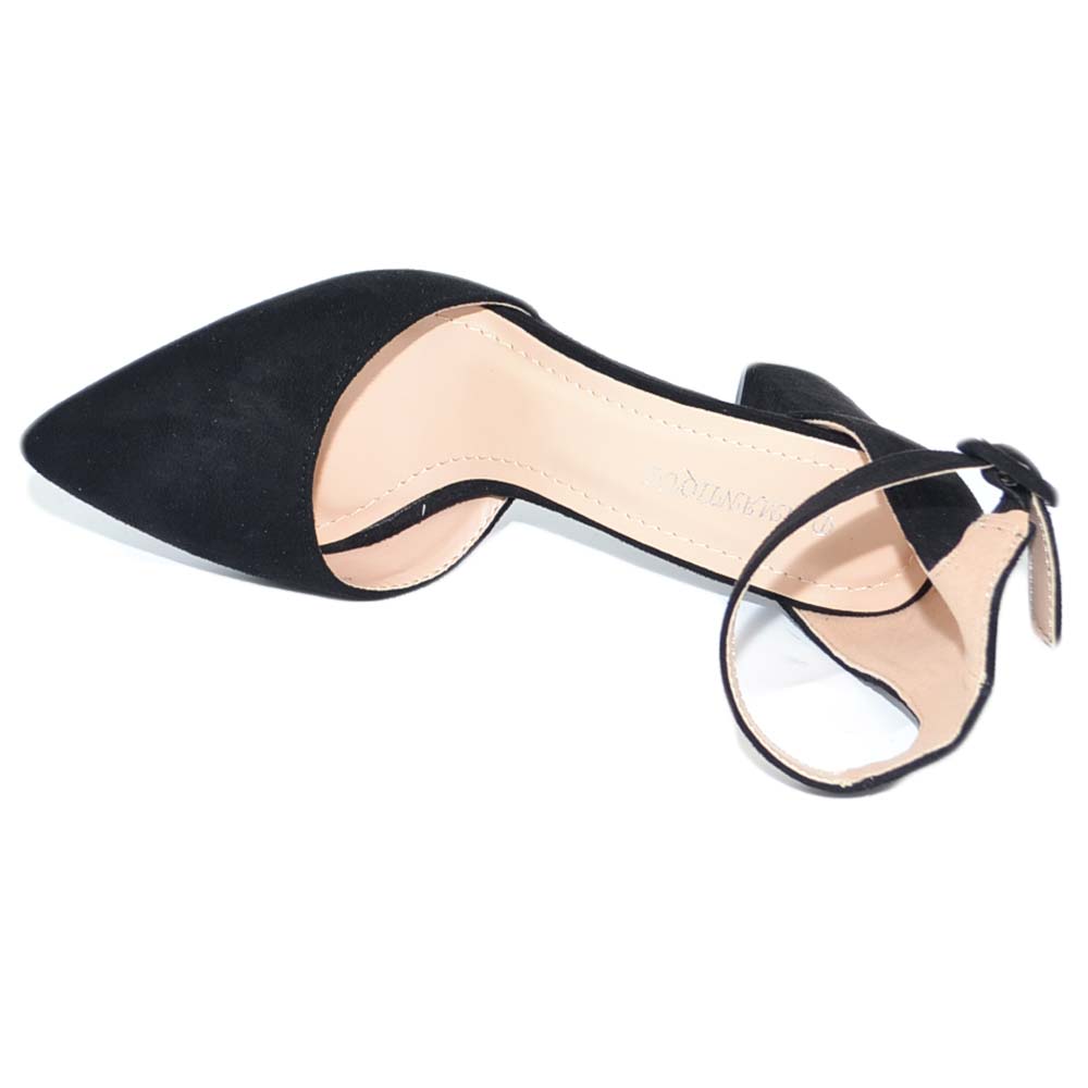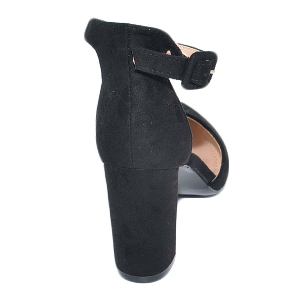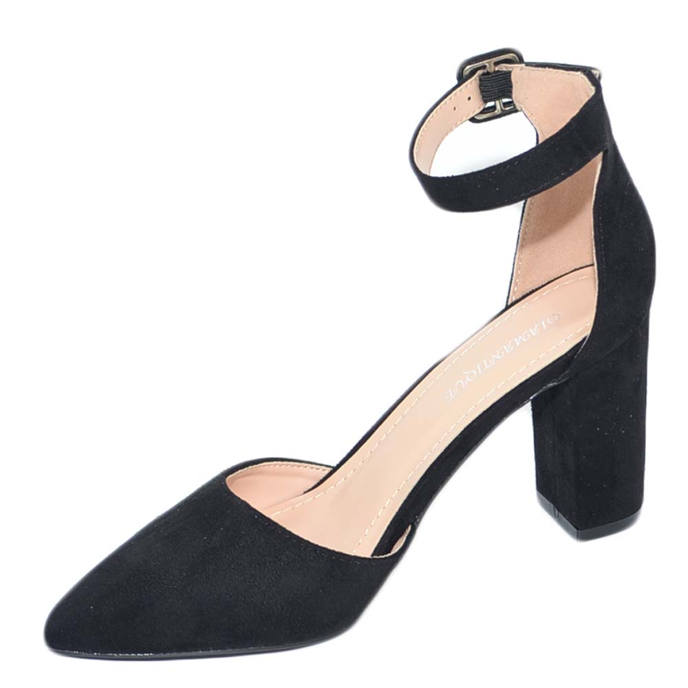 Decollete' donna scamosciato nero a punta tacco largo comodo 7 cm e cinturino alla caviglia linea basic glamour