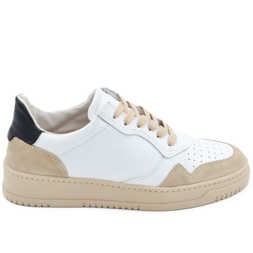 LUISANTIAGO FAMOUS 991 Sneakers dinamica in vera pelle nappa bianca fortino nero con gomma alta Eva light.