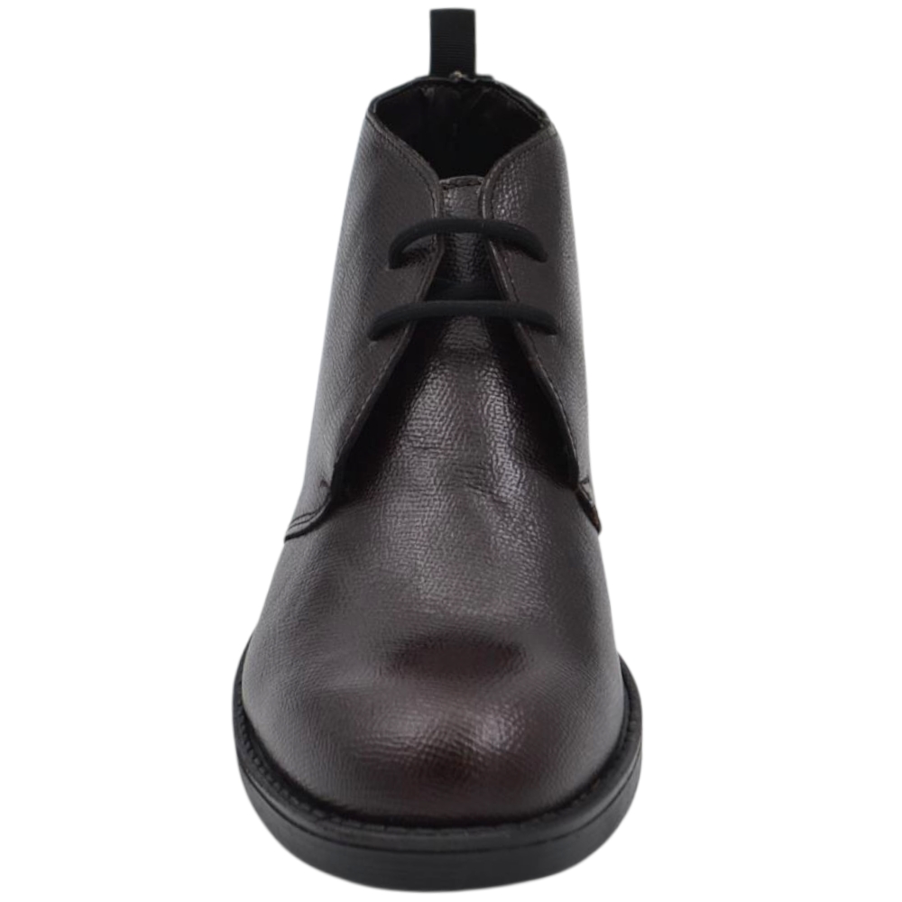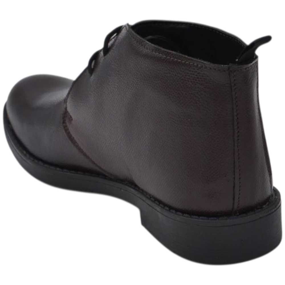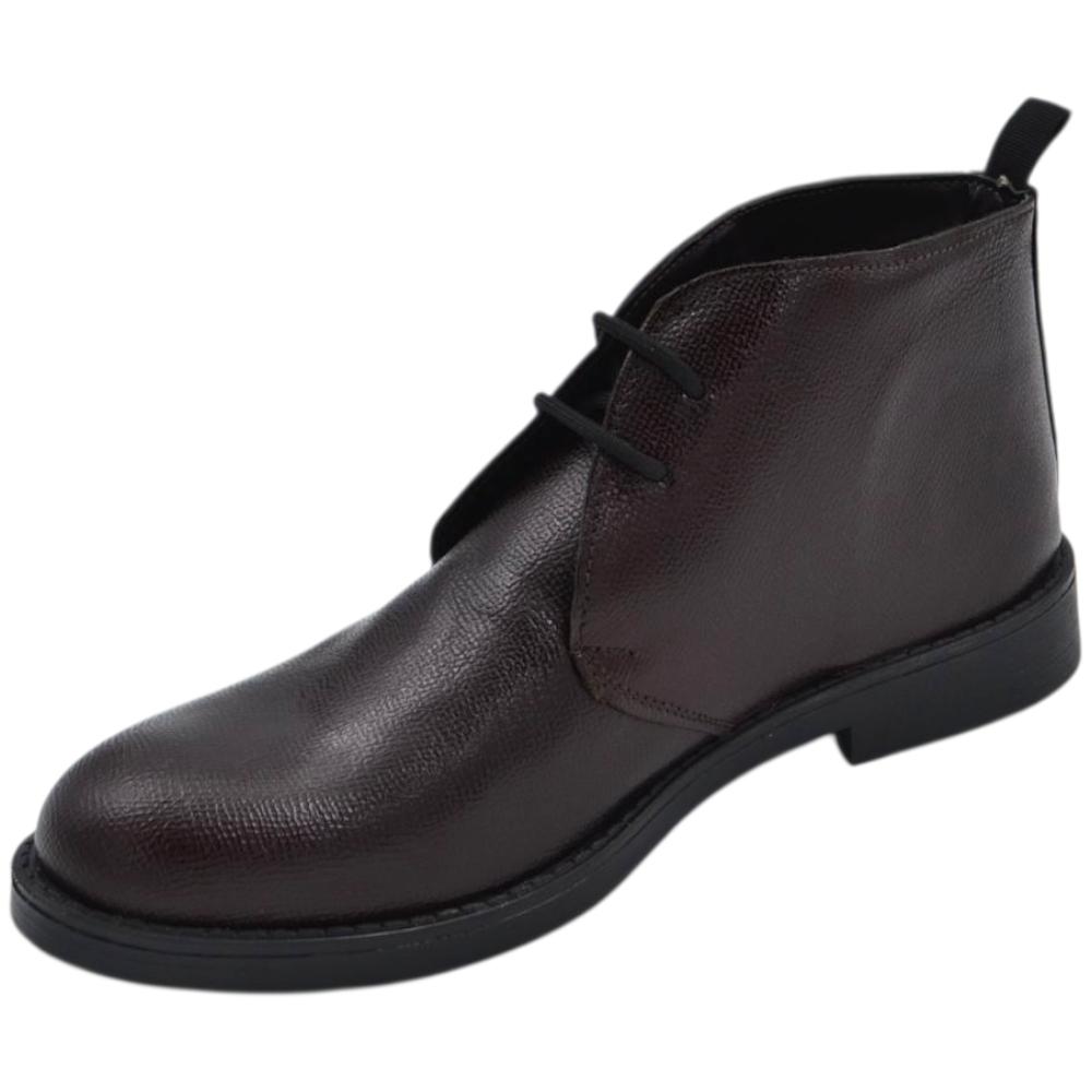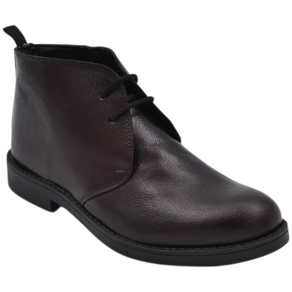 Scarpe uomo polacchini marrone spazzolato in vera pelle di nappa business fondo gomma roccia alto.
